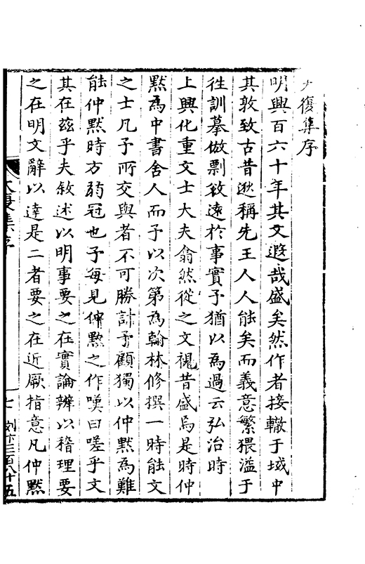 明興百六十年其文遐哉盛矣然作者接轍于域中其敦致古昔逖稱先王人人能矣而義意繁猥溢于徃訓摹倣剽敓逺扵事實予猶以為過云弘治時 上興化重文士大夫翕然從之文視昔盛焉是時仲黙為中書舍人而予以次第為翰林修撰一時能文之士凡予所交與者不可勝計予顧獨以仲黙爲難能仲黙時方弱冠也予每見仲黙之作嘆曰嗟乎文其在兹乎夫敘述以明事要之在實論辨以稽理要之在明文辭以達是二者要之在近厥指意凡仲黙