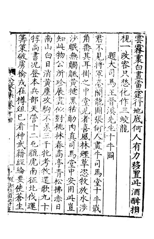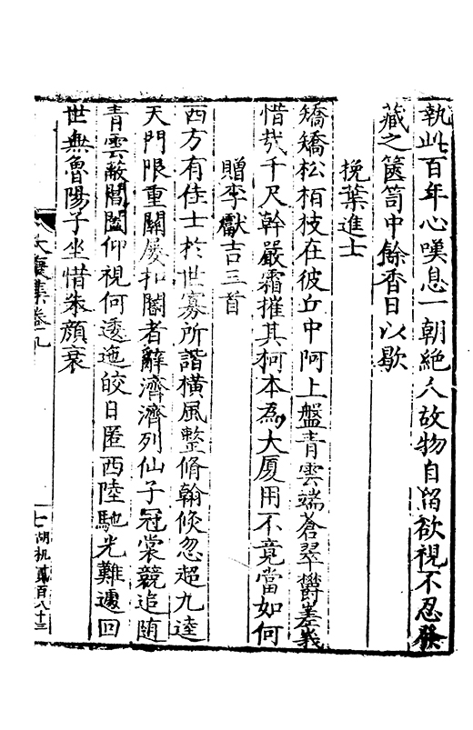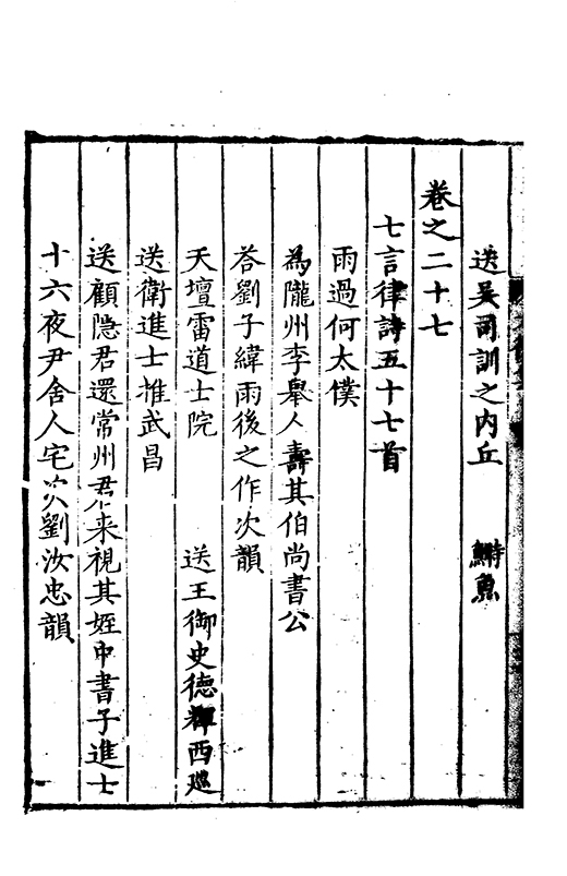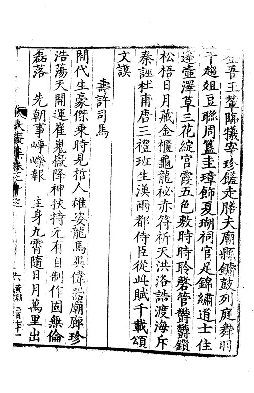 孝宗春之府也漢承挾書而得賈董明承十世之敝而得李何先生與賈為徒而中道並天其有不同者幾希顧漢沿周而去道近漢之後無文矣唐之中無詩矣兩家興廢繼絶其為力難即末流誰能不波疇敢登諸千載之上要其功則李何茂矣嘉靖以徃何論建元元封禘而祖之其為司馬者非兩也而中允起當戸其斯為奉冡祀者邪中允有當于不佞之言
