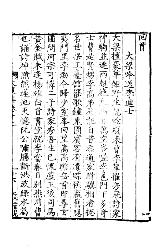 有國士之風焉夢陽又駿發與景明齊名海内操觚之士皆宗尚之稱李何云十八年五月景明奉 敬皇哀詔下雲南雲南君長及中貴人咸請題咏比還饋遺犀象珎貝悉謝不受是時逆瑾用事景明移書許進言宜自振立以抑瑾權瑾聞而銜之景明乃謝病歸後竟坐免官正徳四年瑾誅李東陽薦復授中書舍人直内閣制勑房 經筵官夢陽遭江西之訟衆多媒蘖其短勢洶洶欲擠陷重辟景明又移書楊一清争之始得白五年東陽引疾乞休會有兵事景明又援古大臣義為書讓之三書義咸高語多不