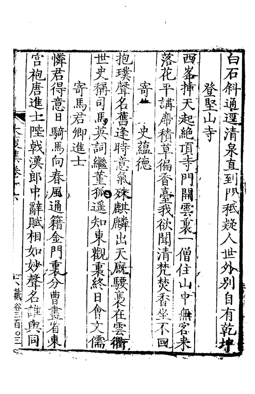 敬皇帝朝化休而融昌異時諸先生業文章顯甚重矣學士大夫固欣然稱說耳相慕也而獨北地李子以非心所好謝去之亡何而又有信陽何子者何子雖稍晩出其材質敏秀瑰麗各以長相當然而李子得何子為益雄也鄙人之言何知仁義嚮利則德是二君子抉草莽倡微言非有父兄師友之素而奪天下已嚮之利而自為德扵乎難哉去其始可一甲子詩而亡舉大曆下者文亡舉東京下者即誰力也然二君子之徒不能長縁其師所繇得毛舉論難之語