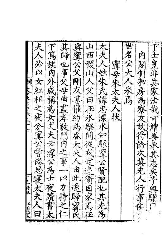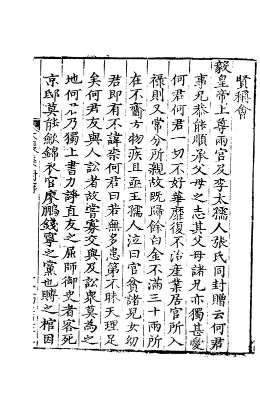 毅皇帝上尊兩宫及李太孺人張氏同封贈云何君事兄恭能順承父母之志其父母諸兄亦獨甚愛何君何君一切不好華靡復不治産業居官所入祿則又常分所親故既歸餘白金不滿三十兩所在不齎方物疾且亟王孺人泣曰官貧諸兒女幼君即有不諱柰何君曰若無多患第不昧天理足矣何君友與人訟者故嘗寡交與及訟衆莫為之地何君乃獨上書力諍直友之屈師御史者客死京邸莫能歛錦衣官廖鵬錢寜之黨也賻之棺因