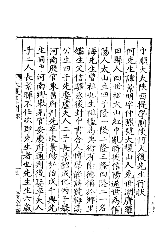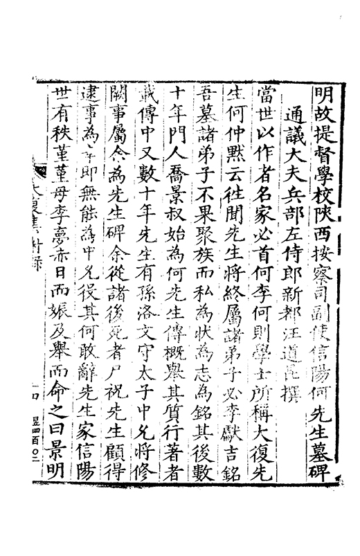 明故提督學校陜西按察司副使信陽何先生墓碑