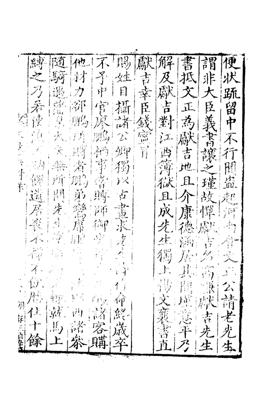 便状疏留中不行聞盗起河南會文正公請老先生謂非大臣義書讓之瑾故憚獻吉名高□獻吉先生書抵文正為獻吉地且介康徳涵居其間瑾意平乃解及獻吉對江西簿獄且成先生獨上楊文襄書直獻吉幸臣錢寍冐