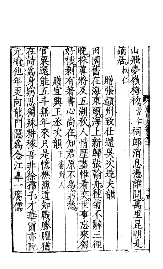 不治經然不輟文墨其間時則作爲草書遂窮極竒變闔闢閃縮上逼懷素詩歌有唐人風骨是時翁伯兄既以文雄於當世而季弟竹窓翁善畫尤以草蟲名一時言文章字畫歸唐氏云伯兄爲給事中值敬皇帝在位言官甚見親幸有權給事公素小心慎事屢爲書與翁大要教之謙下母輙入州縣門即入必傴僂不得騎閭巷徃來戢族屬僮奴不得閙街市中翁遵其說而行之是以唐氏雖世宦然未嘗有子弟爲鄉里所苦者後三十餘年嘉靖某甲子翁年七十餘郡太守請與蜡賔後若干年 詔賜天下老人