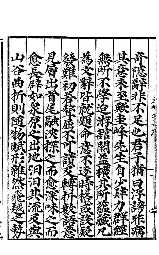 奇隱辭非不足也君子猶曰浮誇非病其意未至歟圭峰先生自少肆力群經無所不學迨游舘閣益擴其所蘊藏凡為文辭皆就題命意不遂時格或設疑發難初若聲屈不可讀及轉折數語意見層出首尾融浹探之而愈深味之而愈長辟如泉原之出地汩汩其流及與山谷曲折則随物賦形雜然飛越之勢