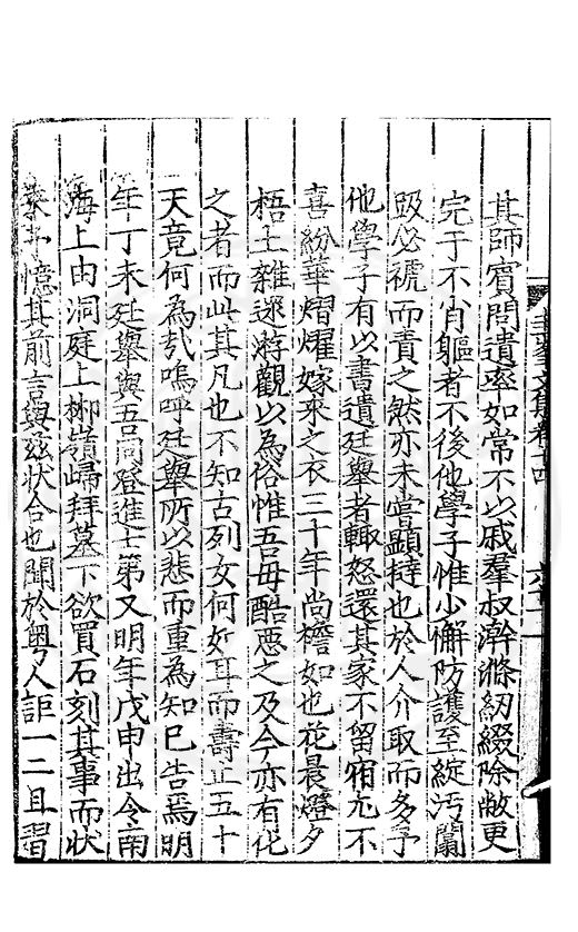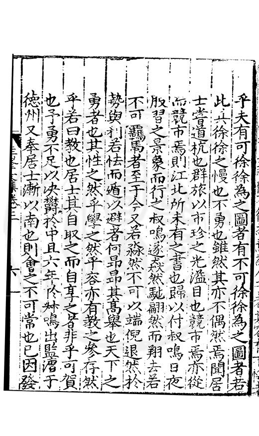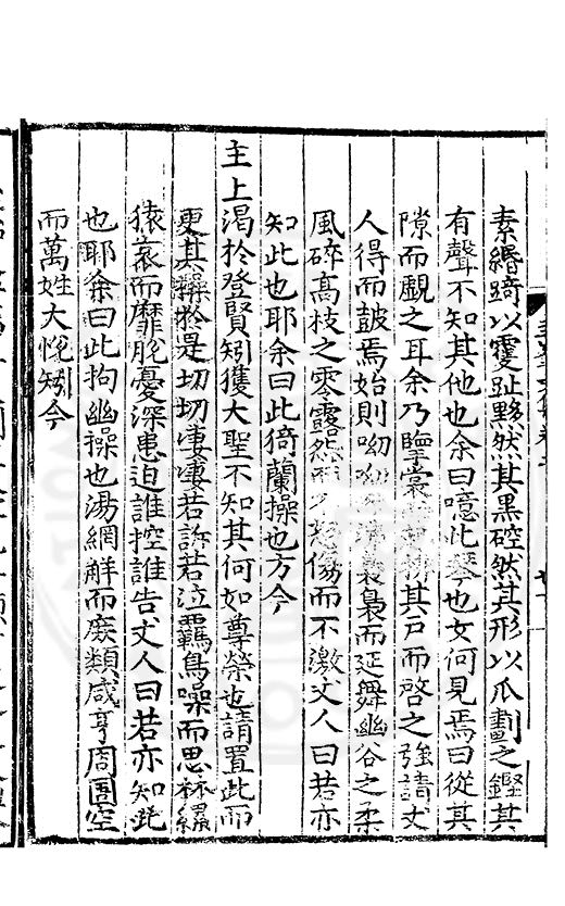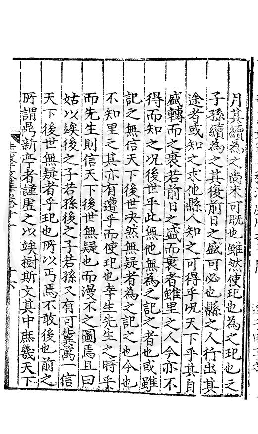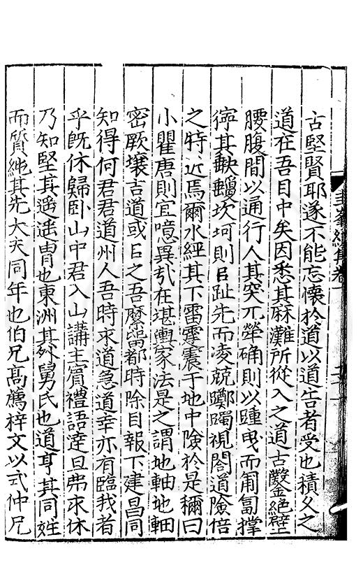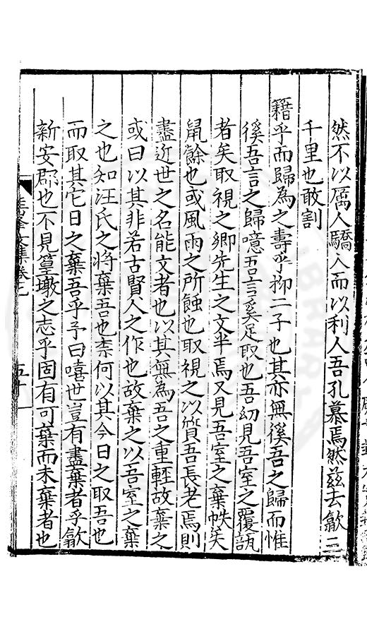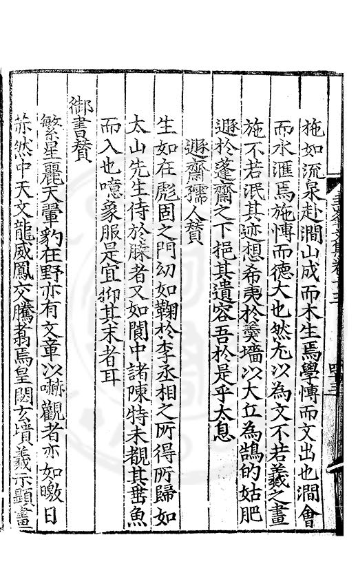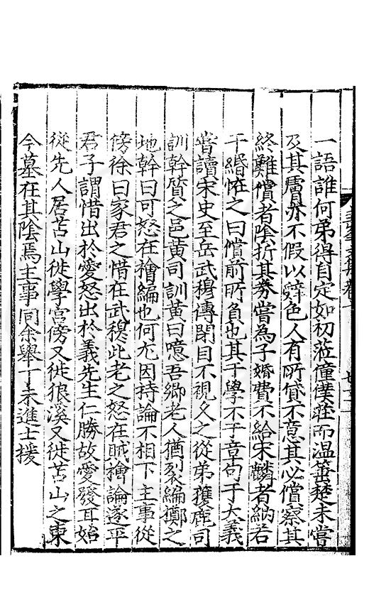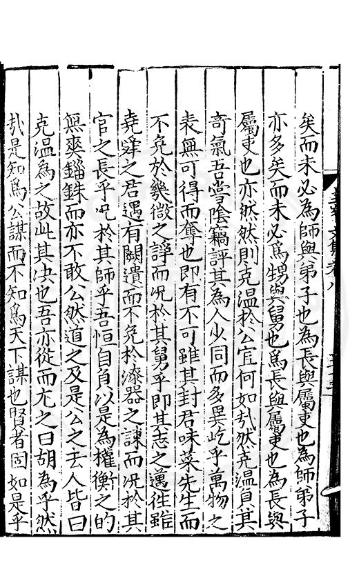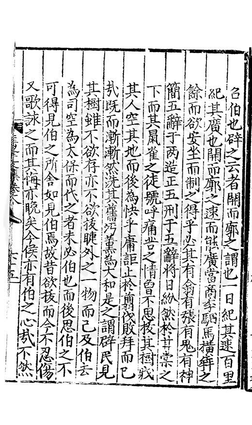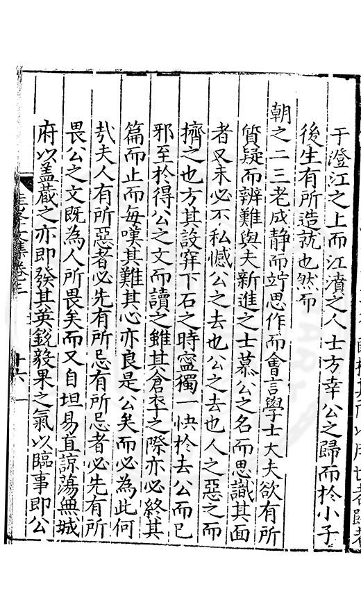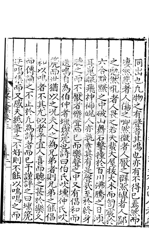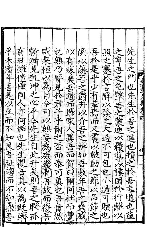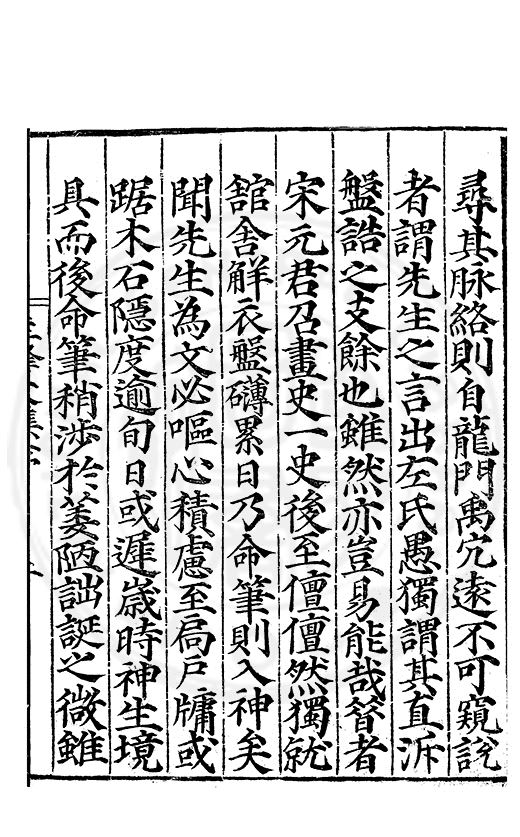 尋其脉絡則自龍門禹宂逺不可窺說者謂先生之言出左氏愚獨謂其直泝盤誥之支餘也雖然亦豈易能哉□者宋元君召畫史一史後至儃儃然獨就舘舎觧衣盤礴累日乃命筆則入神矣聞先生為文必嘔心積慮至扃戸牗或距木石隱度逾旬日或遲嵗時神生境具而後命筆稍渉扵萎陋詘誕之微雖