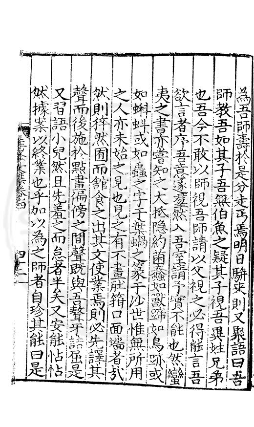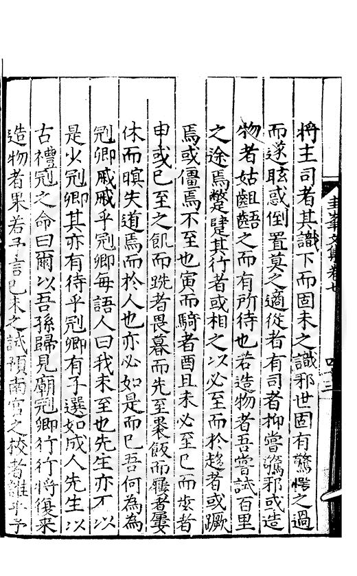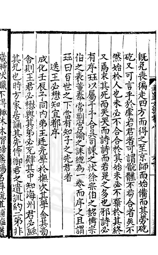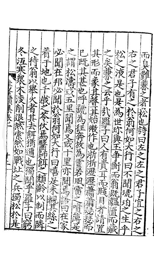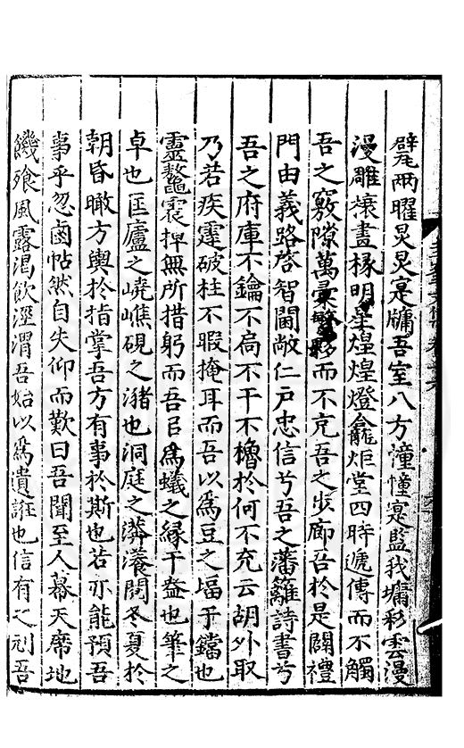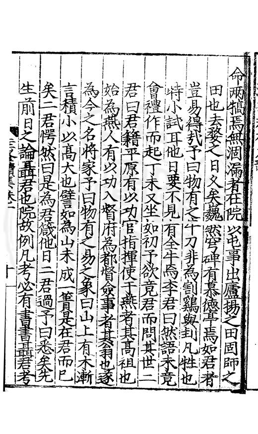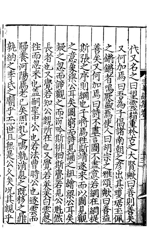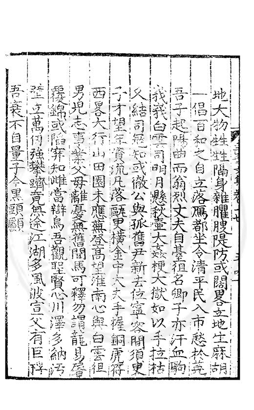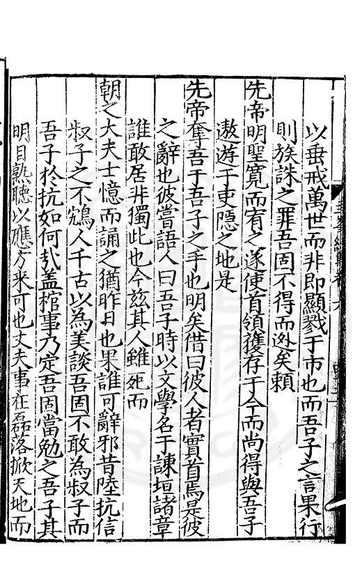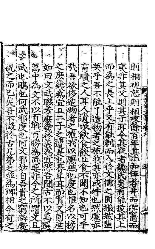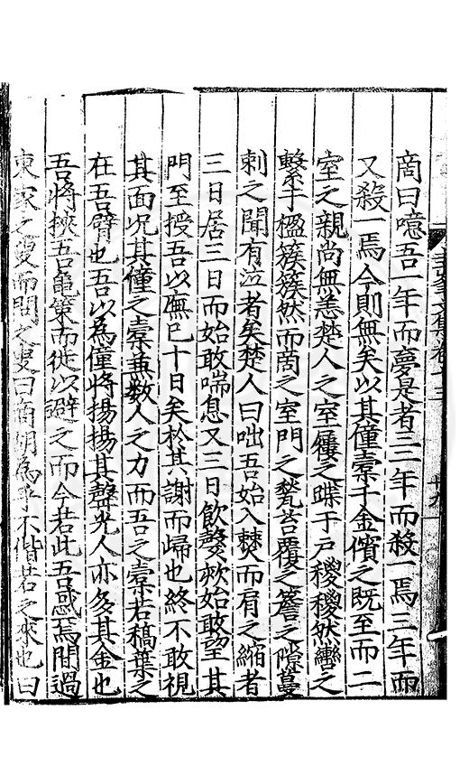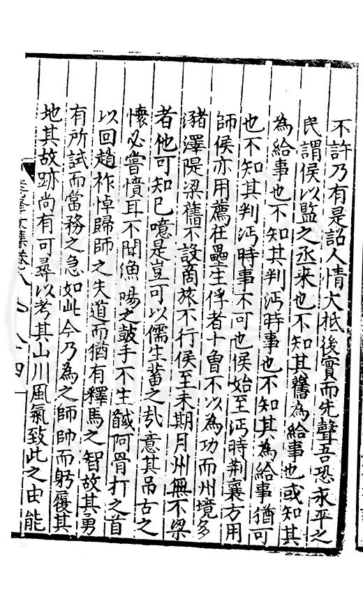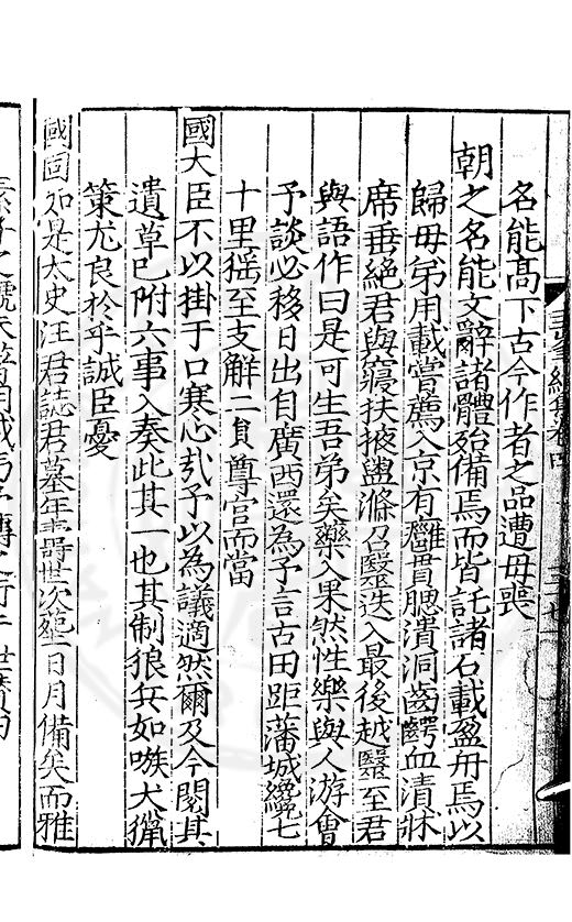 尋其脉絡則自龍門禹宂逺不可窺說者謂先生之言出左氏愚獨謂其直泝盤誥之支餘也雖然亦豈易能哉□者宋元君召畫史一史後至儃儃然獨就舘舎觧衣盤礴累日乃命筆則入神矣聞先生為文必嘔心積慮至扃戸牗或距木石隱度逾旬日或遲嵗時神生境具而後命筆稍渉扵萎陋詘誕之微雖