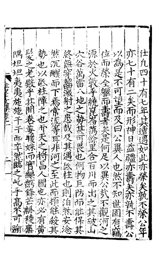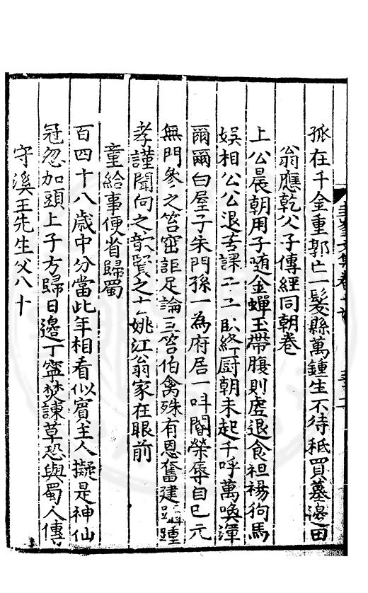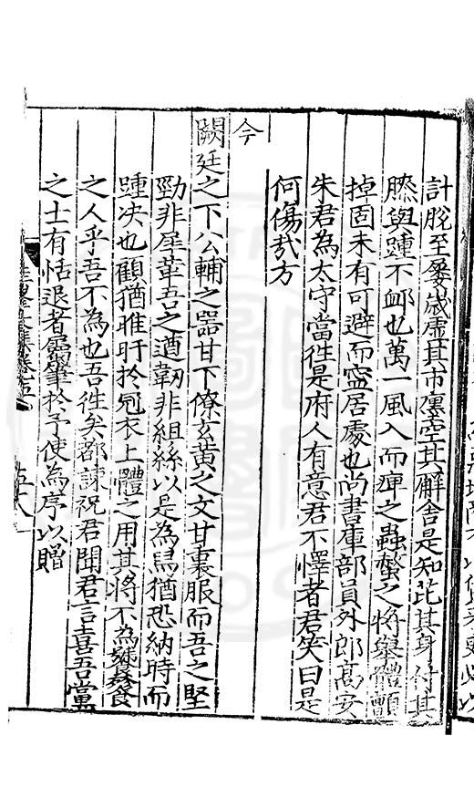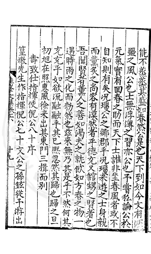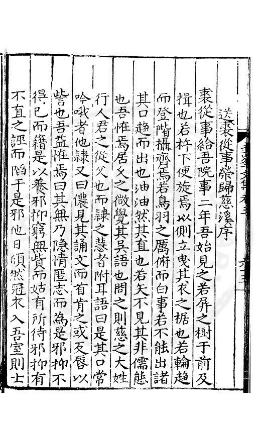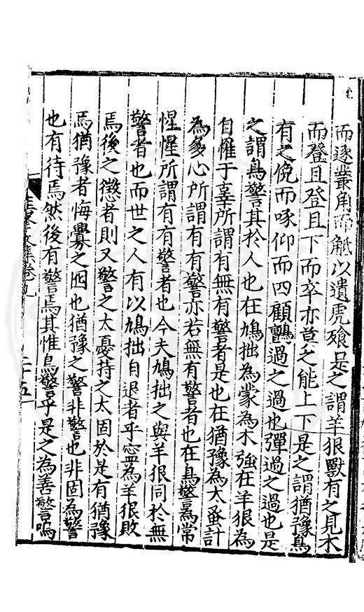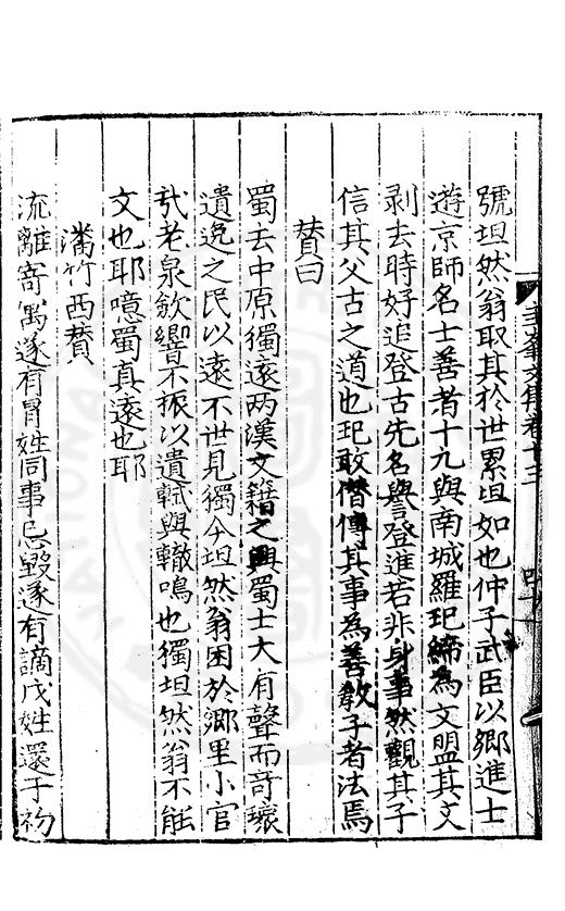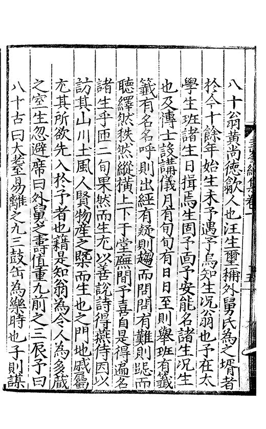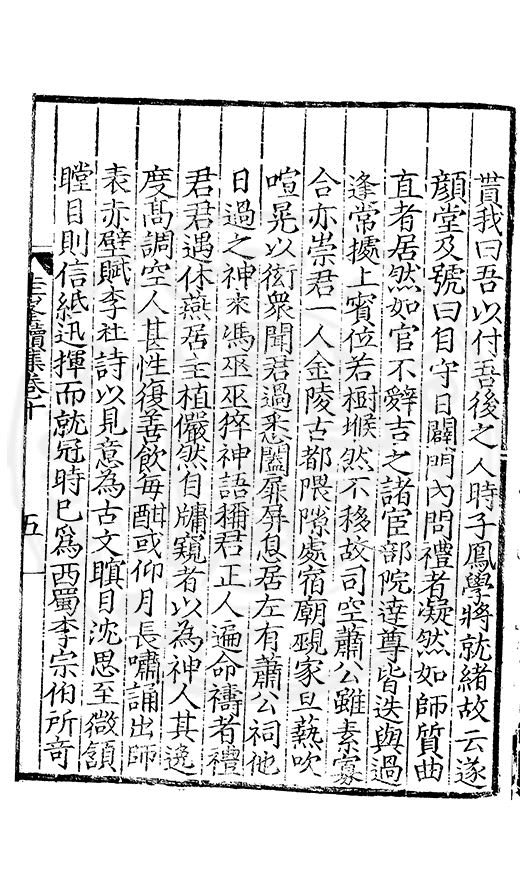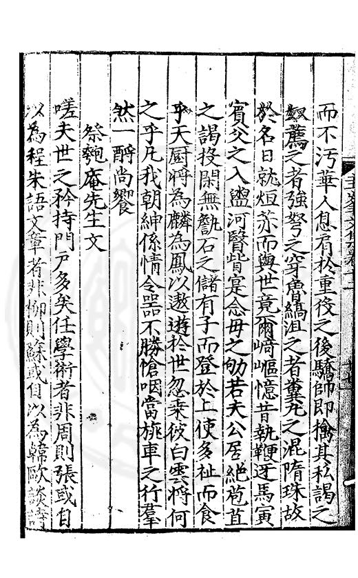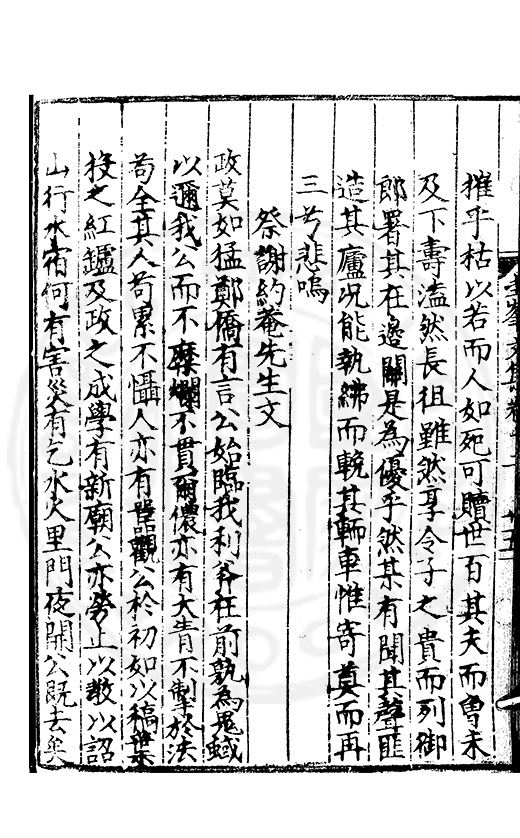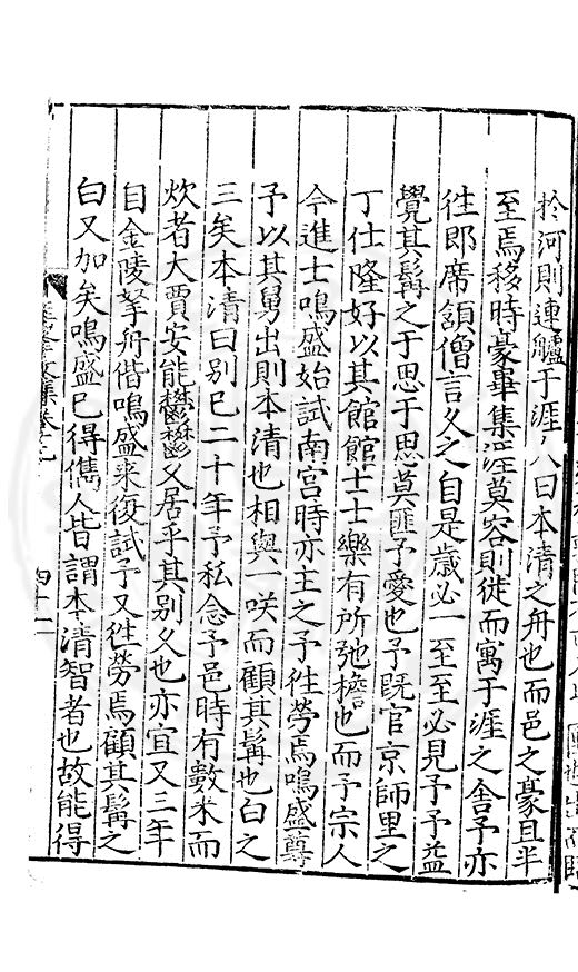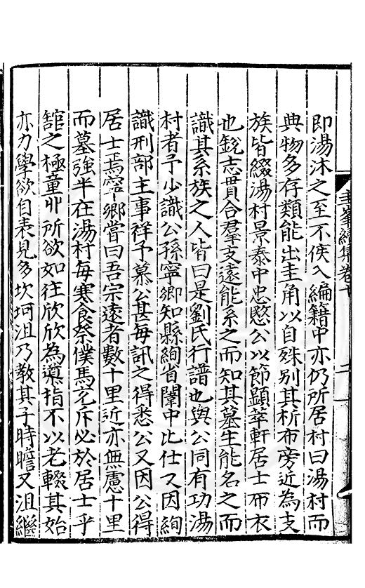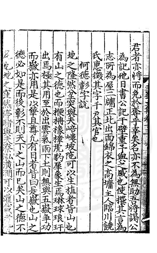 尋其脉絡則自龍門禹宂逺不可窺說者謂先生之言出左氏愚獨謂其直泝盤誥之支餘也雖然亦豈易能哉□者宋元君召畫史一史後至儃儃然獨就舘舎觧衣盤礴累日乃命筆則入神矣聞先生為文必嘔心積慮至扃戸牗或距木石隱度逾旬日或遲嵗時神生境具而後命筆稍渉扵萎陋詘誕之微雖