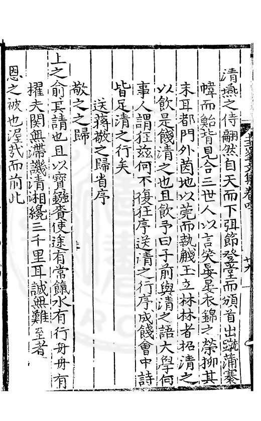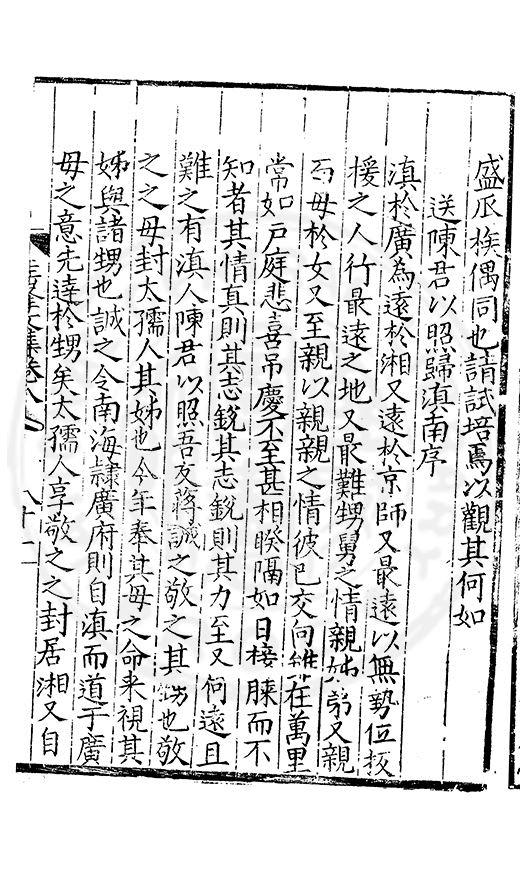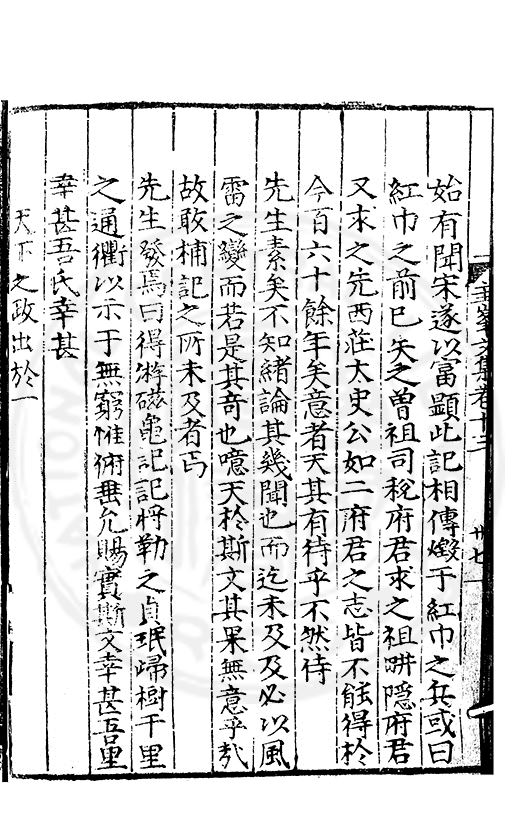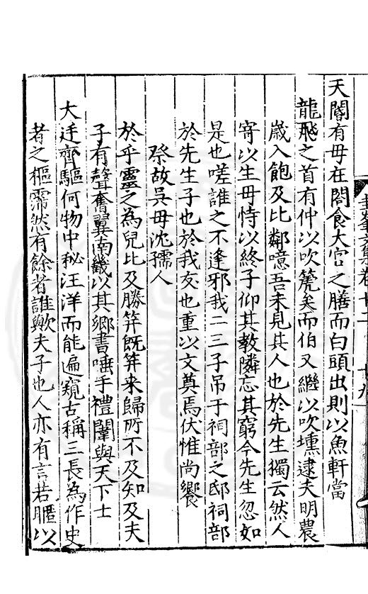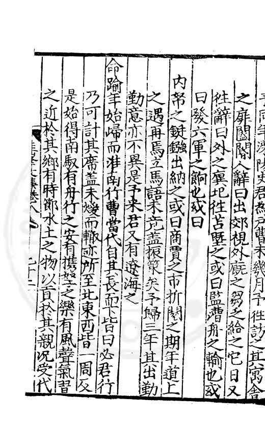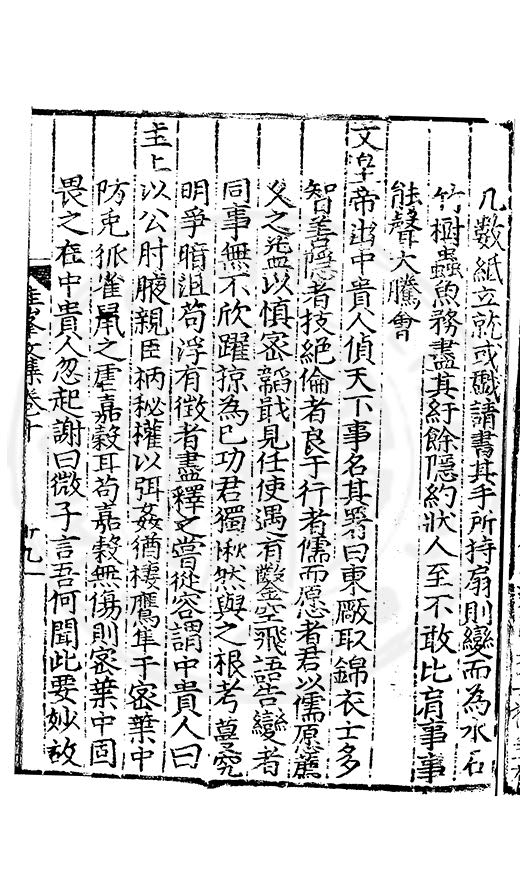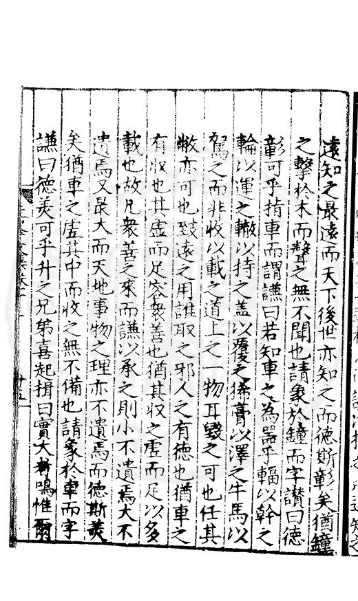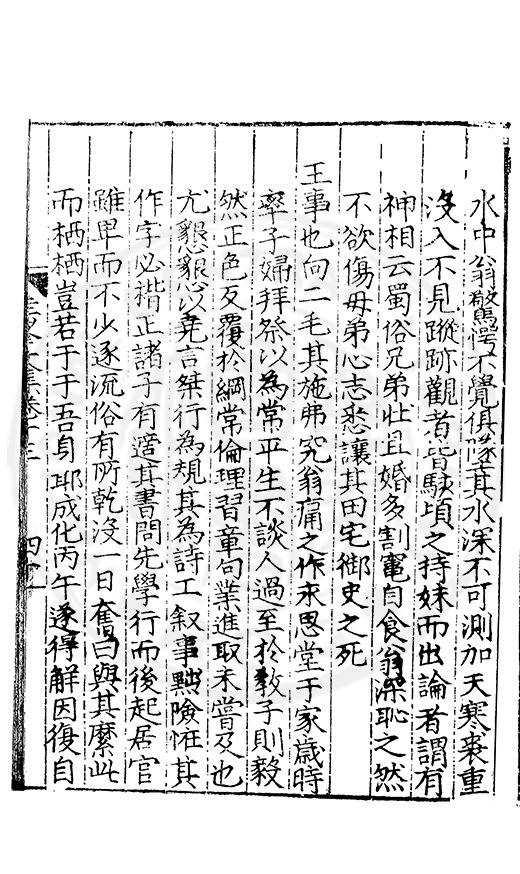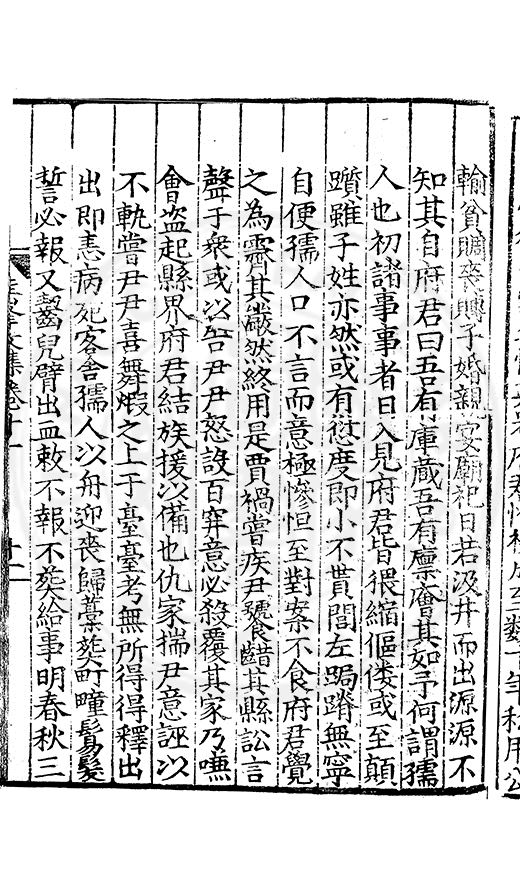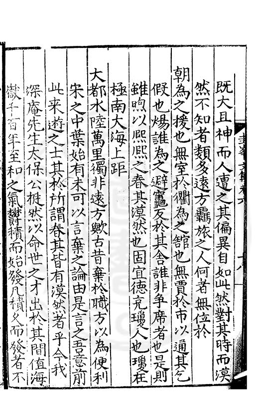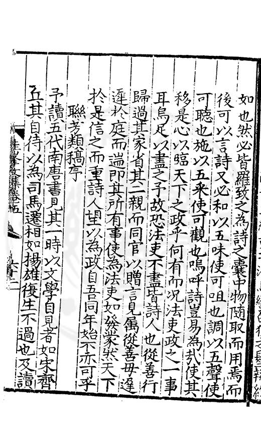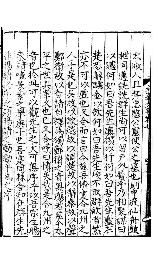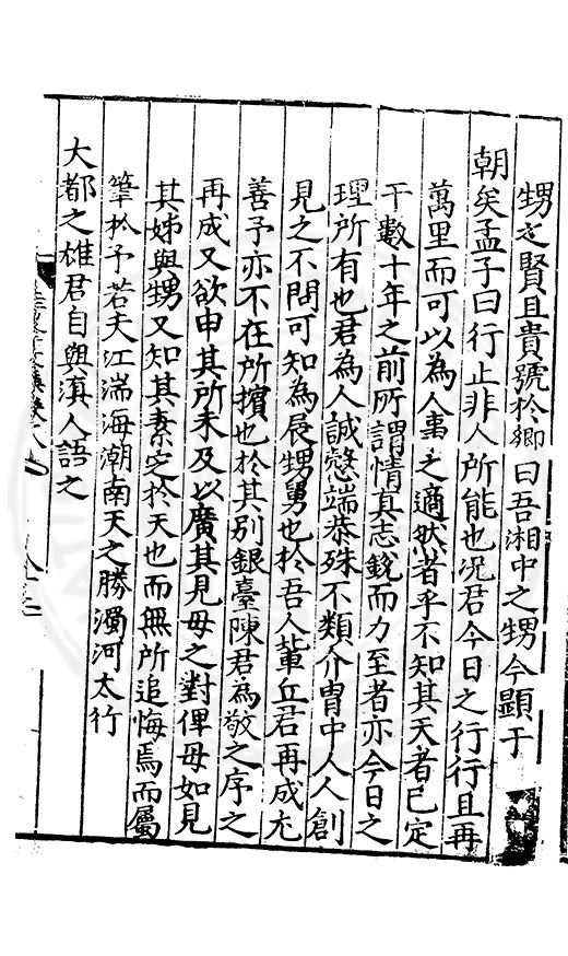 尋其脉絡則自龍門禹宂逺不可窺說者謂先生之言出左氏愚獨謂其直泝盤誥之支餘也雖然亦豈易能哉□者宋元君召畫史一史後至儃儃然獨就舘舎觧衣盤礴累日乃命筆則入神矣聞先生為文必嘔心積慮至扃戸牗或距木石隱度逾旬日或遲嵗時神生境具而後命筆稍渉扵萎陋詘誕之微雖
