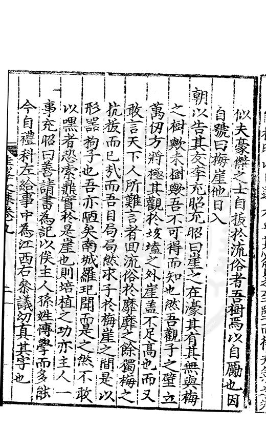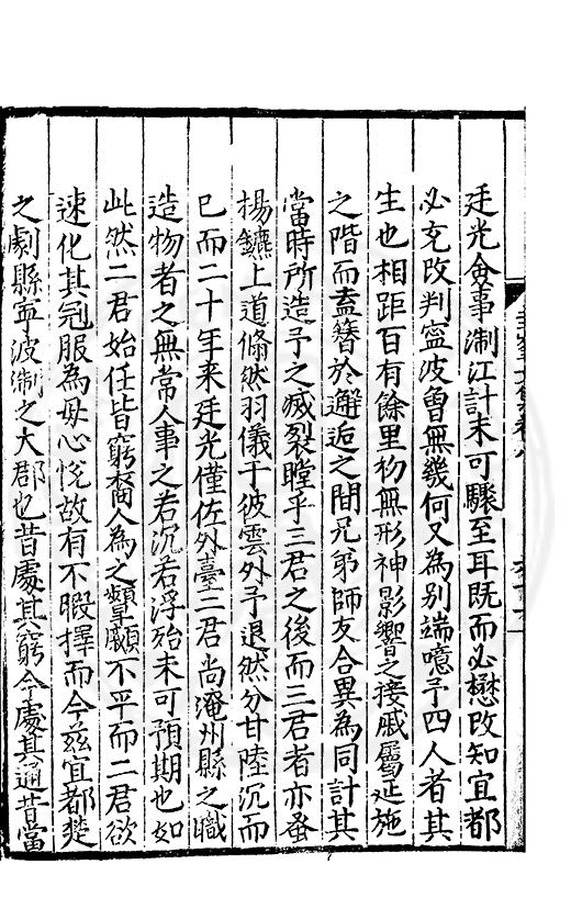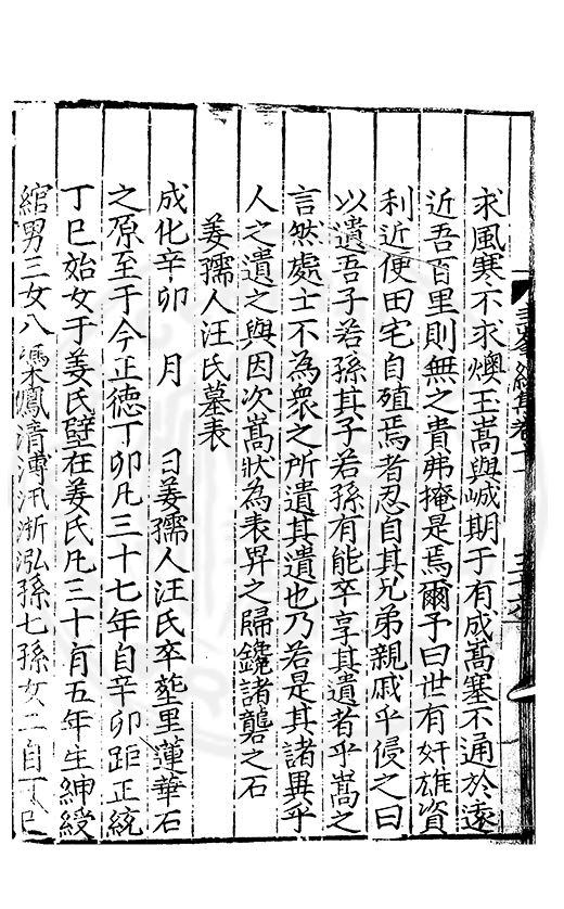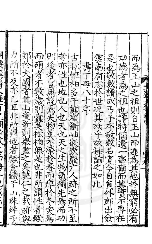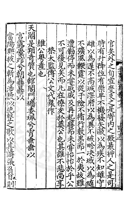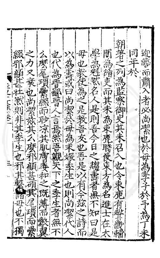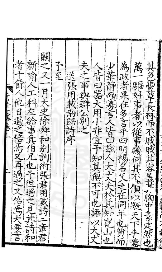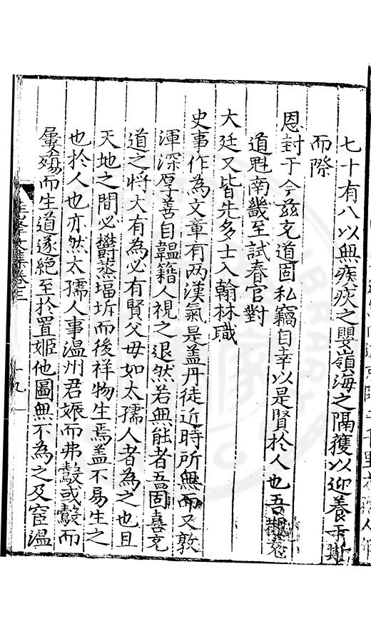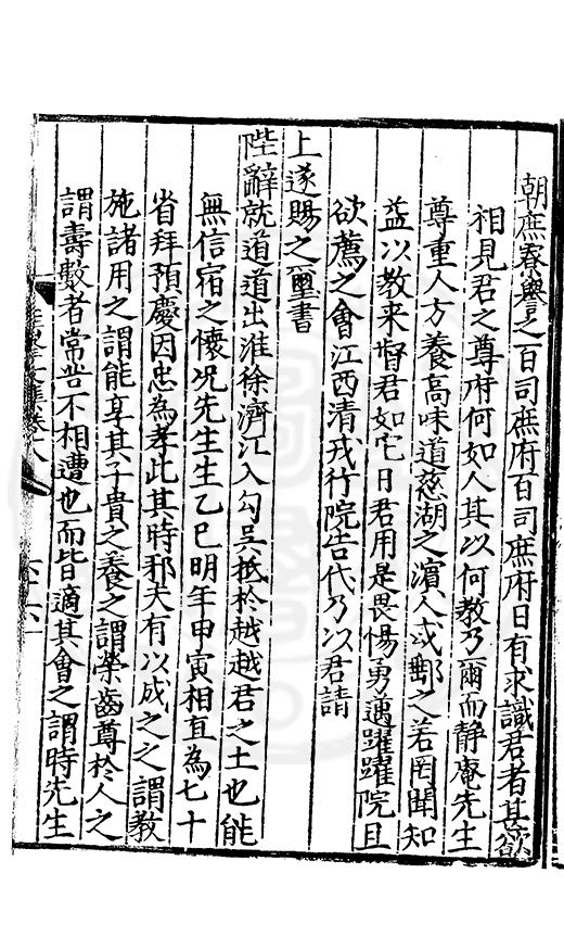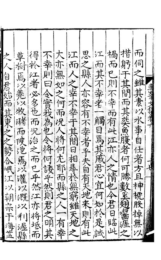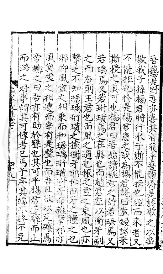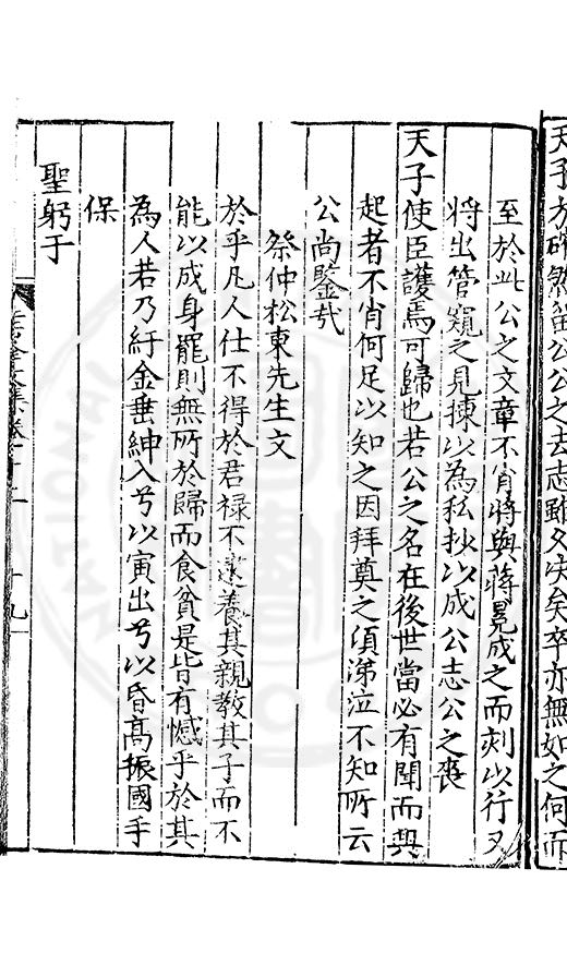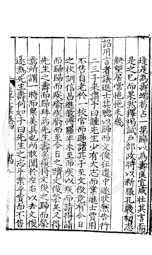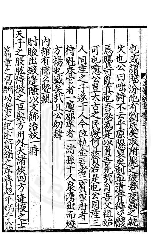 尋其脉絡則自龍門禹宂逺不可窺說者謂先生之言出左氏愚獨謂其直泝盤誥之支餘也雖然亦豈易能哉□者宋元君召畫史一史後至儃儃然獨就舘舎觧衣盤礴累日乃命筆則入神矣聞先生為文必嘔心積慮至扃戸牗或距木石隱度逾旬日或遲嵗時神生境具而後命筆稍渉扵萎陋詘誕之微雖