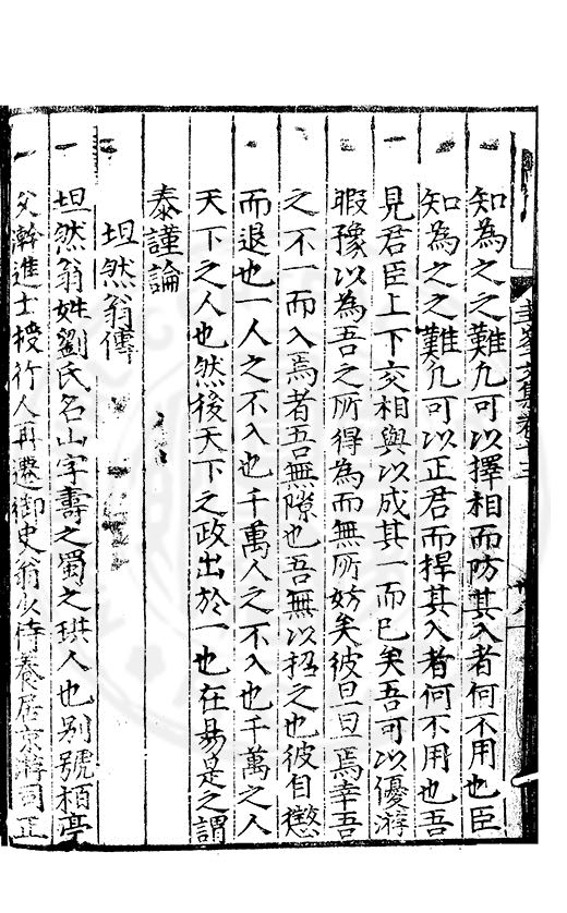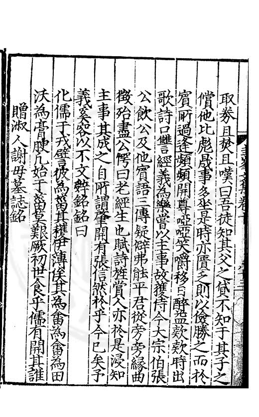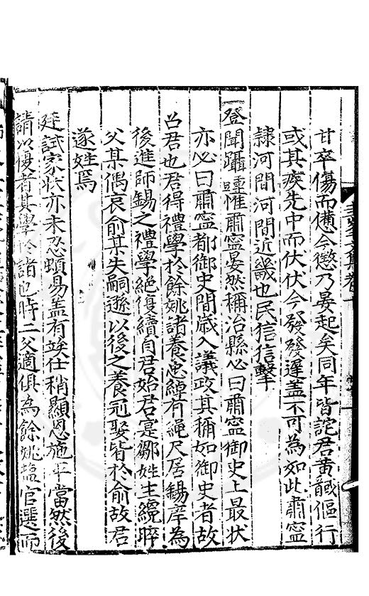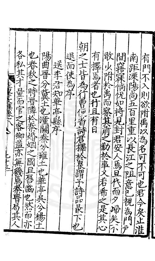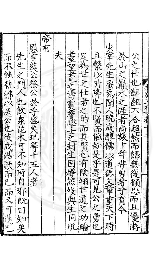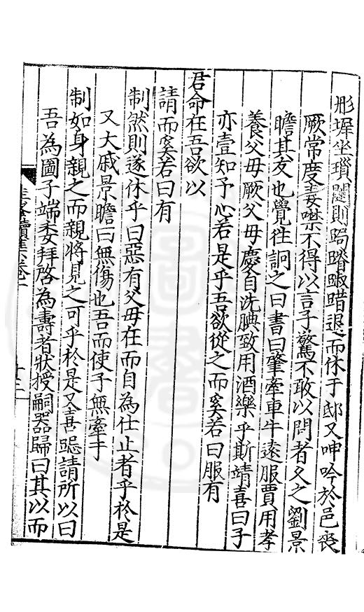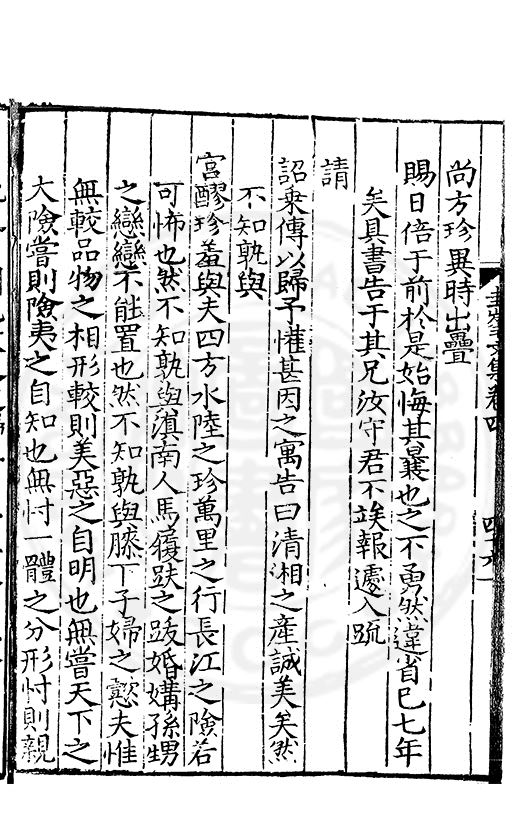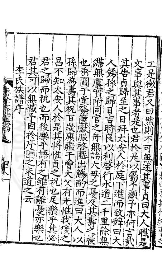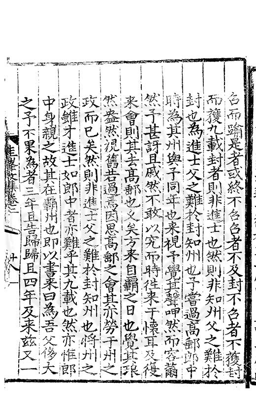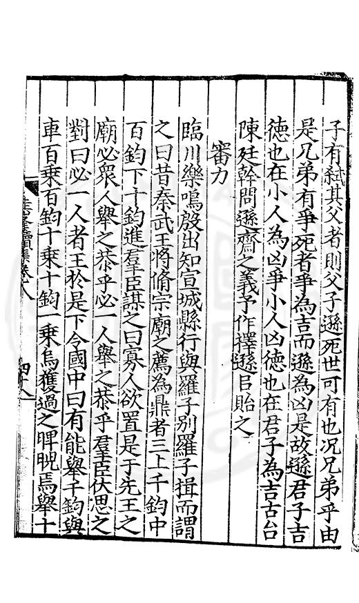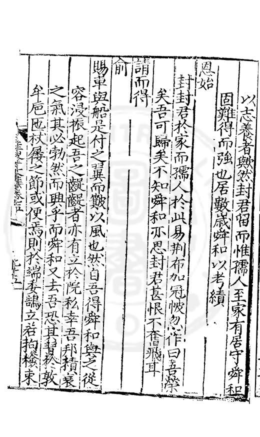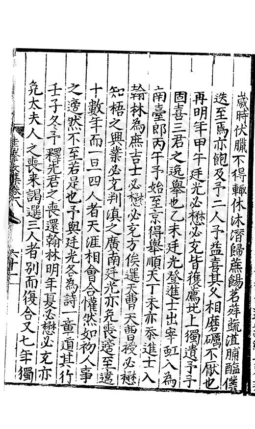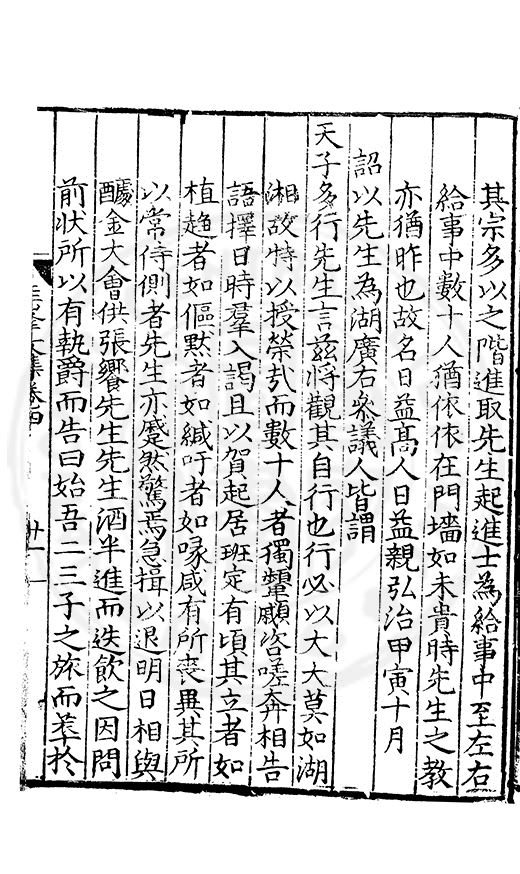 尋其脉絡則自龍門禹宂逺不可窺說者謂先生之言出左氏愚獨謂其直泝盤誥之支餘也雖然亦豈易能哉□者宋元君召畫史一史後至儃儃然獨就舘舎觧衣盤礴累日乃命筆則入神矣聞先生為文必嘔心積慮至扃戸牗或距木石隱度逾旬日或遲嵗時神生境具而後命筆稍渉扵萎陋詘誕之微雖