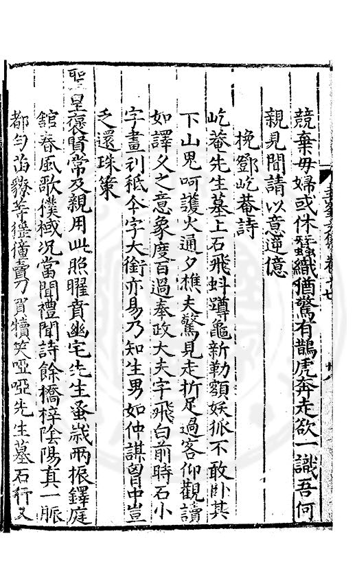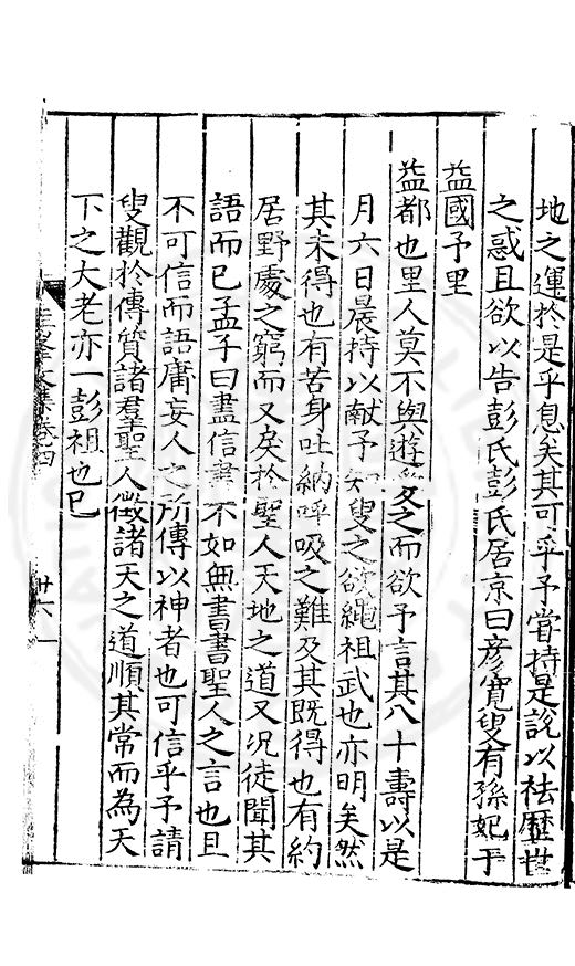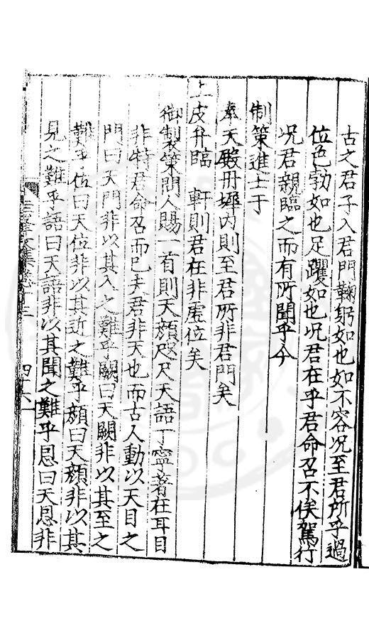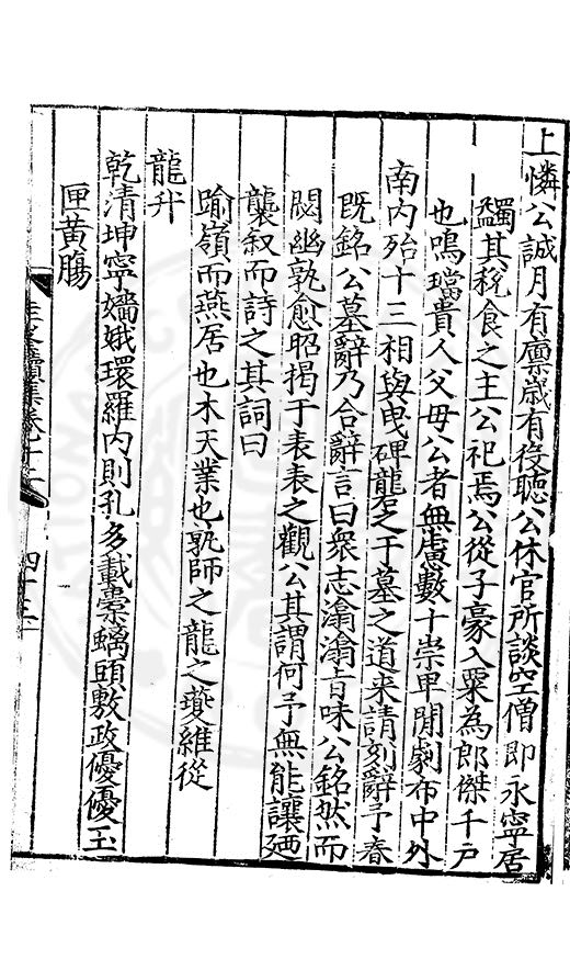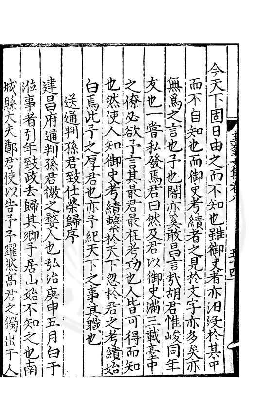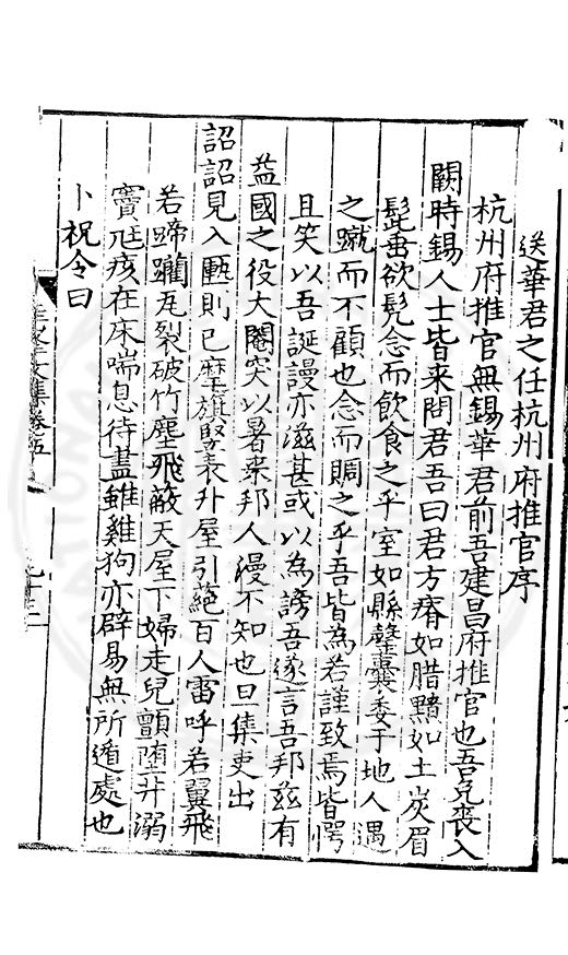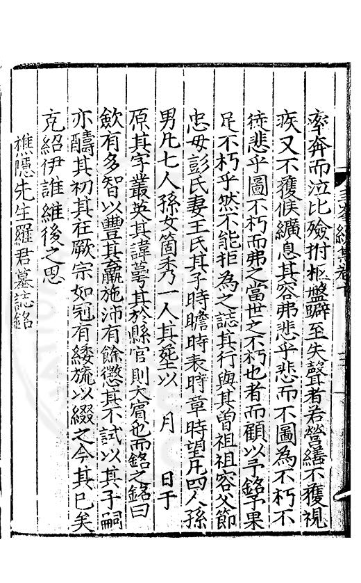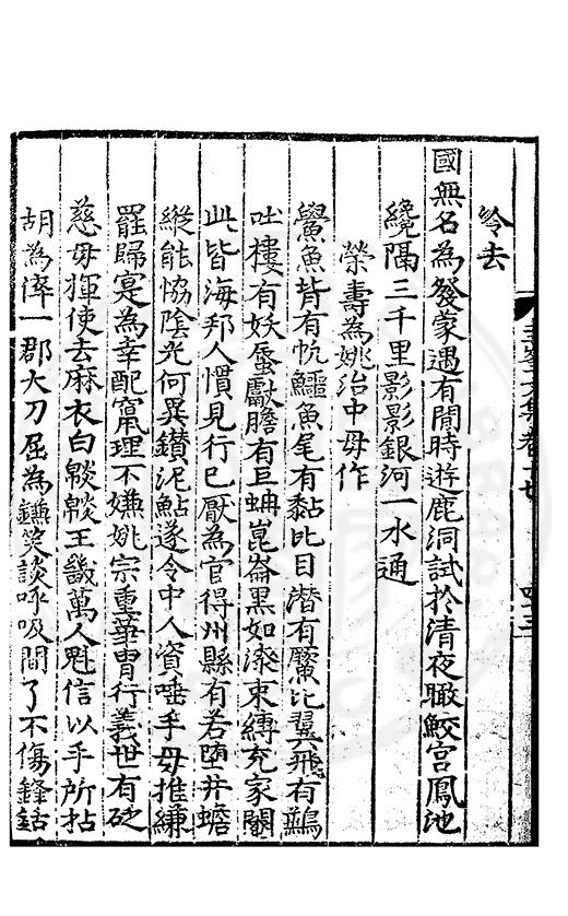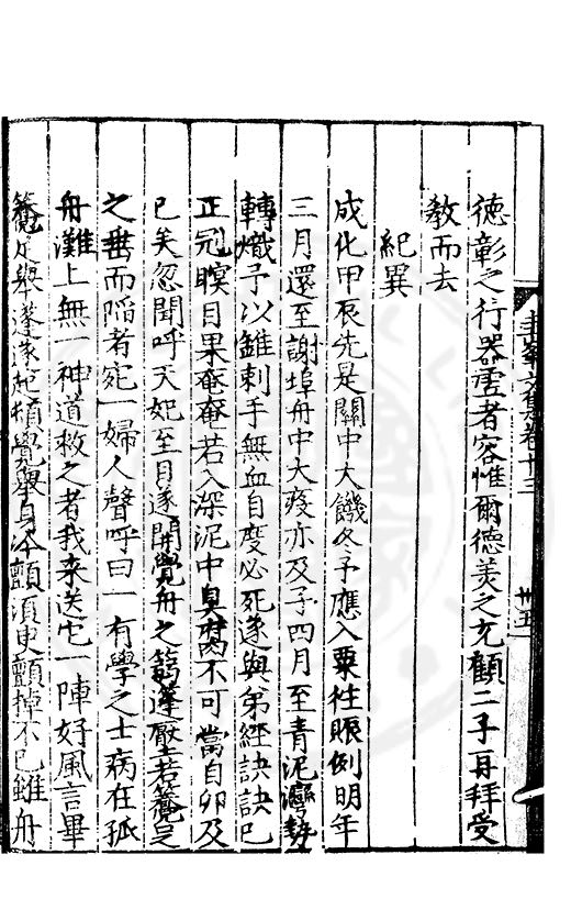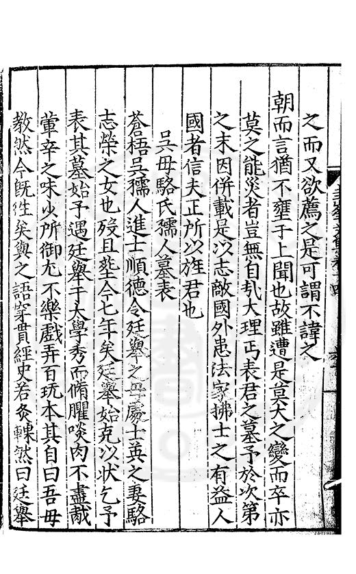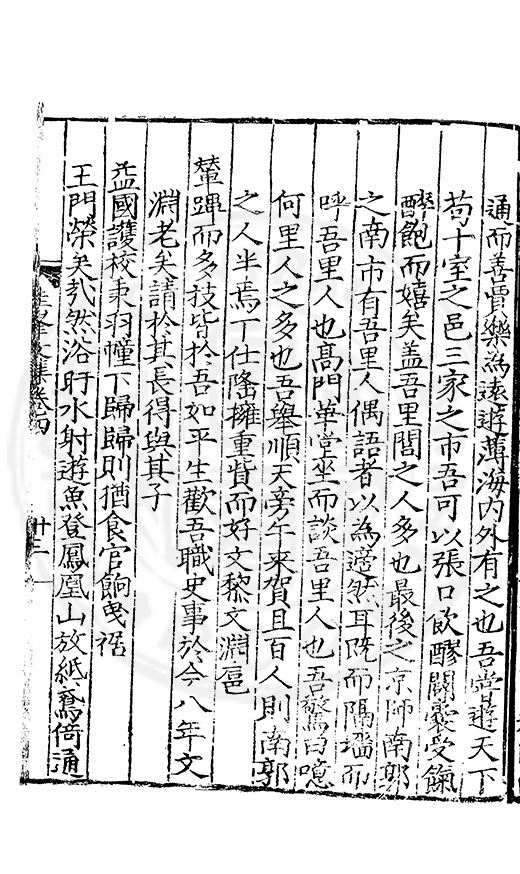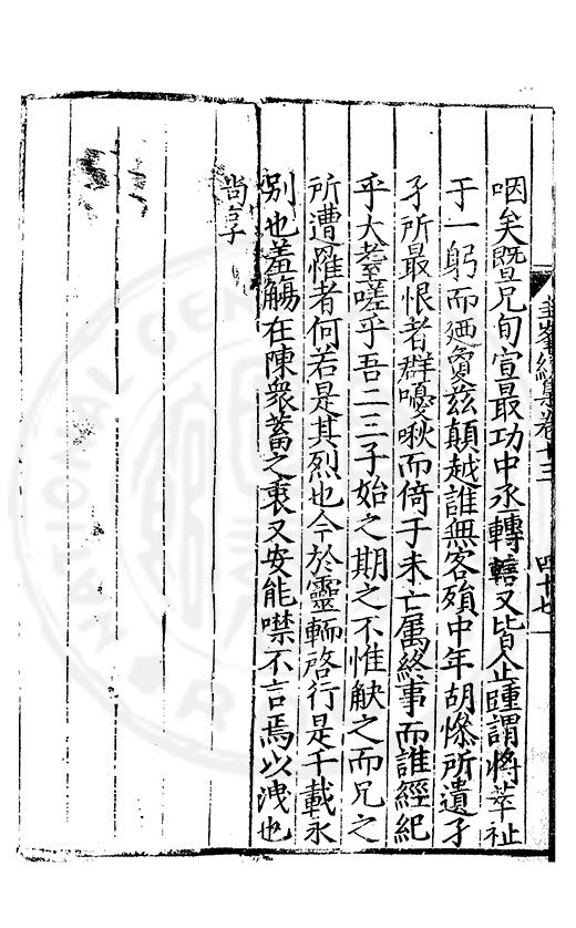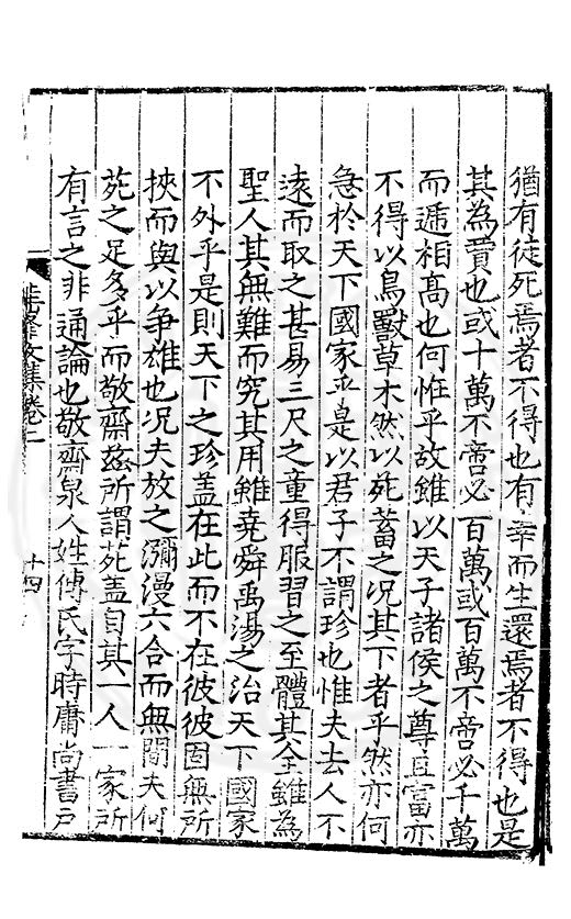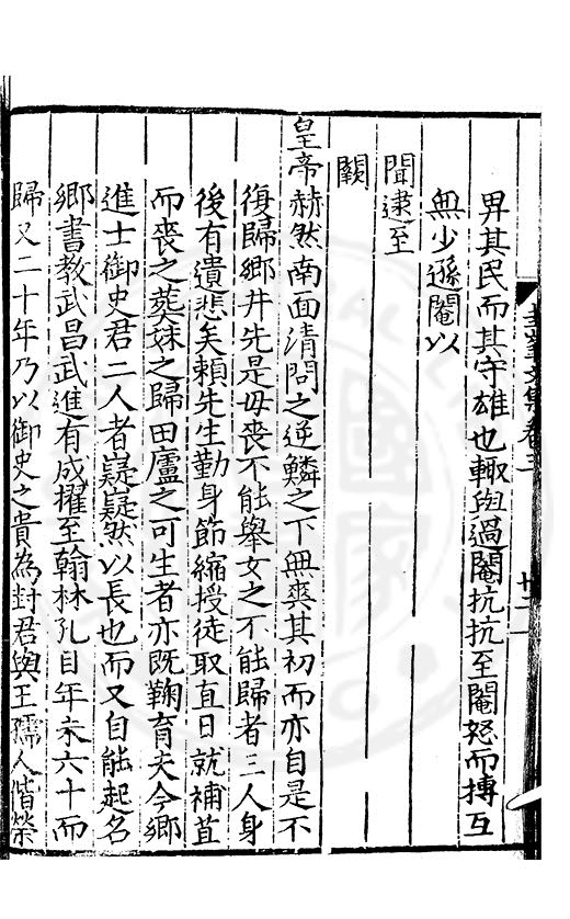尋其脉絡則自龍門禹宂逺不可窺說者謂先生之言出左氏愚獨謂其直泝盤誥之支餘也雖然亦豈易能哉□者宋元君召畫史一史後至儃儃然獨就舘舎觧衣盤礴累日乃命筆則入神矣聞先生為文必嘔心積慮至扃戸牗或距木石隱度逾旬日或遲嵗時神生境具而後命筆稍渉扵萎陋詘誕之微雖