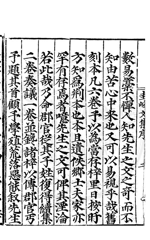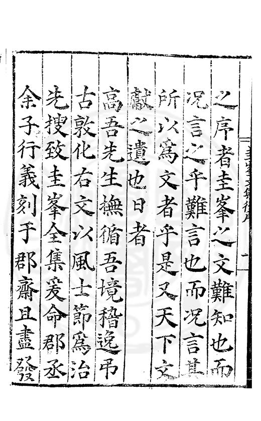 之序者圭峯之文難知也而况言之乎難言也而况言其所以爲文者乎是又天下文獻之遺也日者高吾先生撫循吾境稽逸弔古敦化右文以風士節爲治先搜致圭峯全集爰命郡丞余子行義刻于郡齋且盡發