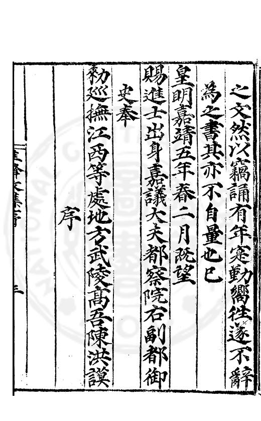 賜進士出身嘉議大夫都察院右副都御史奉勑廵撫江西等處地方武陵高吾陳洪謨序