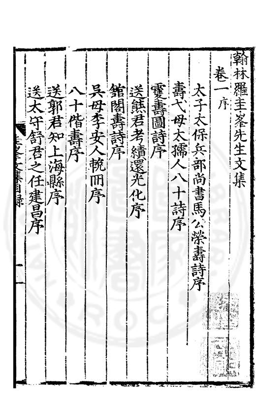 太子太保兵部尚書馬公榮壽詩序