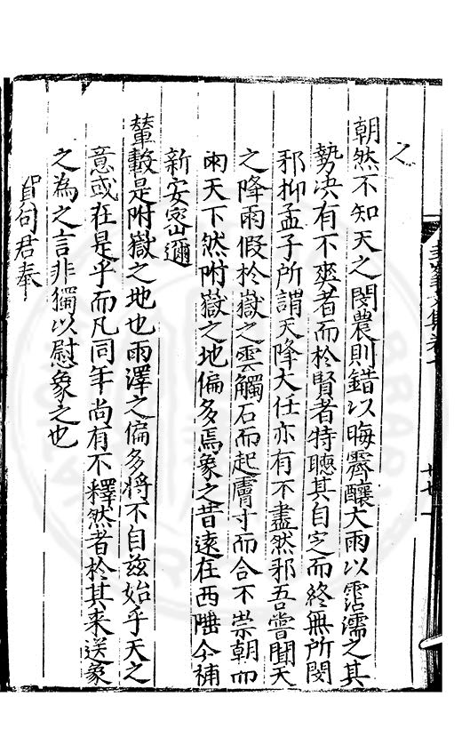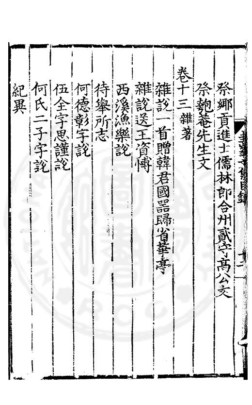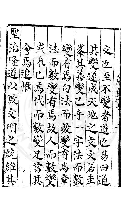 文也至不變者道也易曰通其變遂成天地之文文若圭峯其善變巳乎一字法而數變有焉句法而數變有焉章法而數變有焉故人而數變或未巳焉代而數變足當其會焉追惟聖治隆道以敷文明之統維其