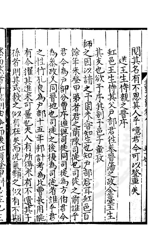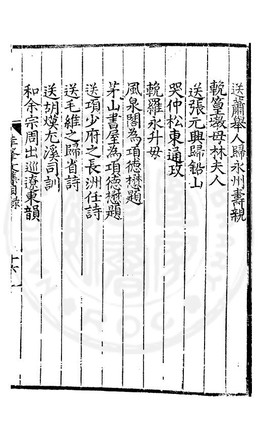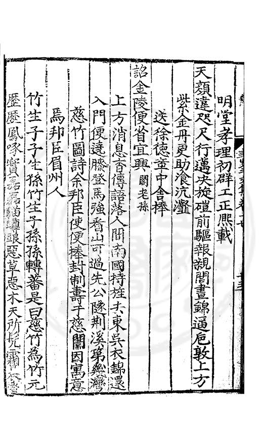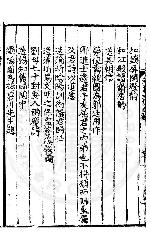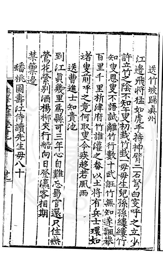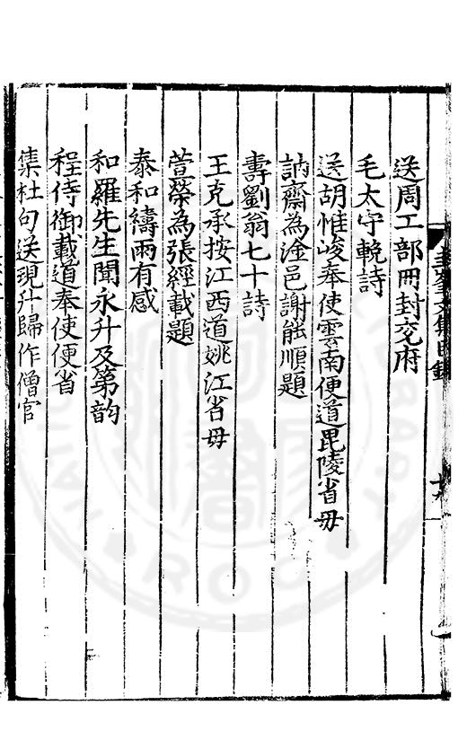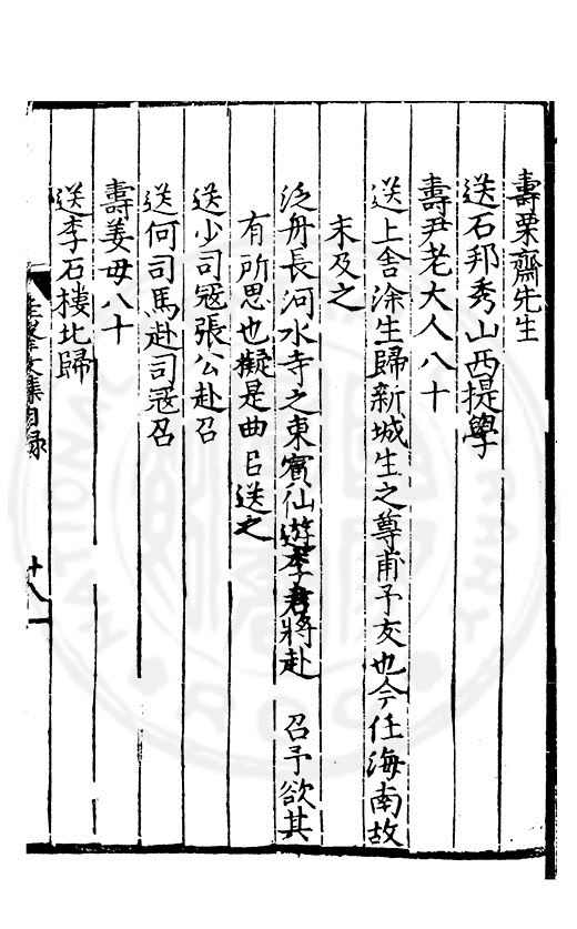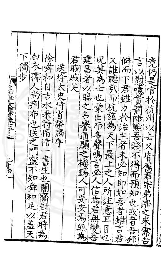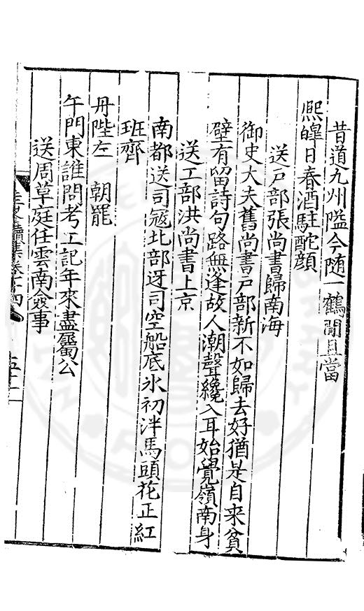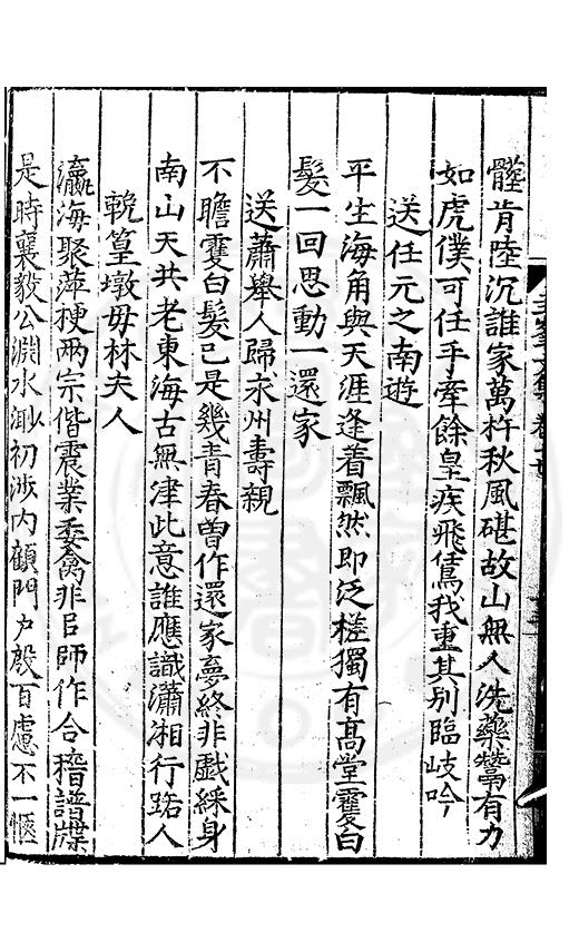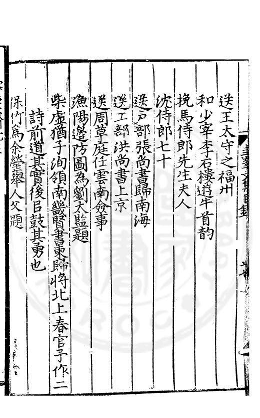 老於離别倍傷神珍重單車赴召身喜見王師□赤幟免逢黎庻逐黄巾重縻好爵周班舊却厭刑書鄭鑄新瀛海東邉幾隣竝依然相迓笑公貧