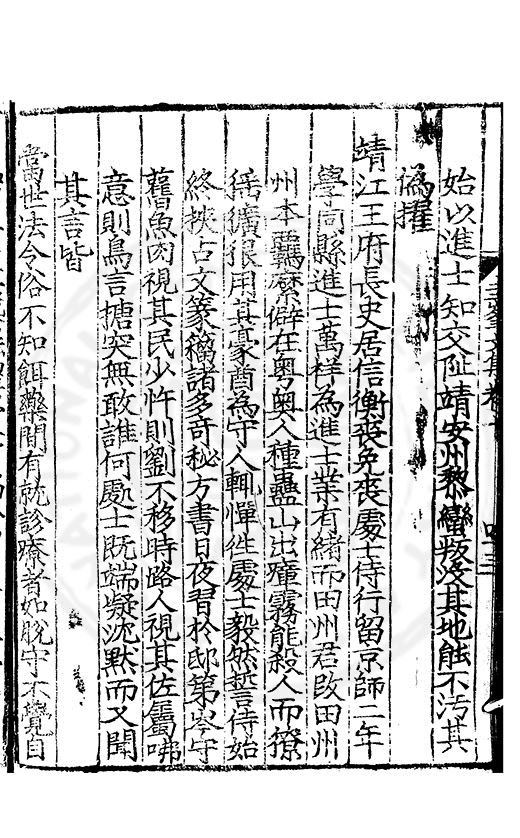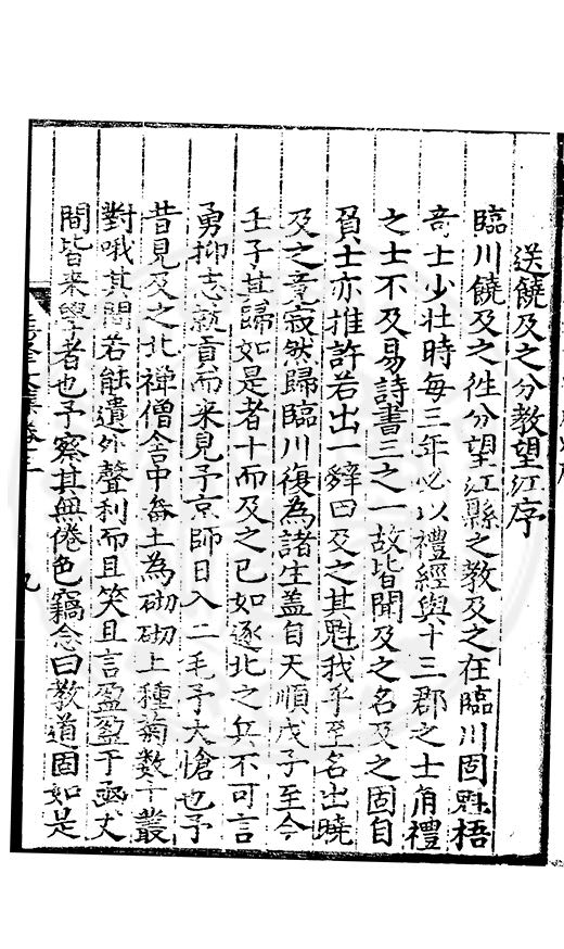 數易藁不憚人知先生之文之竒而不知由苦心中來也又可以易視乎哉舊刻本凡六卷予以為當存梓里日按旴方知爲荊本也本且遺佚郷士夫家亦罕有存焉者噫先生之文可俾其湮淪若此哉乃命郡官従其子姓復得續集二卷奏議一卷並鑱諸梓以傳郡官丐予題其首顧予學殖荒落惡能叙先生