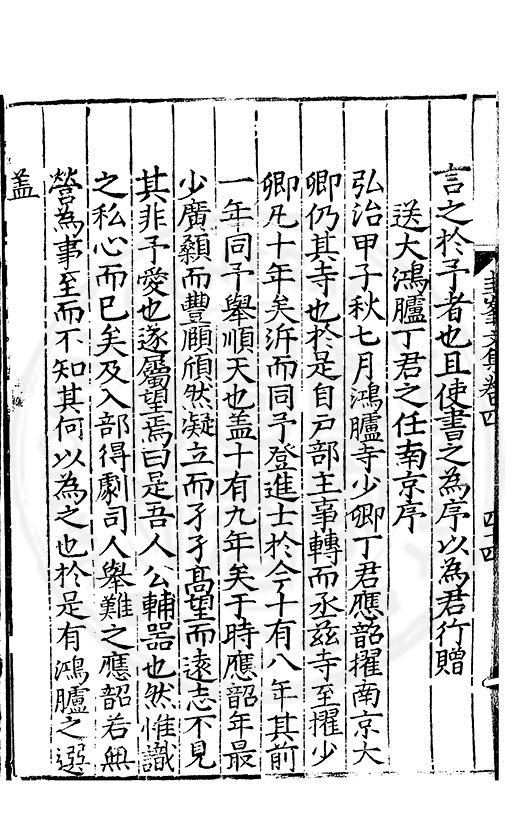送大鴻臚丁君之任南京序