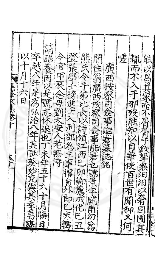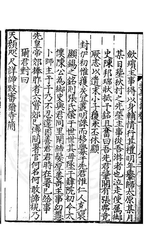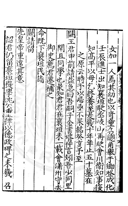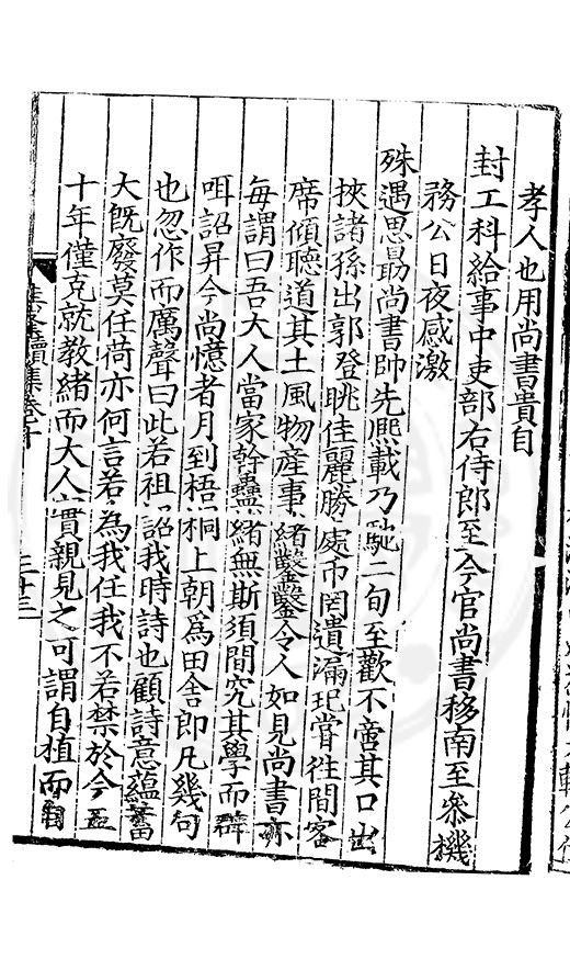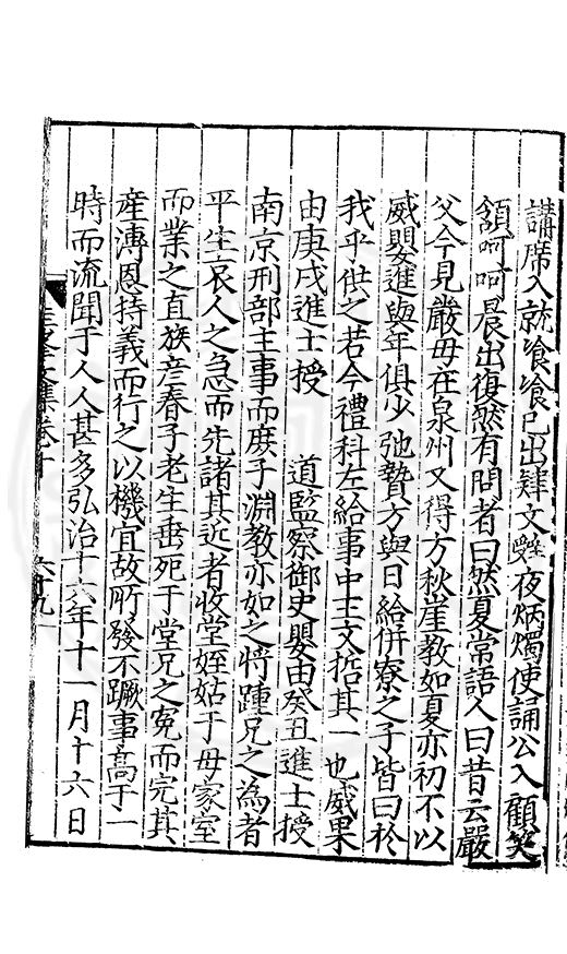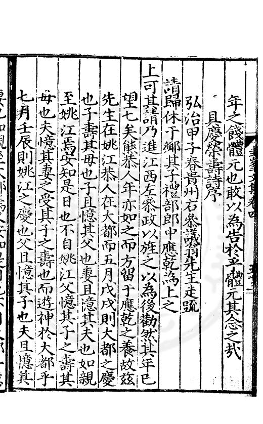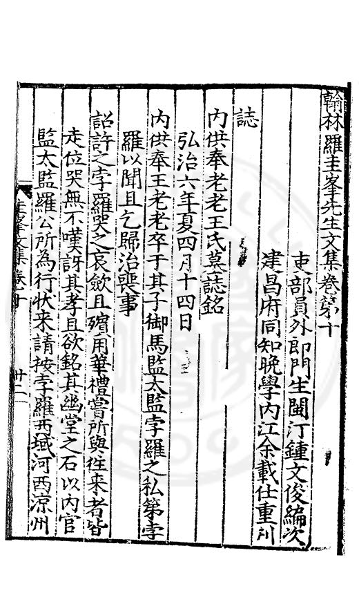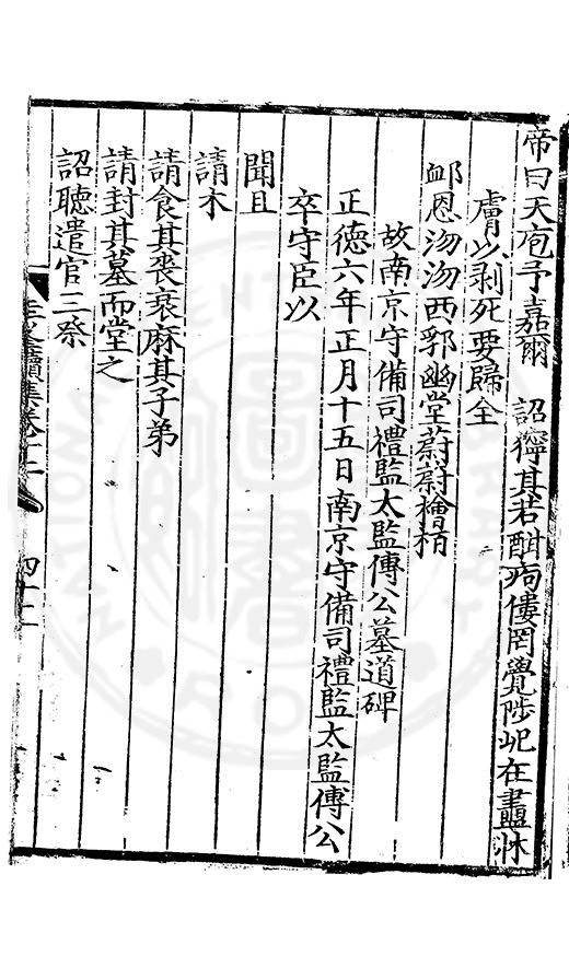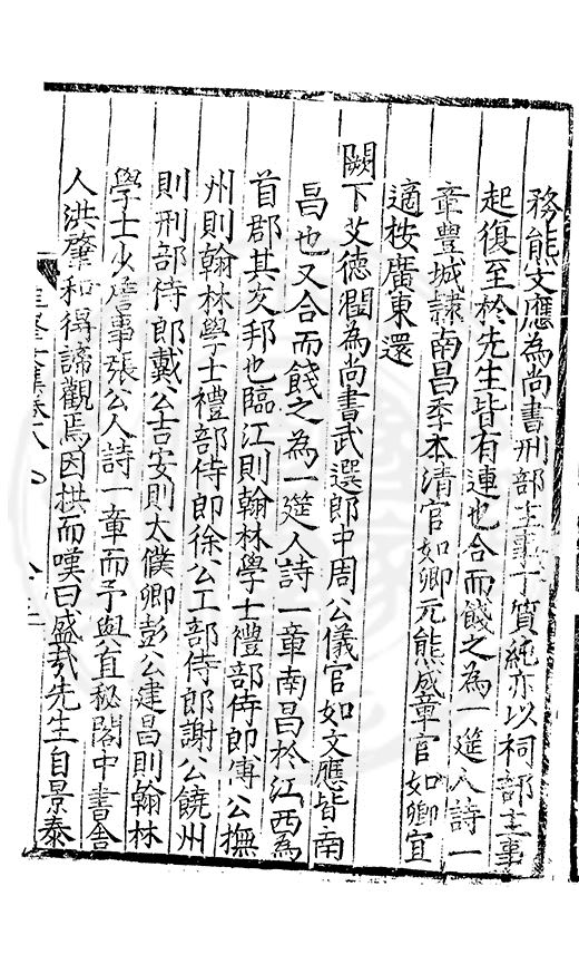 為乞恩休致以全殘喘事臣年六十六歳原籍江西建昌府南城縣人由進士除前任不開外南京太常寺少卿欽陞本寺卿正徳四年六月二十四日到任又自本寺卿欽陞南京吏部右侍郎正徳五年十月十六日到任通理前任扣該正徳七年五月二十三日三年考滿縁臣自