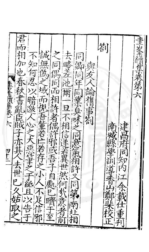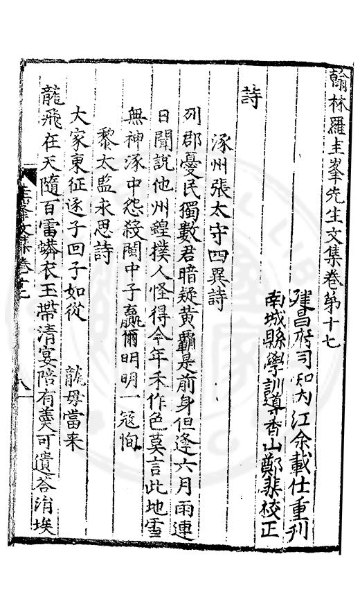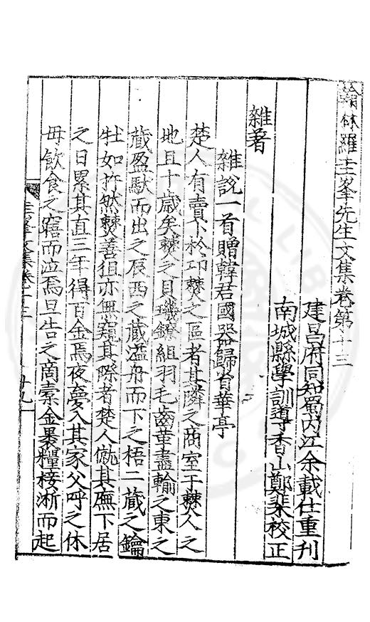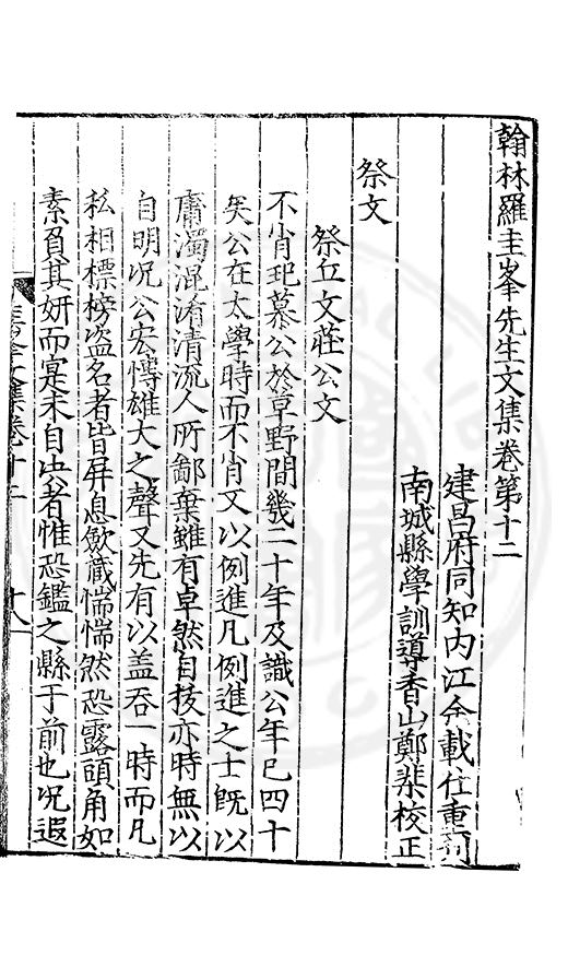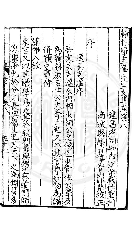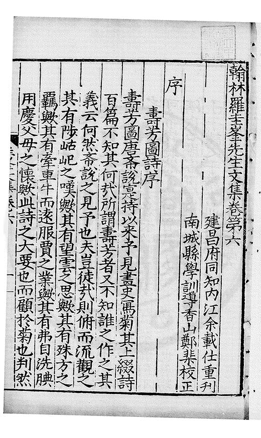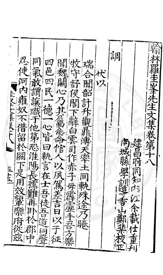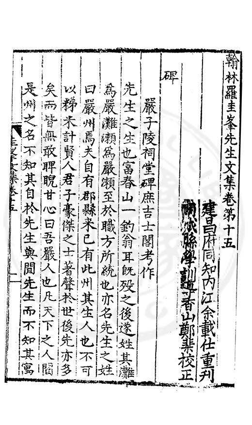郷哲羅圭峯先生以節行名□而肆學藝文力追古先故天下學士宗之不獨以文也其前集刻常州本歸太學人不多得再刻荊州本與續集奏議刻南畿流布雖逺怕愧吾郷郡文獻之遺也然皆莫
