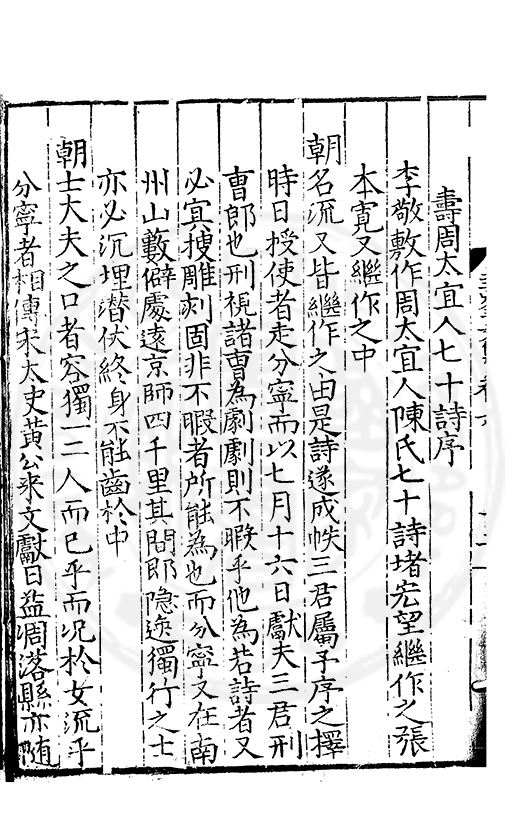 壽弋母太孺人八十詩序