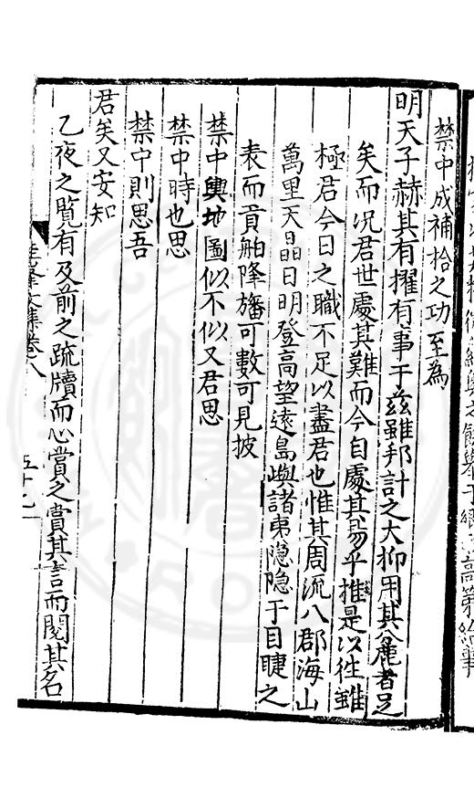 陛下天地曠蕩之恩可乎臣又思感恩之極人雖至愚茍有一得之見自畏一身之死懷而不為明主吐之及至老衰病篤而畢竟以死是畏死而不免扵死徒感恩而不知報其恩其果得為忠乎又果得為智乎使死而有知也寕不悔于地下乎且臣之所謂一得之見非指四方盗賊衆人目前所謂急者也亦非隱微而濳伏也左右大臣所共知也百司庶尹言官所共知也閭閻小人外至荒服夷狄所共知也或畏死而不敢以言或以非其職而不得以言或卑且逺而不獲以言或懷禄保位而不肯以言甚或乗隙市姦以媒非常之貴富而幸人之不言為巳地者焉斯