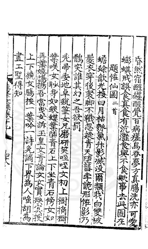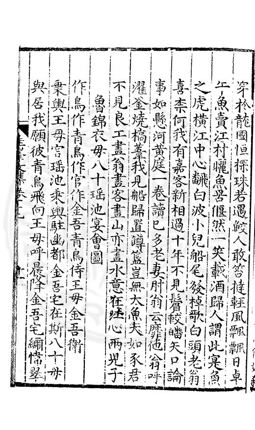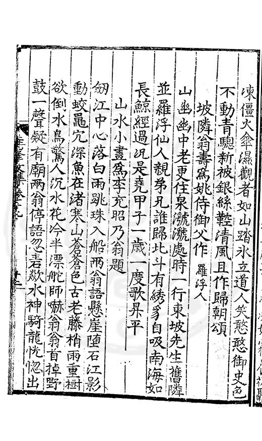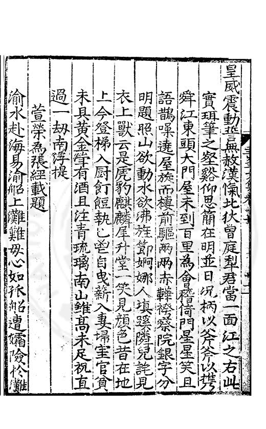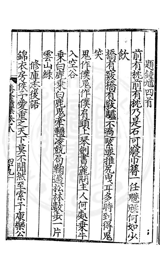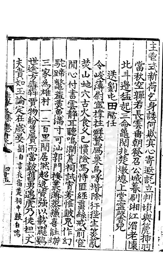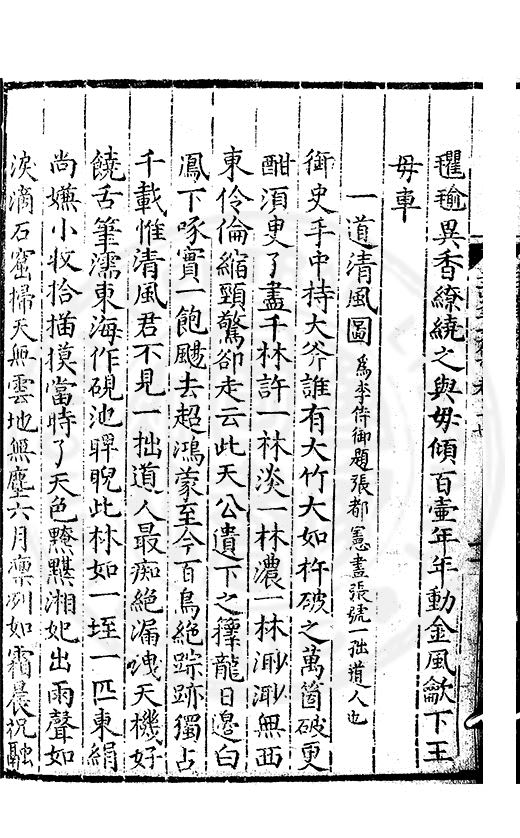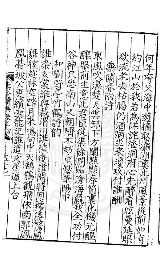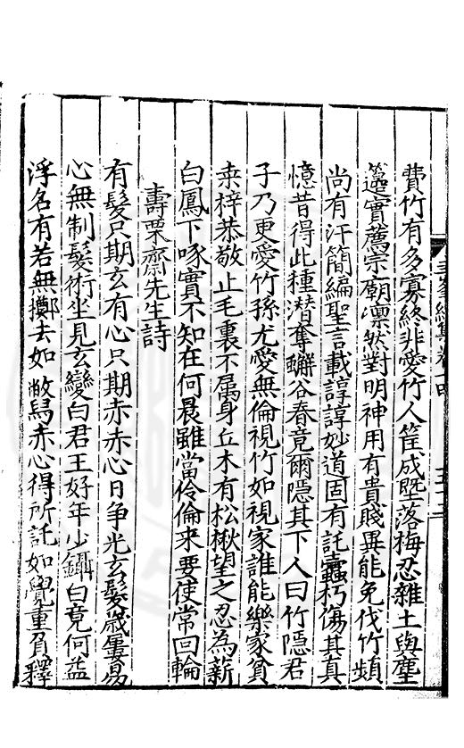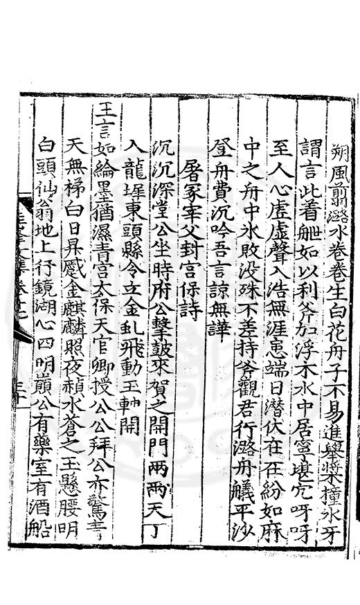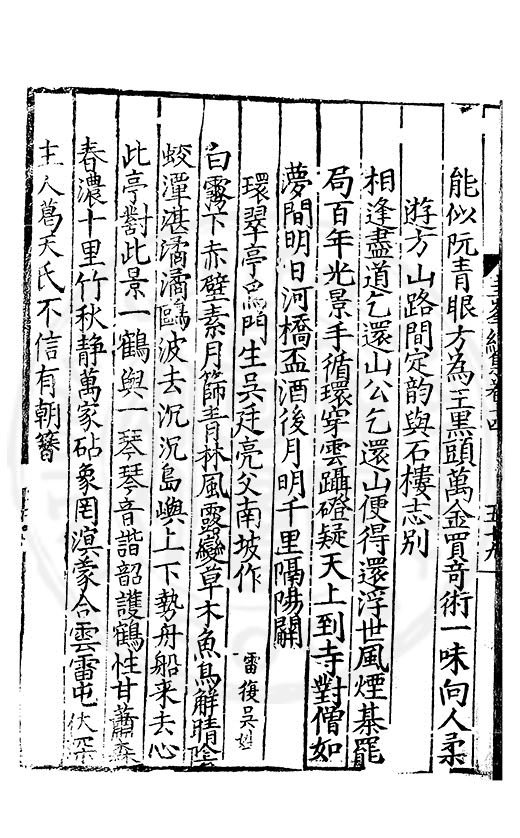 白霧下赤壁素月篩青林風露變草木魚鳥觧晴隂蛟潭湛潏潏鷗波去沉沉島嶼上下勢舟船來去心此亭對此景一鶴與一琴琴音諧韶護鶴性甘蕭森春濃十里竹秋静萬家砧象罔溟蒙合雲雷屯伏深主人葛天氏不信有朝簮