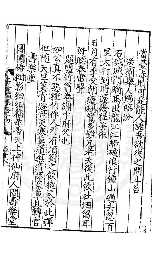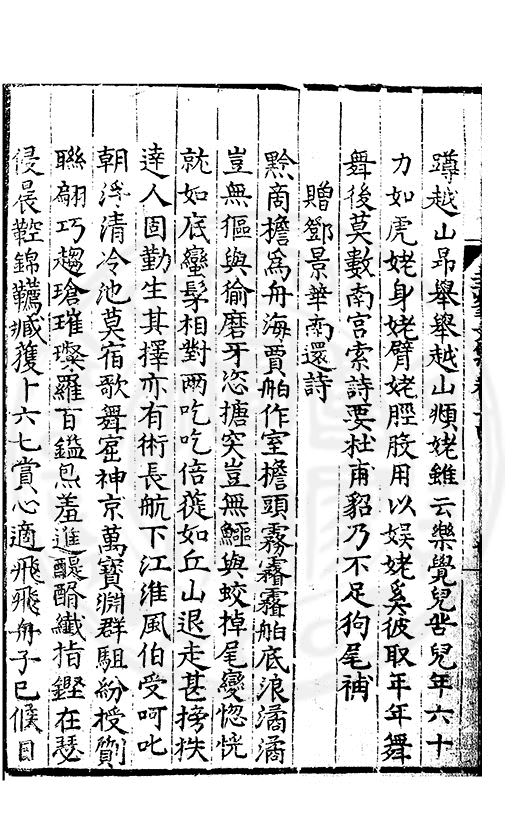 唐人少陵杜虞氏納言龍官住兩都遍詩求百代宗金山渡頭寺鐵甕望中峯若度盧溝月可通書一封
