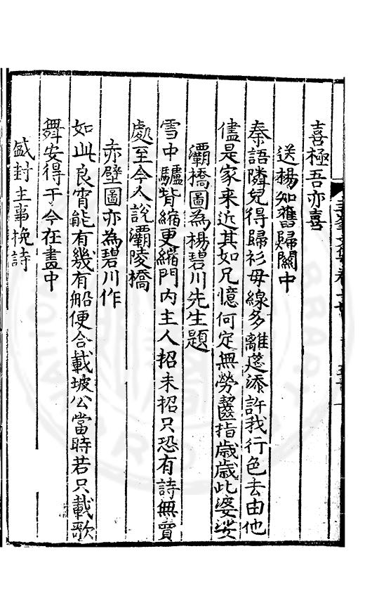 三月鶯華江不寒歸船如馬坐來安眼觀城郭人民舊心覺形骸禮數寛翁試抱孫忘老去飲初留令喜盃乾羹墻爼豆常常見自是他年易作官