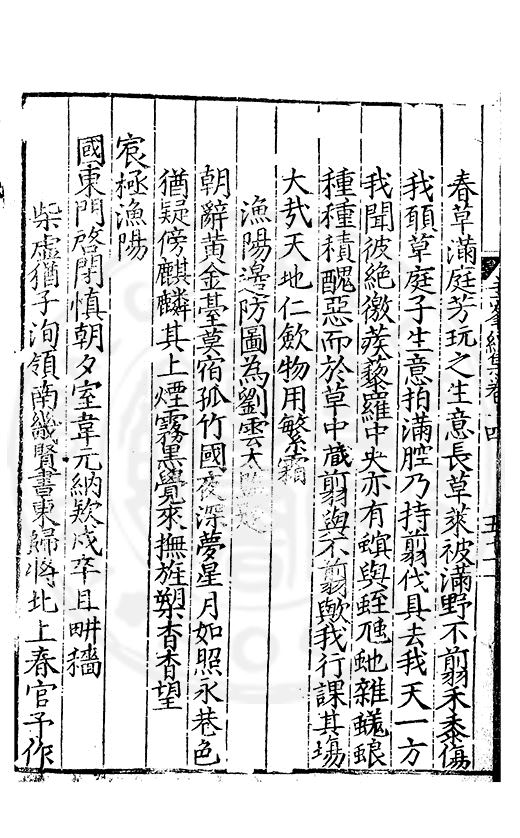 老諸公衮衮覺誰憂巳傳新將韓擒虎無復偷兒奡盪舟定到五更宫漏下可忘問寢到龍樓