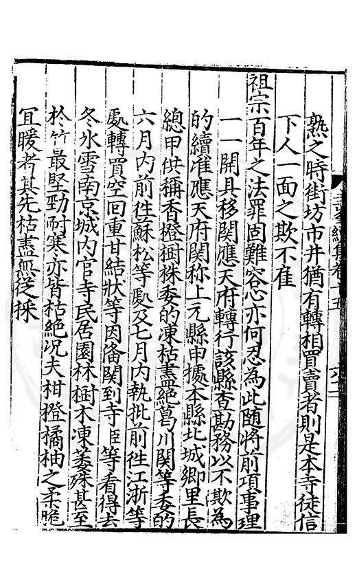熟之時街坊市井猶有轉相買賣者則是本寺徒信下人一面之欺不雇祖宗百年之法罪固難容心亦何忍為此随將前項事理一一開具移関應天府轉行該縣查勘務以不欺為的續准應天府関称上元縣申據本縣北城郷里長總甲供稱香橙樹株委的凍枯盡絶葛川関等委的六月内前徃蘇松等處及七月内執批前徃江浙等處轉買空囘重甘結狀等因俻関到寺臣等看得去冬氷雪南京城内官寺民居園林樹木凍萎殊甚至扵竹最堅勁耐寒亦皆枯絶况夫柑橙橘柚之柔脆冝暖者其先枯盡無從採