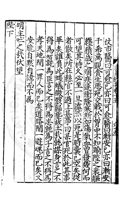 仗市醫曰可愈巳亦曰可愈醫曰漸安巳亦曰漸安千希萬覬貪生悪死交戰扵胷中不知踰陸之衰軀纒積歳之痼疾遂衝隆寒新加傷氣血曽復幾何而可望其持乆必至一旦溘然以死是時囊巳空矣從者散矣所在縣官不過上其事曰某官死扵此其事畢矣誰負此螻蟻微骸歸塟故土哉就謀身言之不得為智就為臣言之不得為忠就為子言之不得為孝天地間一罪人而巳矣道路間一逰魂而巳矣又安能自黙自諱而不為明主吐之哉伏望陛下