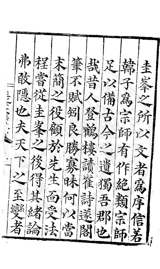圭峯之所以文者爲序信若韓子爲宗師有作絶類宗師足以備古今之遺獨吾郡也哉昔人登鶴樓獨崔詩遂閣筆不賦矧良勝寡昧何以當末簡之役顧於先生靣受法程嘗從圭峯之後得其緒論弗敢隱也夫天下之至變者