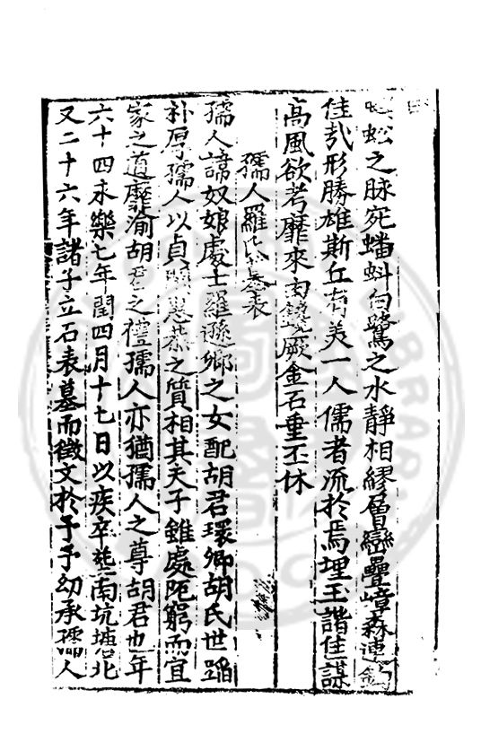 孺人諱奴娘處士羅遜卿之女配胡君環卿胡氏世蹈