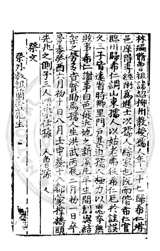 林編脩?祖諱紹柳州教授孺人年二十七歸希仁游