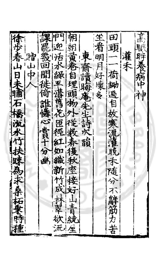 囂也徙近郊之某處號曰草庵地?幽曠園池竹樹日
