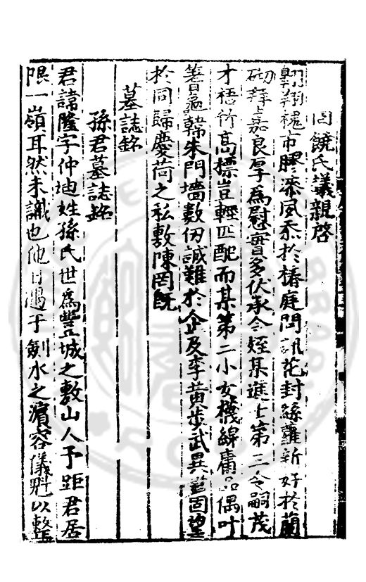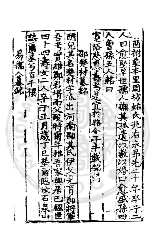 嗚呼夫人育秀大家配??門猗歟二氏克武克文惟