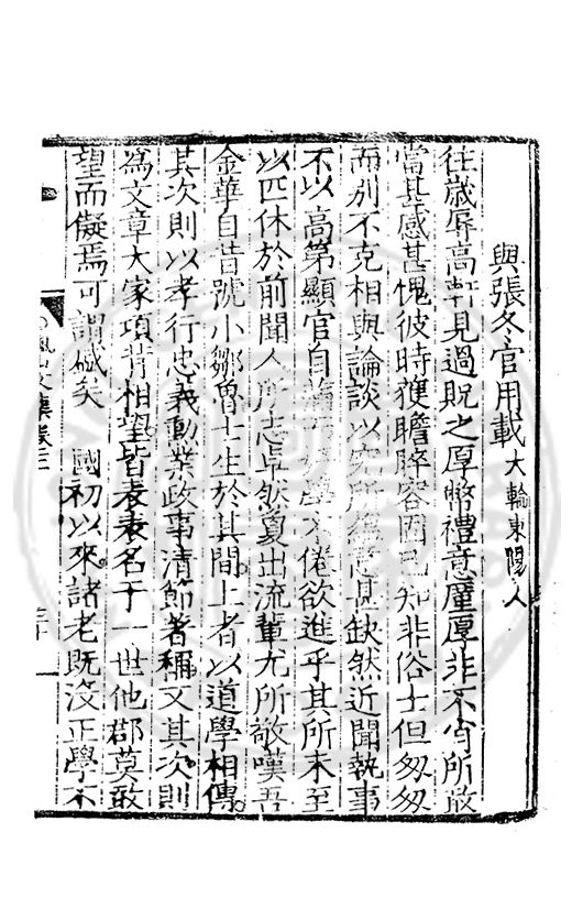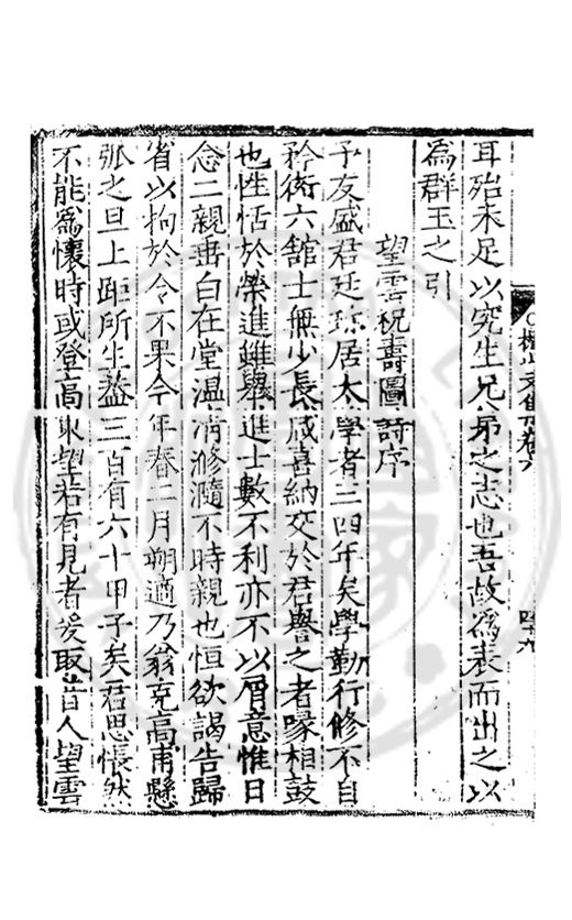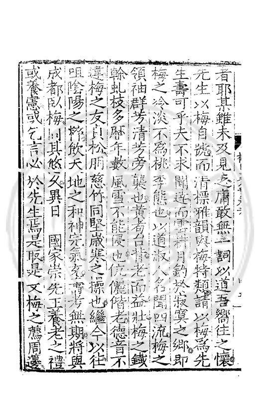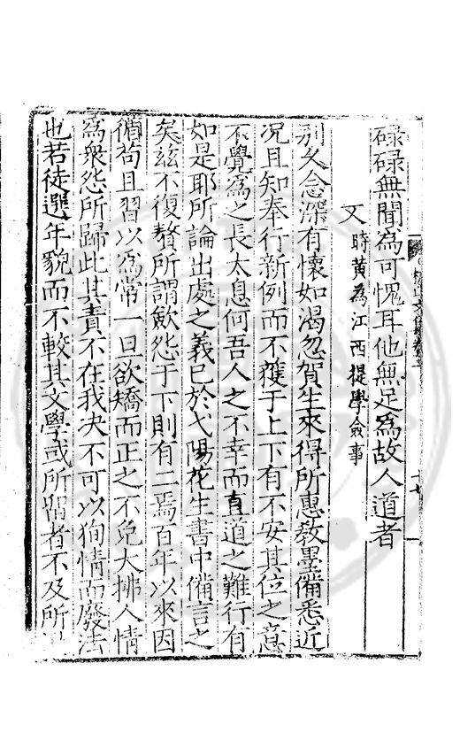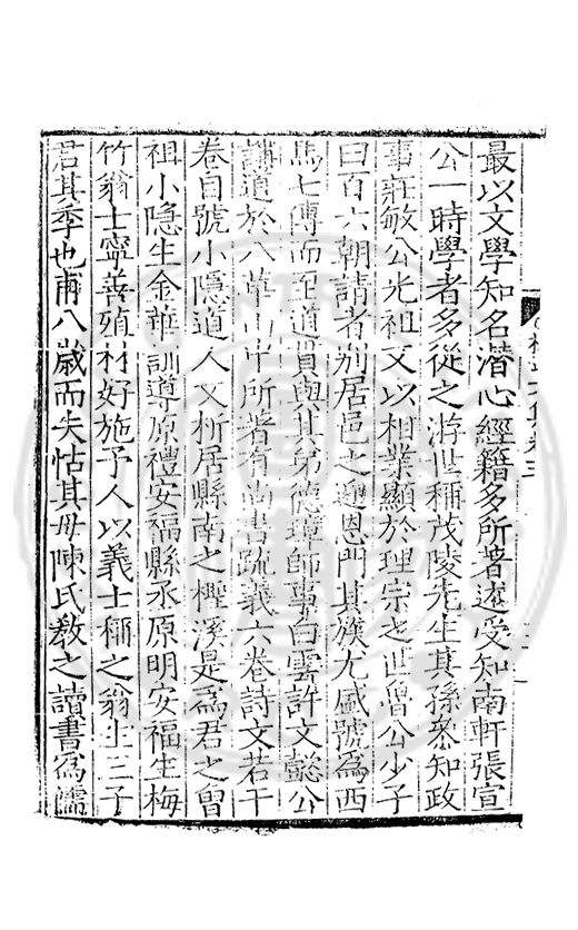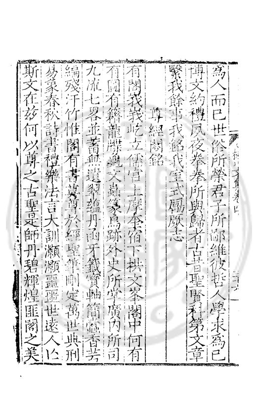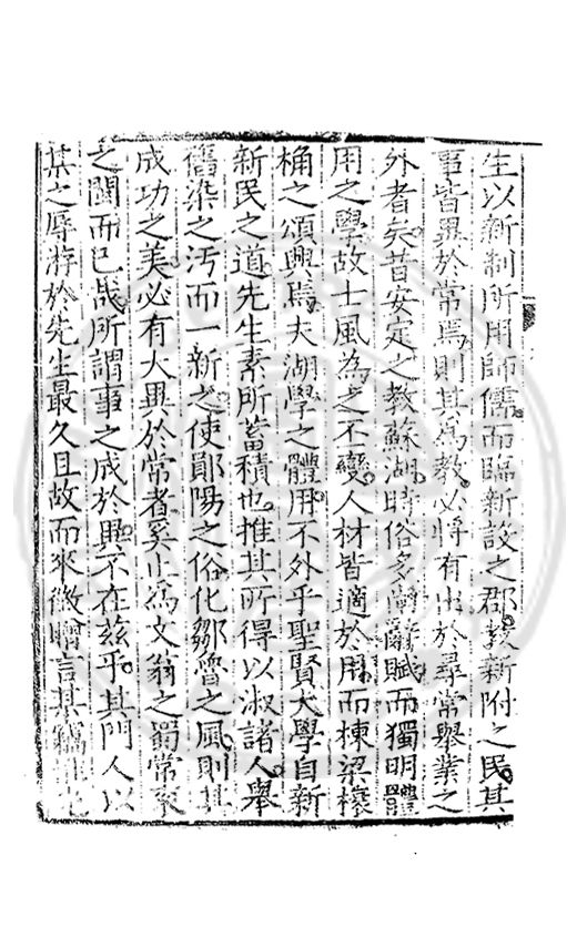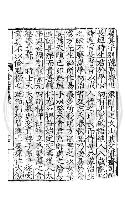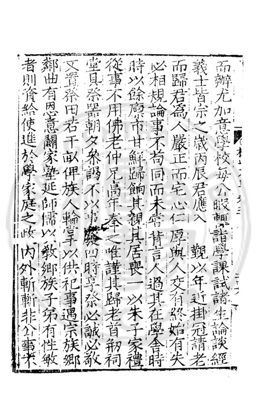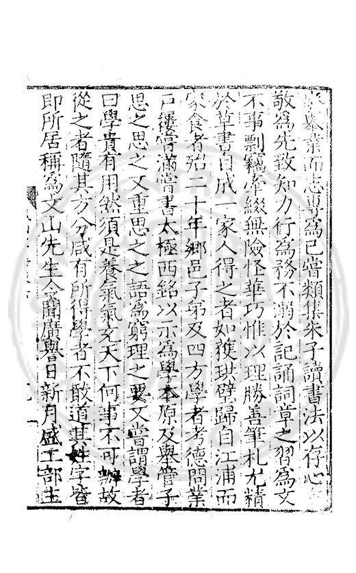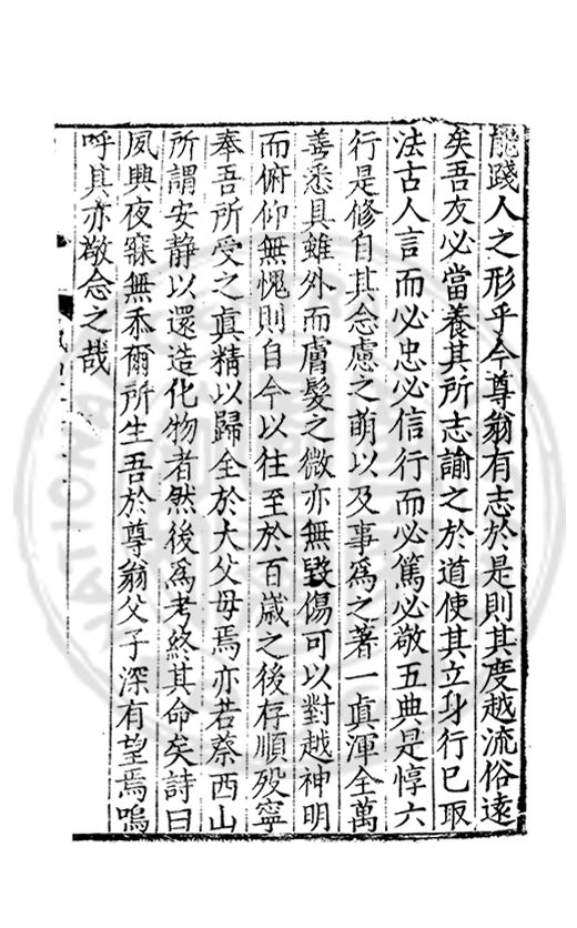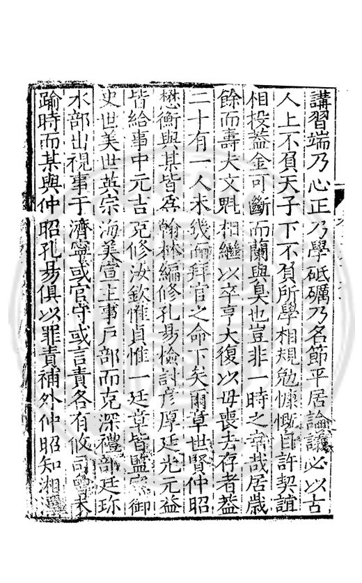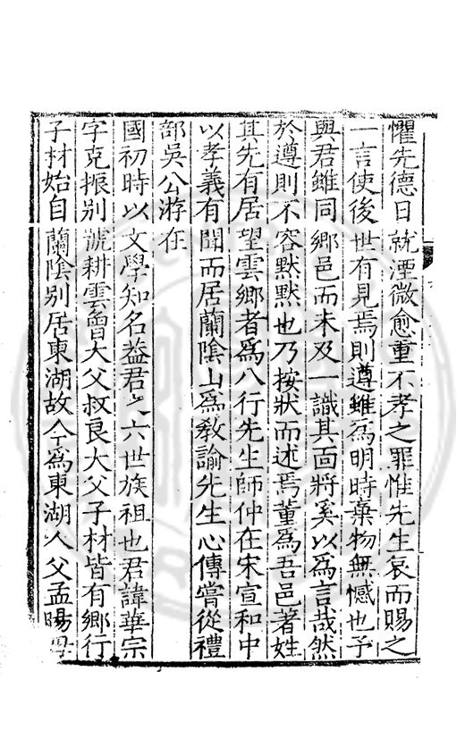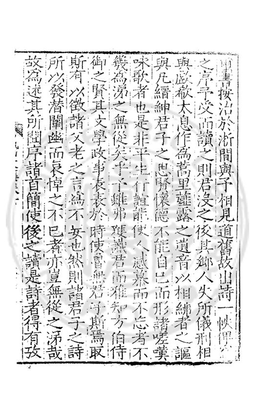 肅容端如盛服襜如身之□而道則内腴文之郁而朴以自居馬帳横経士皆我模楚筵設醴禮不我渝人皆知為當代之文儒籝金匪貴鯉庭是趨有冠峩豸有臺棲烏人又知丹穴之有鳯雛噫是皆得其麤而徒語其膚彼其梁棟榱角在宋則安定之胡明道正誼在漢則江都之舒究先生之所存殆将與若人而齊驅者歟