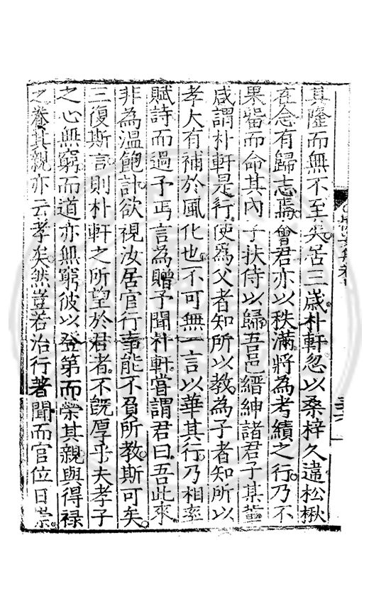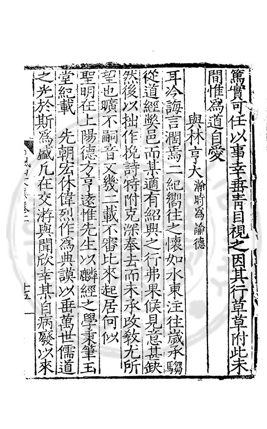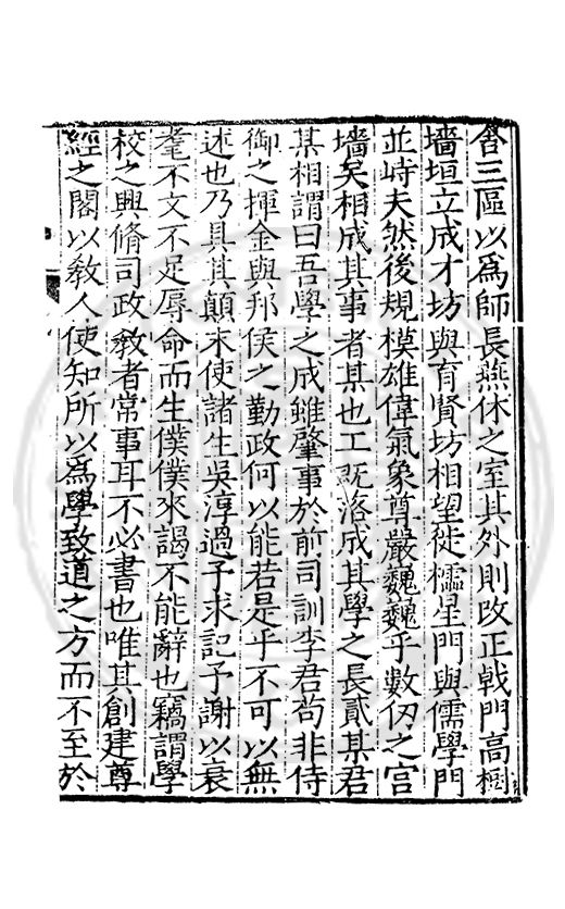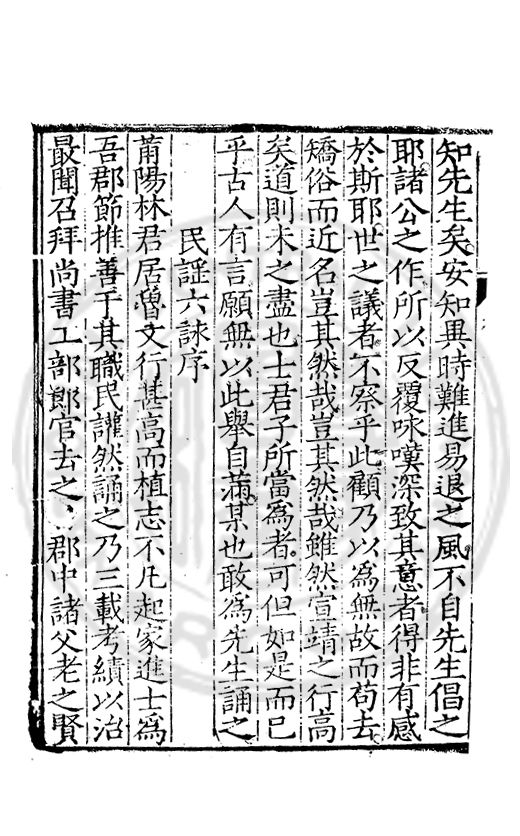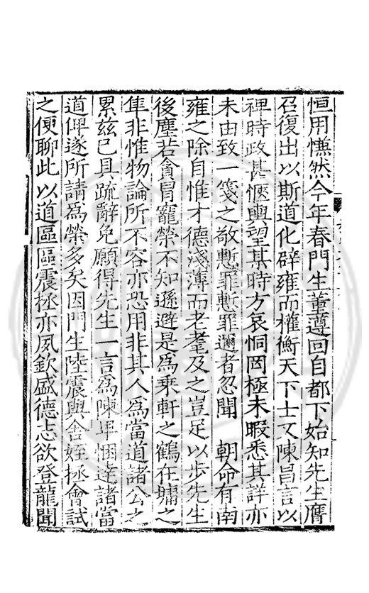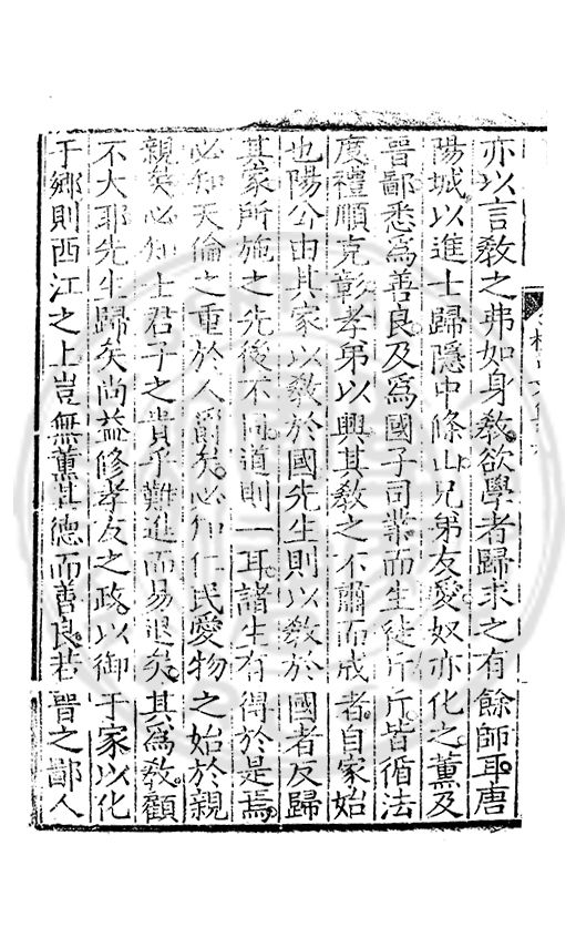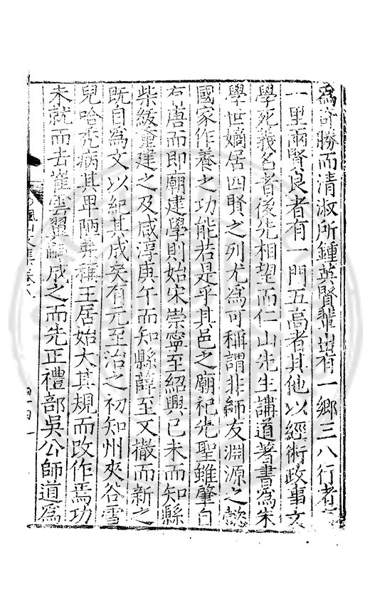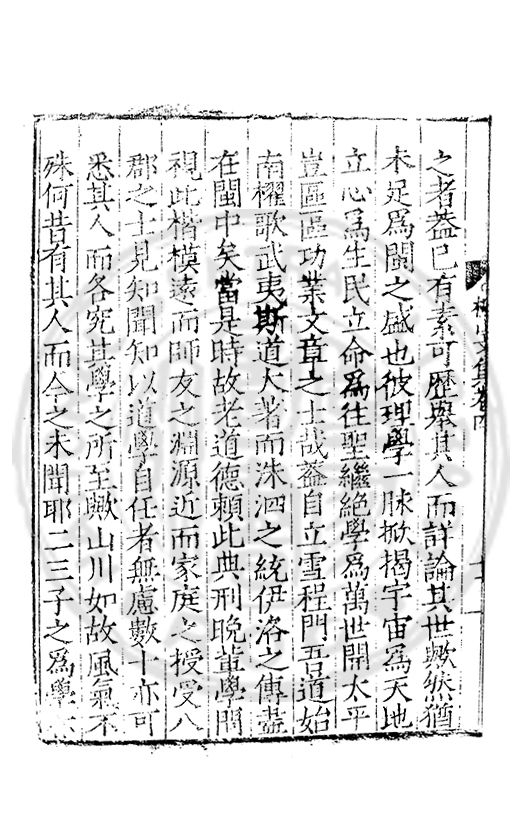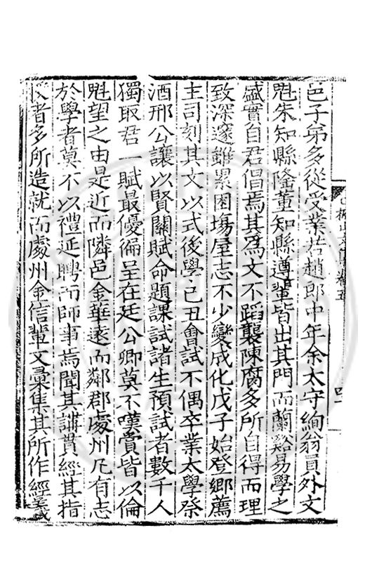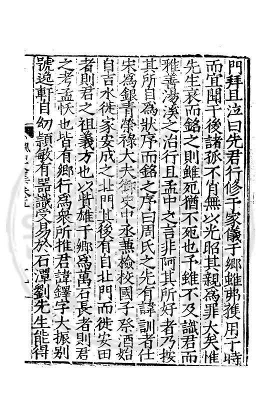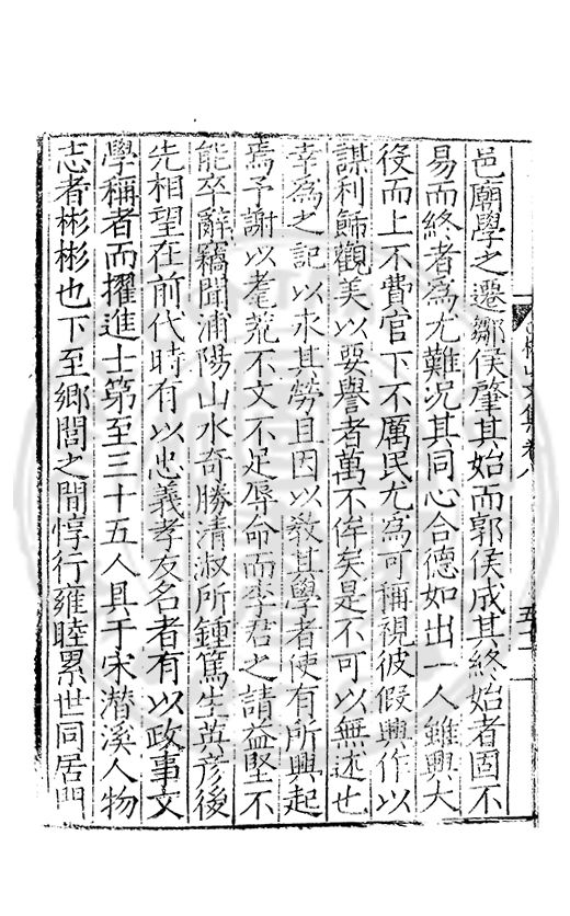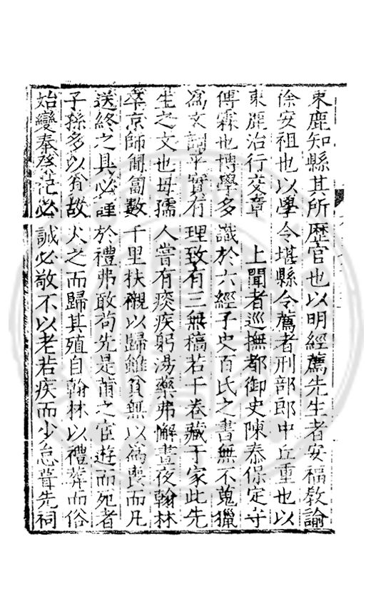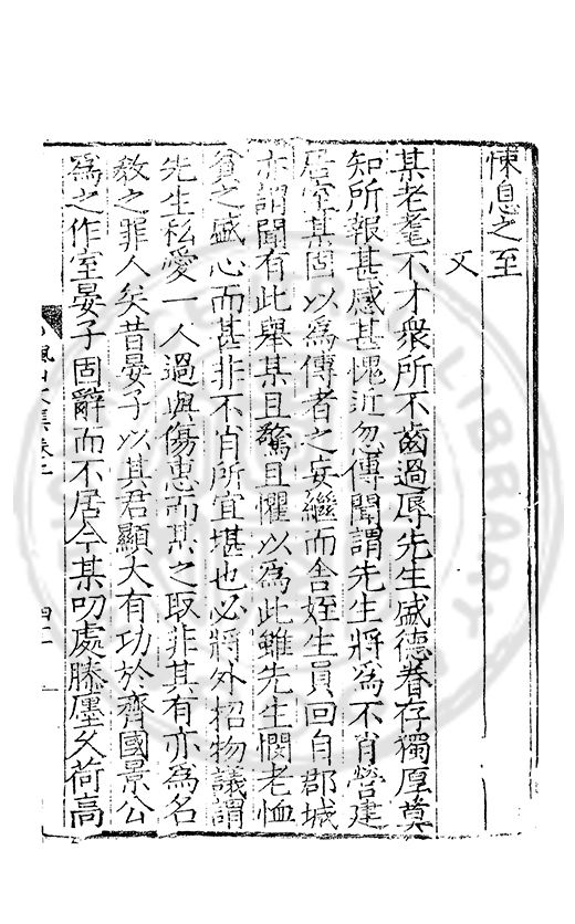 肅容端如盛服襜如身之□而道則内腴文之郁而朴以自居馬帳横経士皆我模楚筵設醴禮不我渝人皆知為當代之文儒籝金匪貴鯉庭是趨有冠峩豸有臺棲烏人又知丹穴之有鳯雛噫是皆得其麤而徒語其膚彼其梁棟榱角在宋則安定之胡明道正誼在漢則江都之舒究先生之所存殆将與若人而齊驅者歟