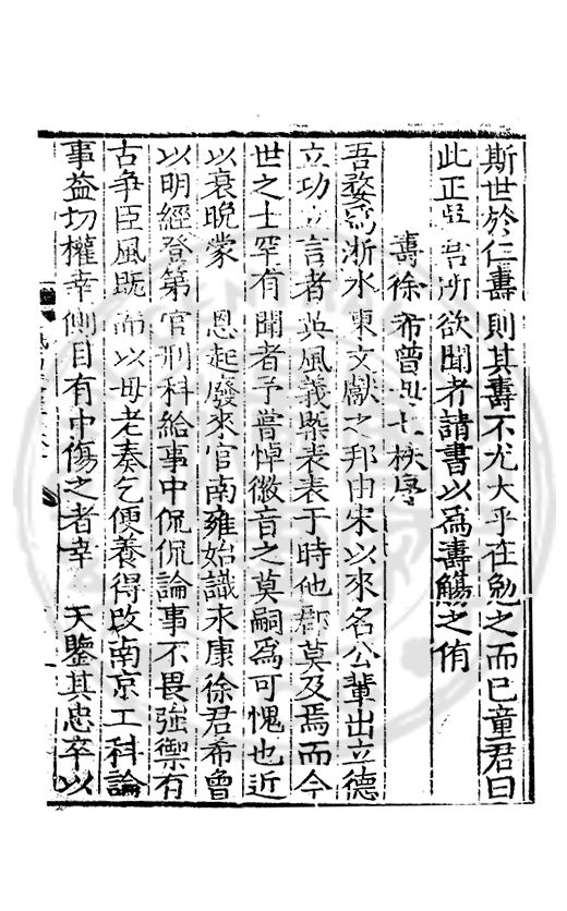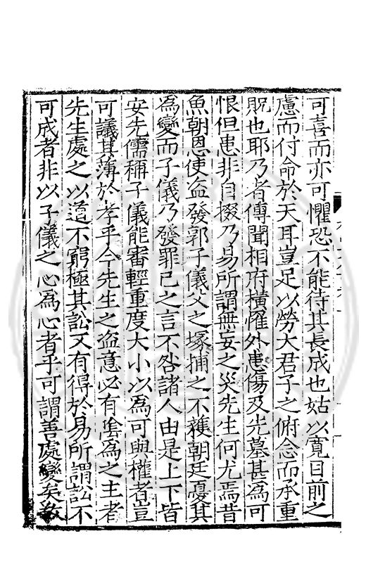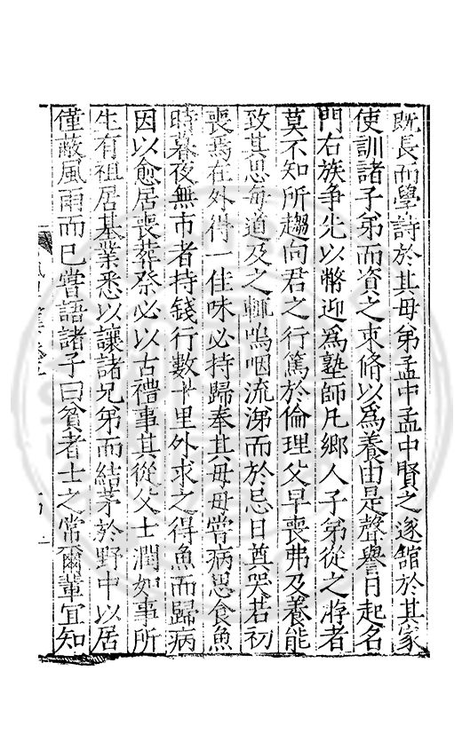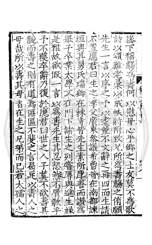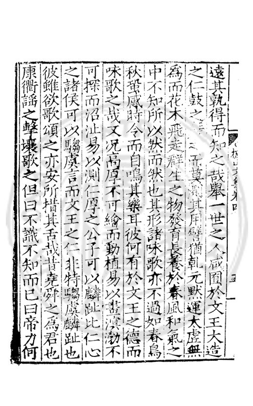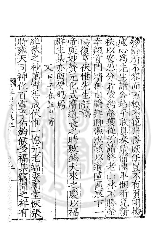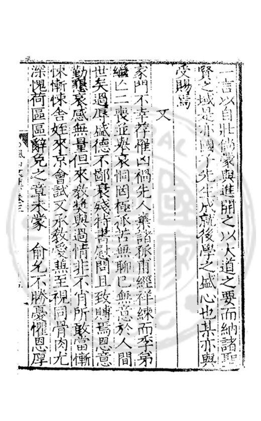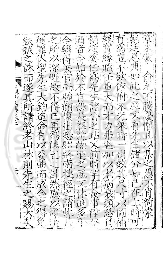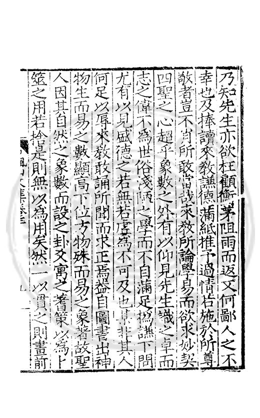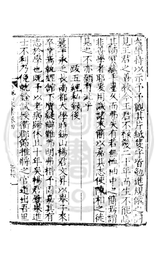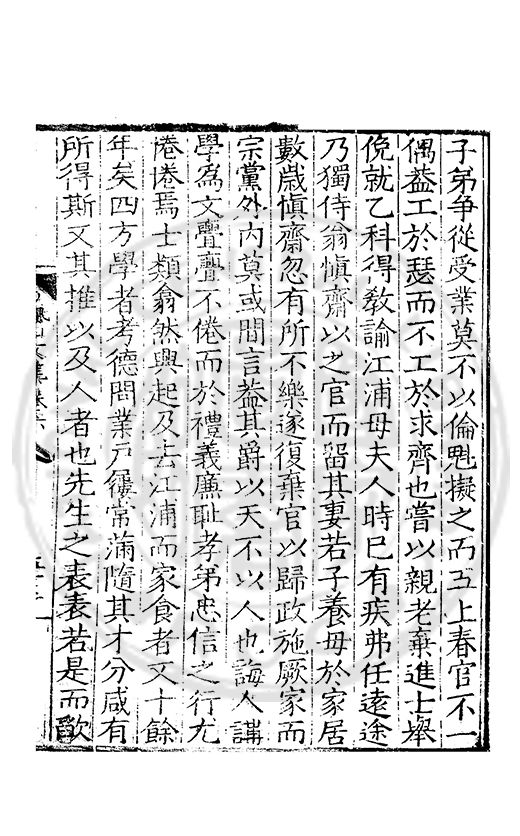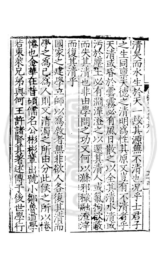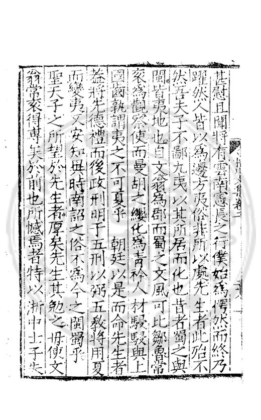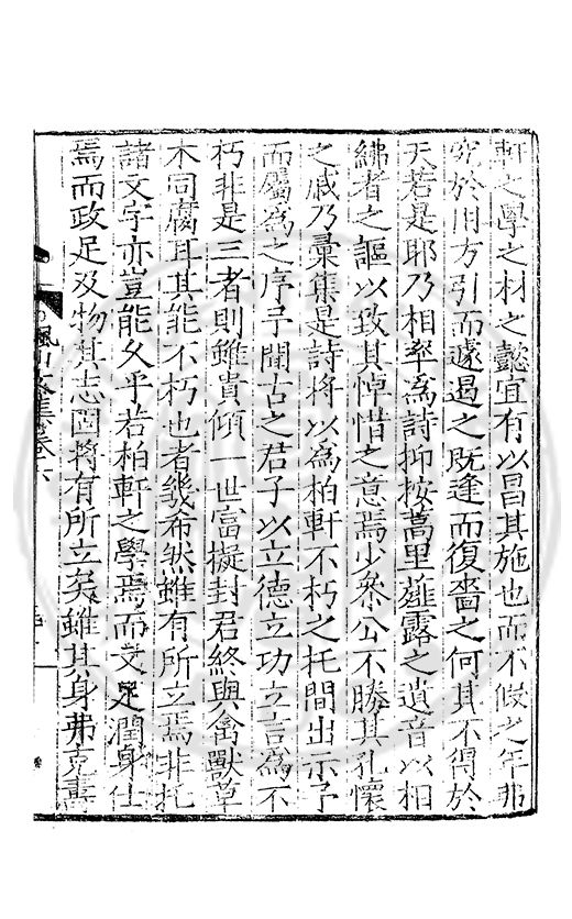 肅容端如盛服襜如身之□而道則内腴文之郁而朴以自居馬帳横経士皆我模楚筵設醴禮不我渝人皆知為當代之文儒籝金匪貴鯉庭是趨有冠峩豸有臺棲烏人又知丹穴之有鳯雛噫是皆得其麤而徒語其膚彼其梁棟榱角在宋則安定之胡明道正誼在漢則江都之舒究先生之所存殆将與若人而齊驅者歟