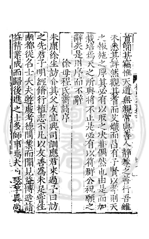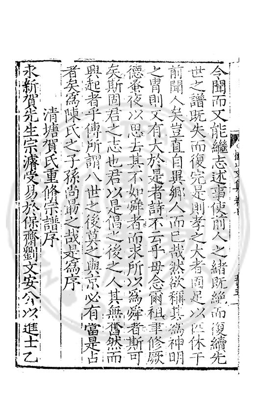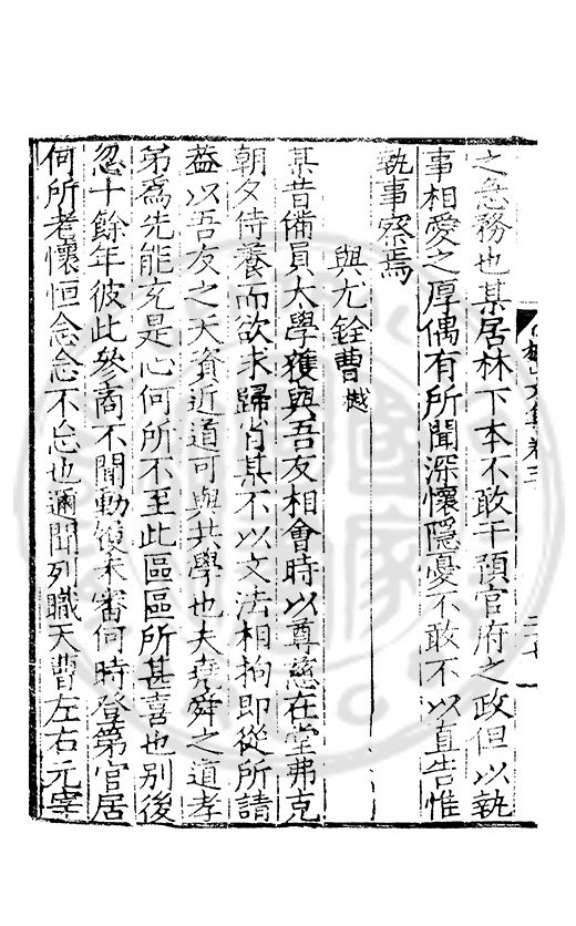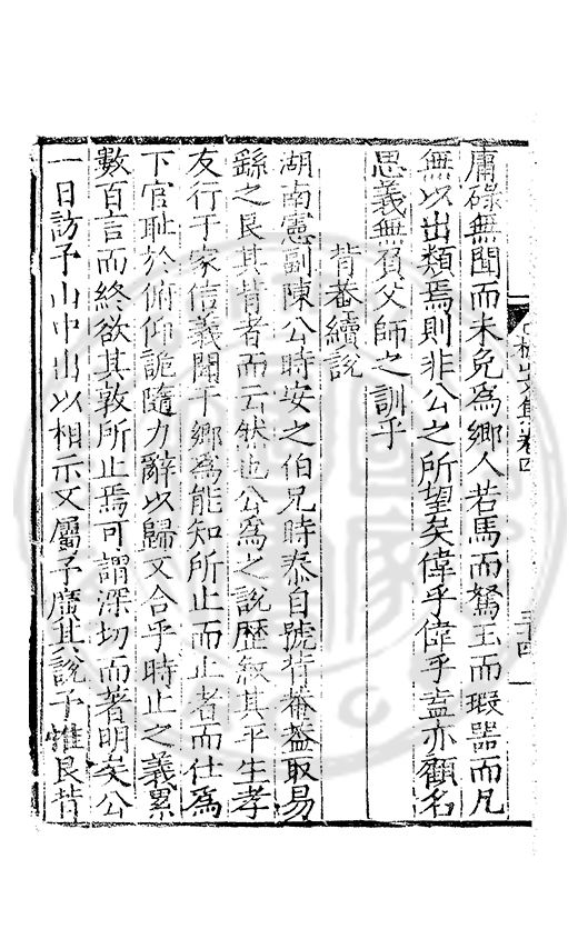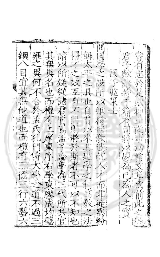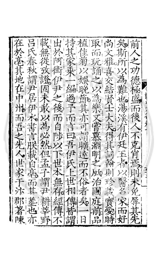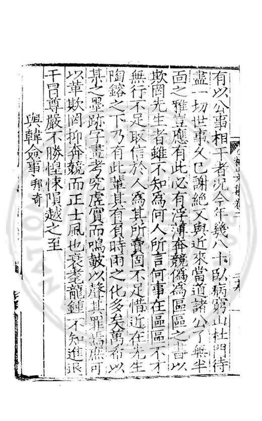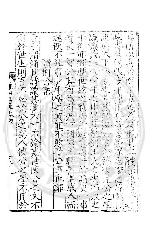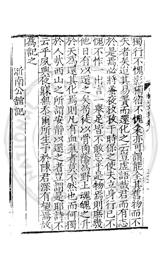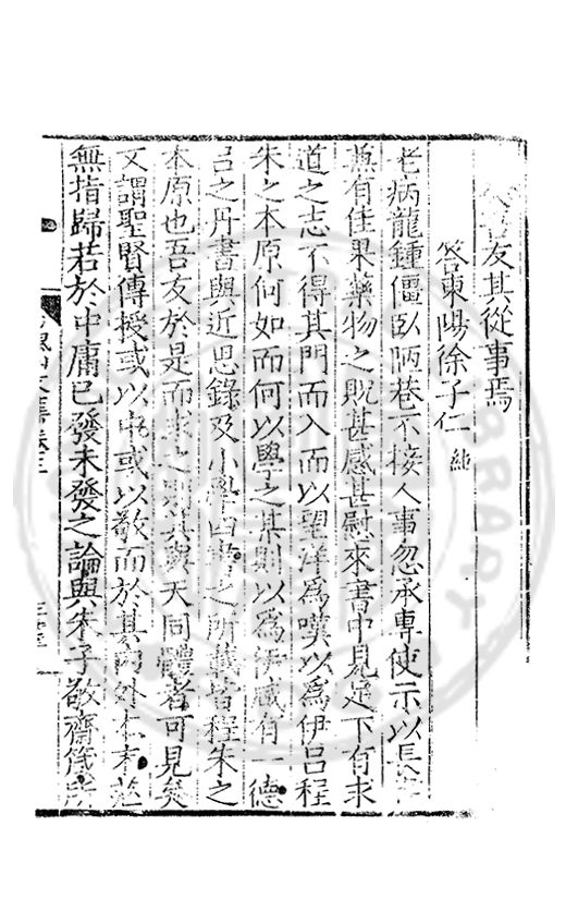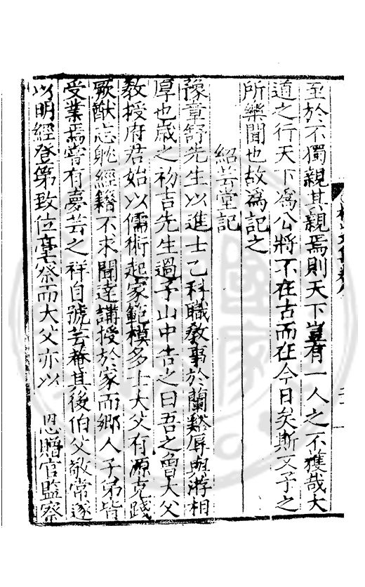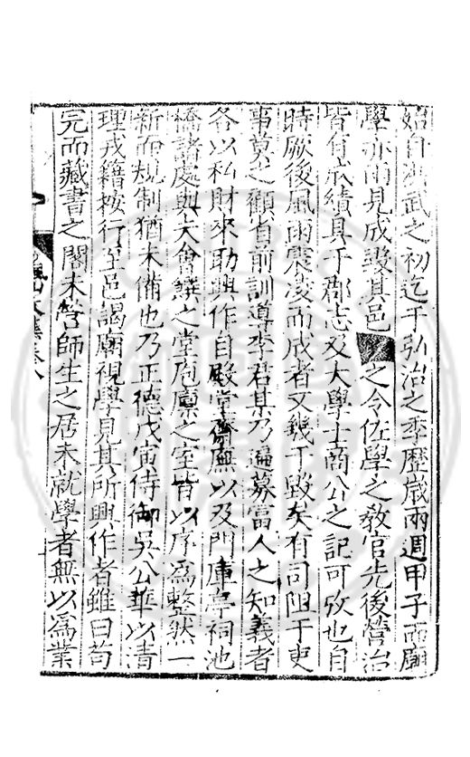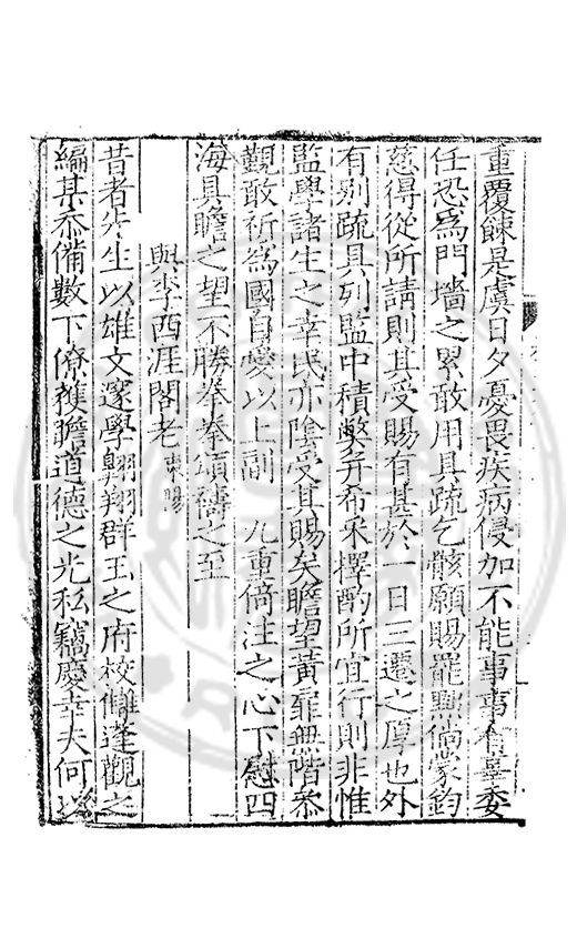 肅容端如盛服襜如身之□而道則内腴文之郁而朴以自居馬帳横経士皆我模楚筵設醴禮不我渝人皆知為當代之文儒籝金匪貴鯉庭是趨有冠峩豸有臺棲烏人又知丹穴之有鳯雛噫是皆得其麤而徒語其膚彼其梁棟榱角在宋則安定之胡明道正誼在漢則江都之舒究先生之所存殆将與若人而齊驅者歟