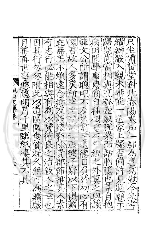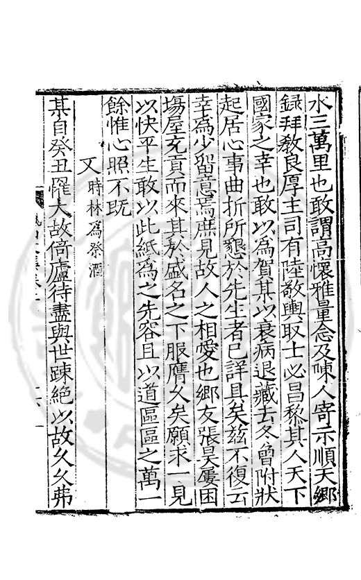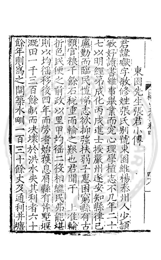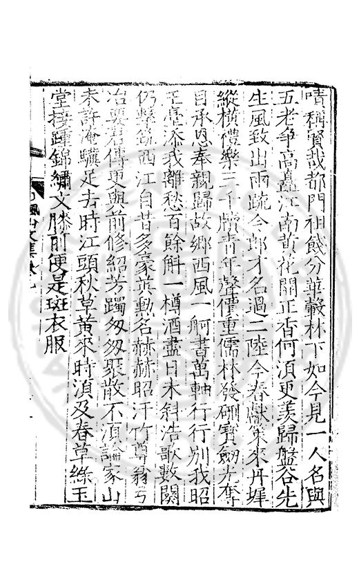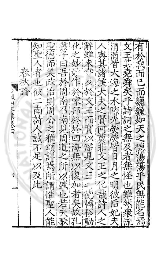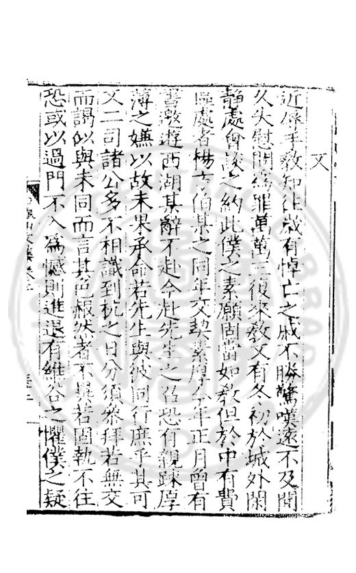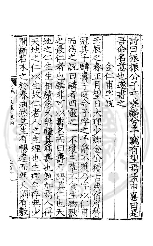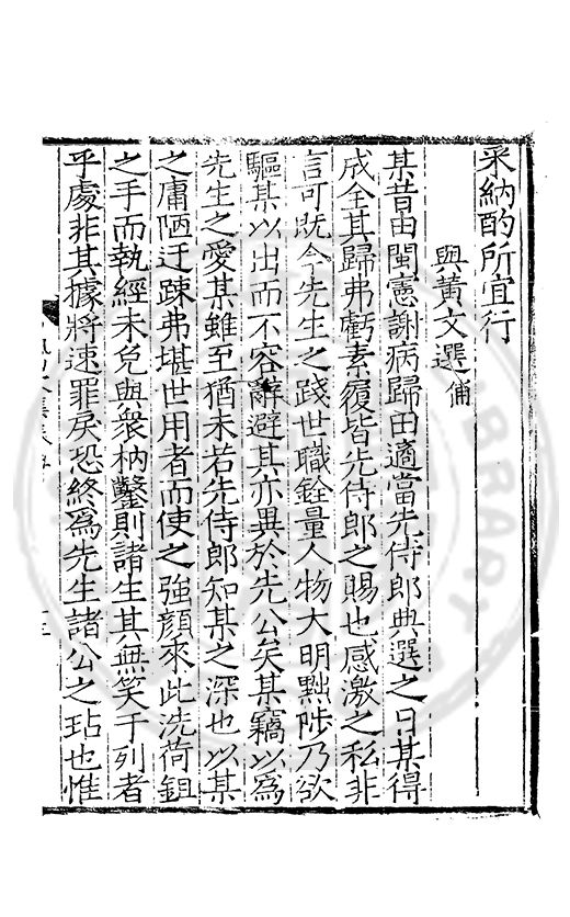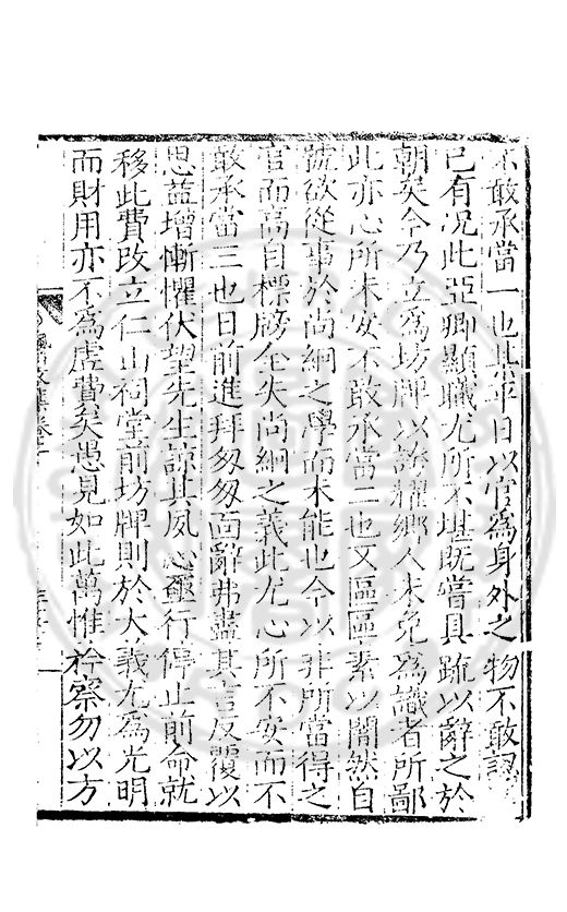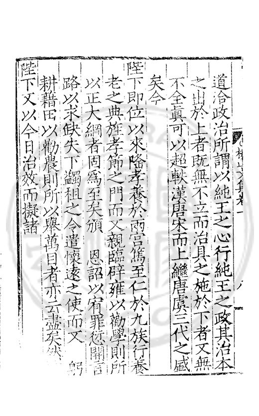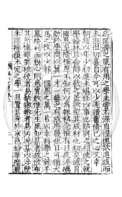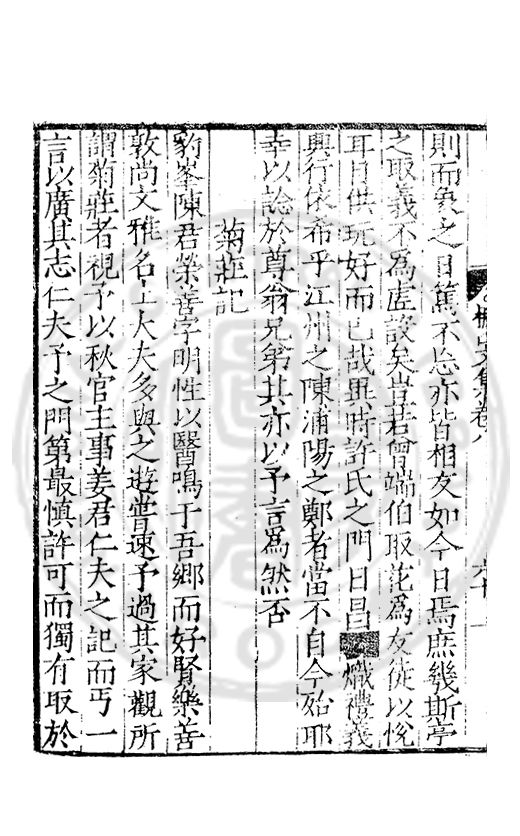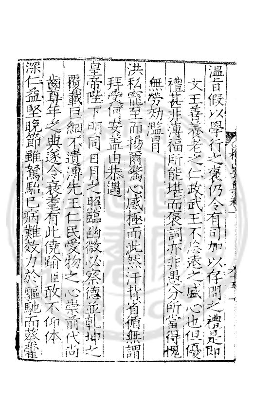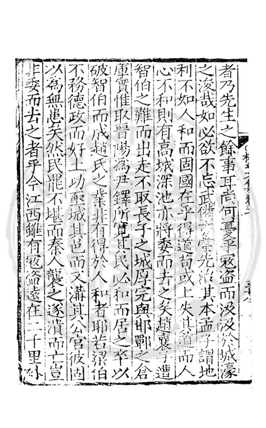 肅容端如盛服襜如身之□而道則内腴文之郁而朴以自居馬帳横経士皆我模楚筵設醴禮不我渝人皆知為當代之文儒籝金匪貴鯉庭是趨有冠峩豸有臺棲烏人又知丹穴之有鳯雛噫是皆得其麤而徒語其膚彼其梁棟榱角在宋則安定之胡明道正誼在漢則江都之舒究先生之所存殆将與若人而齊驅者歟