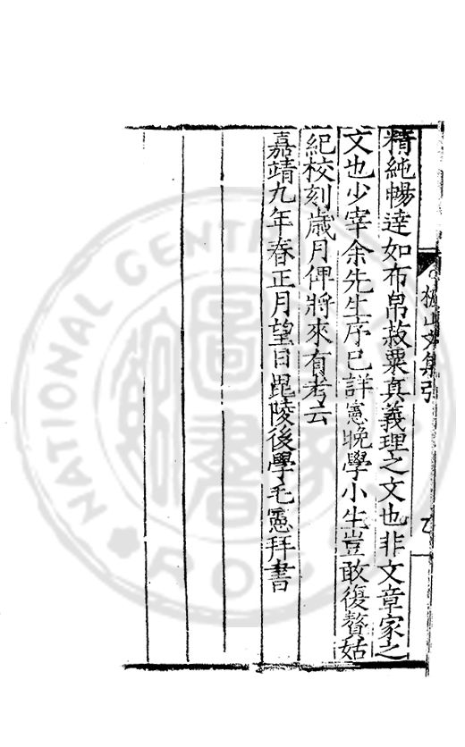 嘉靖九年春正月望日毘陵後學毛憲拜書