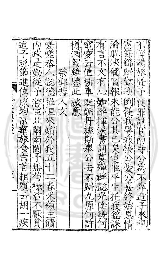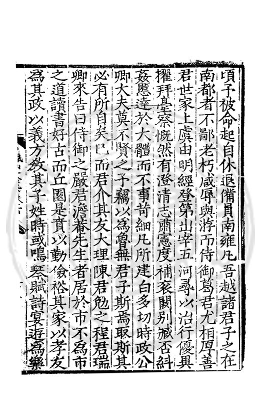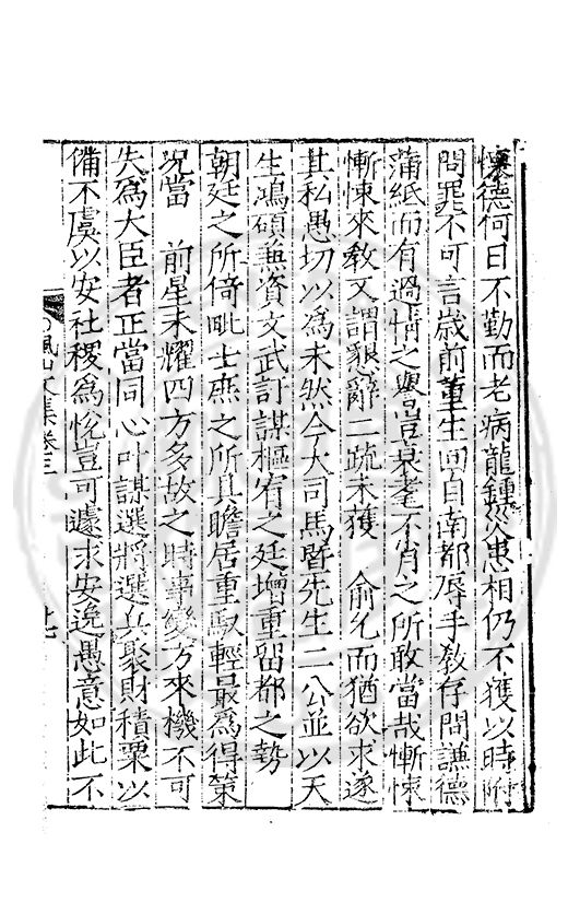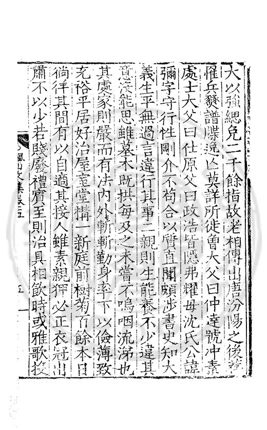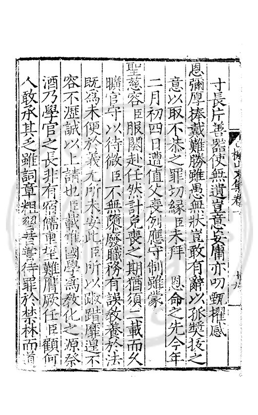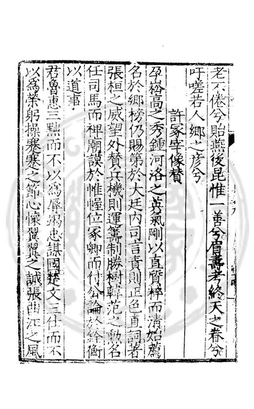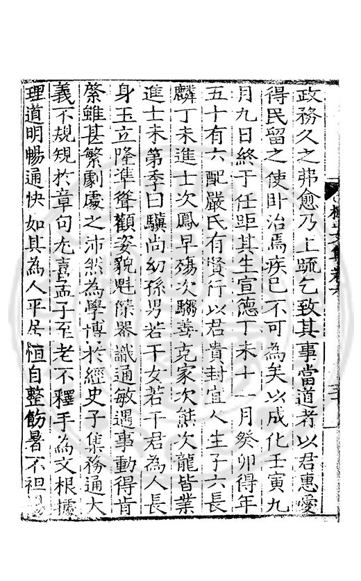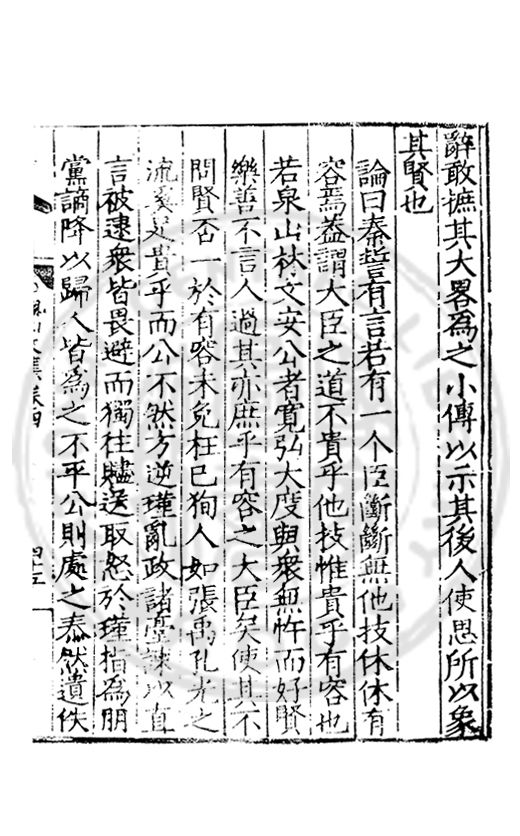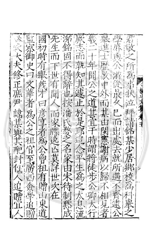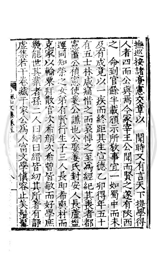 孕崧高之秀鍾河洛之英氣剛以直質粹而淸始薦名於鄉榜仍賜第於大廷内司言責則正色直詞著張桓之威望外賛兵機則運籌制勝樹韓范之勲名任司馬而禆廟謨於帷幄位冡卿而付公論於銓衡以道事君魯惠三黜而不以爲辱竭忠謀國楚文三仕而不以爲榮躬操蹇蹇之節心懷翼翼之誠張曲江之風