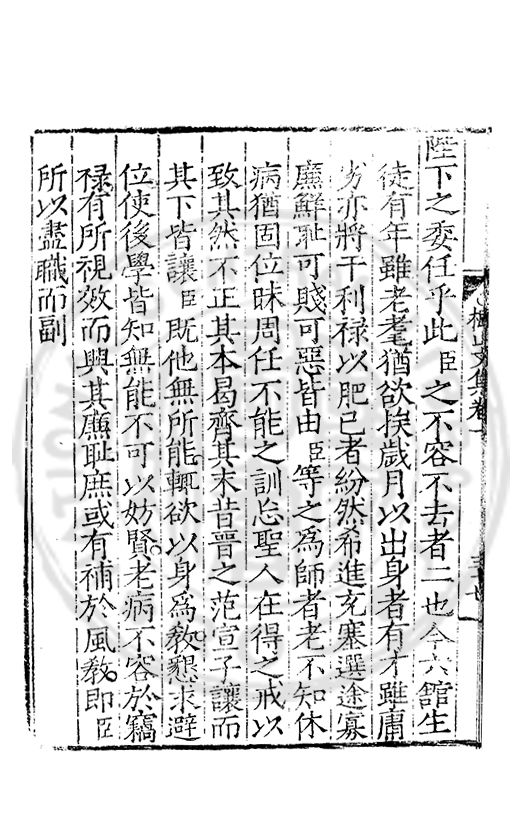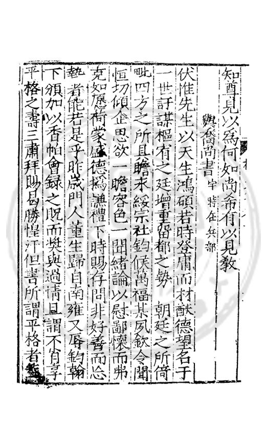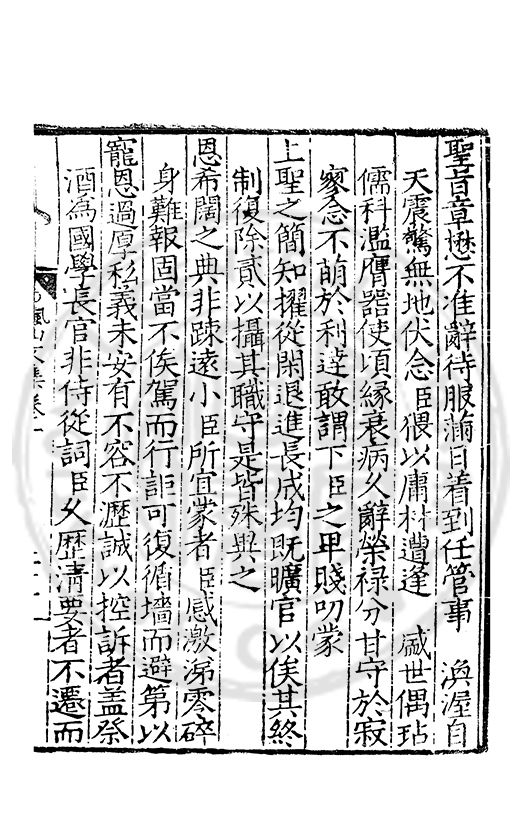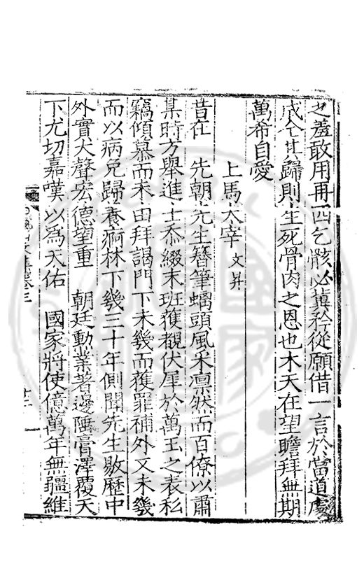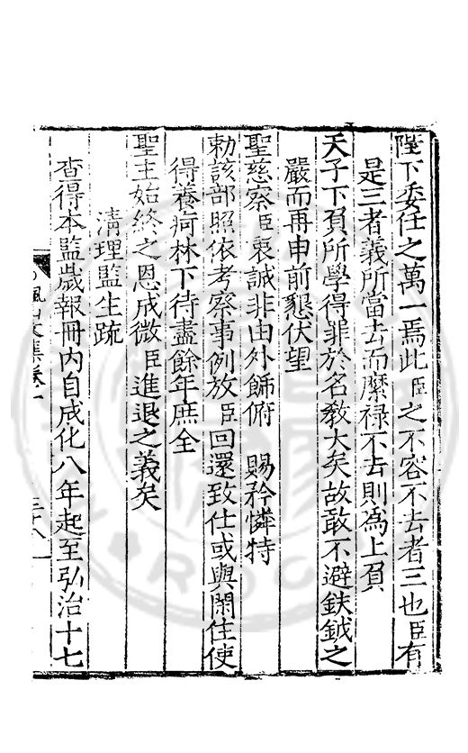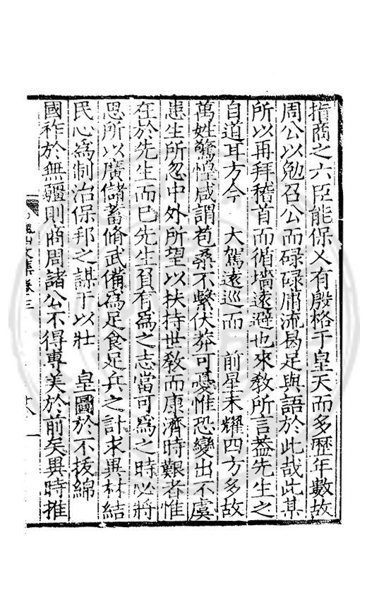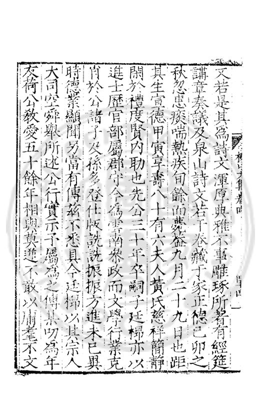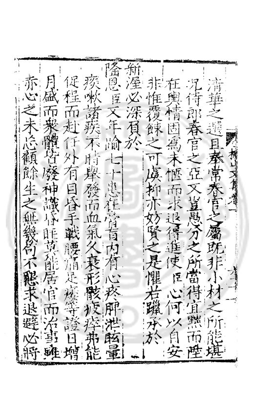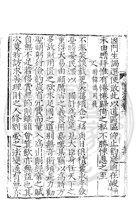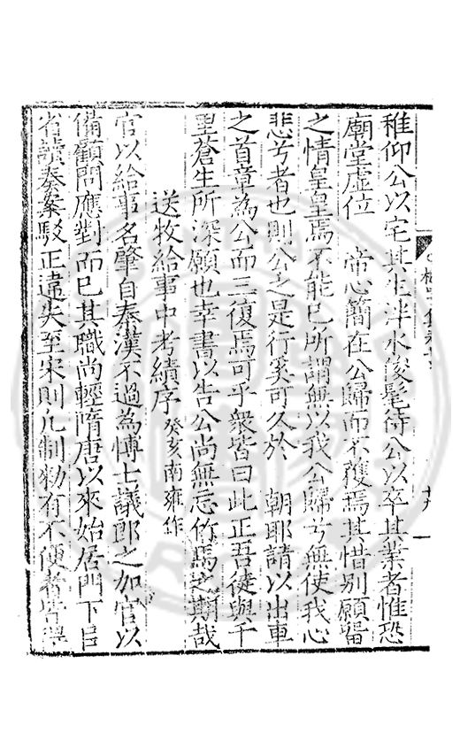 孕崧高之秀鍾河洛之英氣剛以直質粹而淸始薦名於鄉榜仍賜第於大廷内司言責則正色直詞著張桓之威望外賛兵機則運籌制勝樹韓范之勲名任司馬而禆廟謨於帷幄位冡卿而付公論於銓衡以道事君魯惠三黜而不以爲辱竭忠謀國楚文三仕而不以爲榮躬操蹇蹇之節心懷翼翼之誠張曲江之風