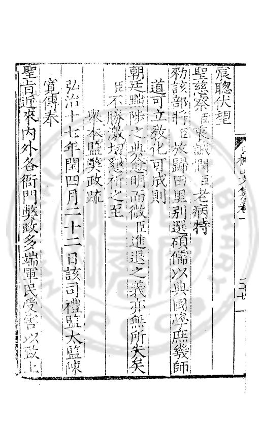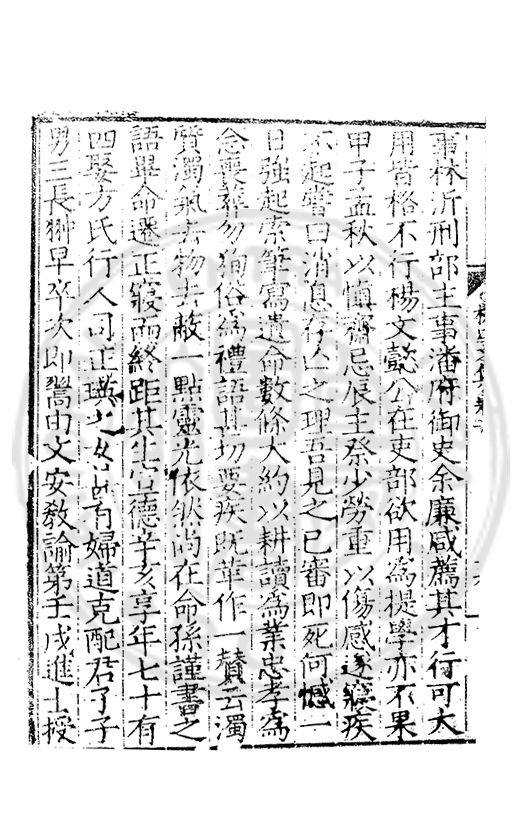 楓山章先生學行之美祜弱冠時已盛聞之後官南都適先生爲國子祭酒間嘗往請益焉覩其儀容聴其言論誠爲有德君子一時名公未能或之先也弟禕方在太學門下每稱先生履繩蹈矩躬率諸生祁寒暑雨必具冠服終日端坐以待六舘質疑問難者經史儒先之語舉輒成誦一字弗遺聞者罔不欽服而率敎焉夷考先生筮仕之初即以直諫謫官後乃持憲閩中風節政事逈出人表年方強仕即甘退藏脩德緝學日益加宻盖在林下幾三十年再起為國