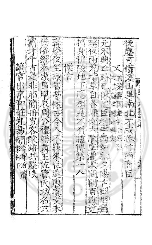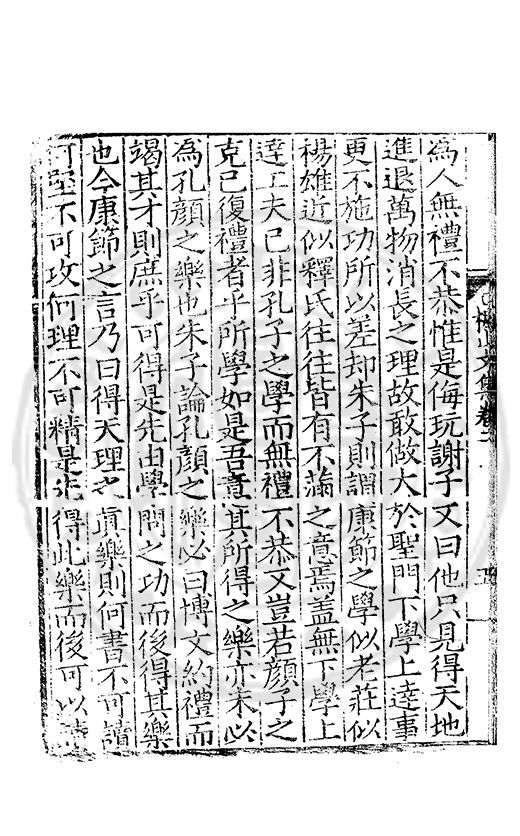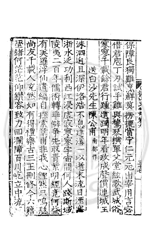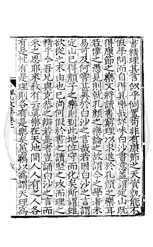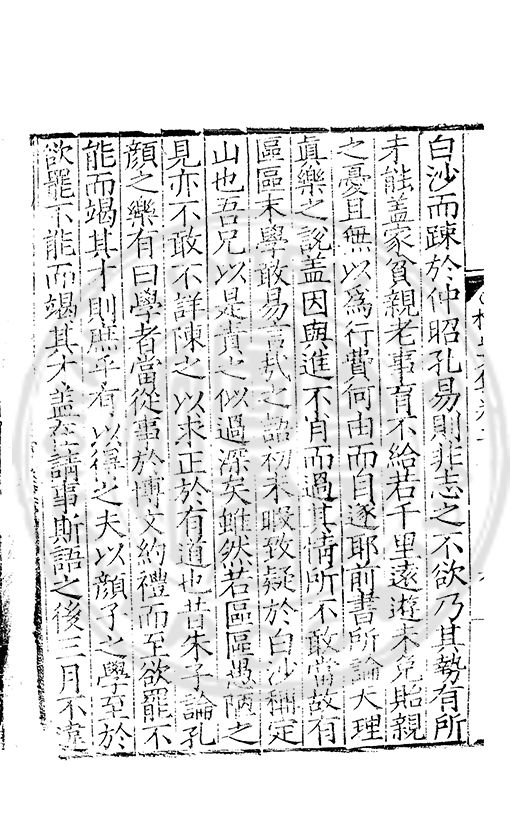 洙泗逈且深伊洛浩不息建溪一以逝末流日湮□浙水泛功利西江浸虗寂寥寥宇宙間何人踐斯域陵夷二百年儒術轉乖僻争先取青紫明經竟何益有美羅浮仙遺編自探索章甫非我心鏗然只鳴瑟尚友千載人充然如有得禮樂古三王刪修今六籍墜緒何茫茫仰鑚容致力回瀾障百川屹立中流□