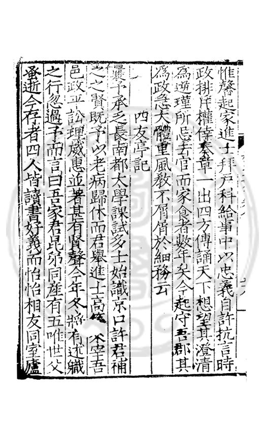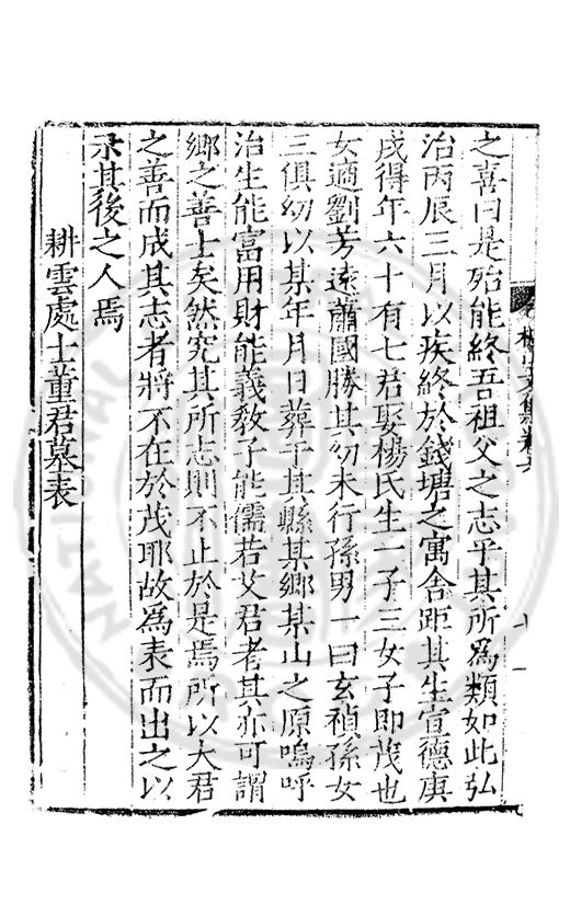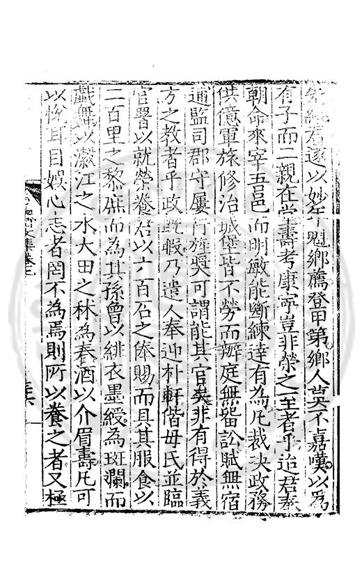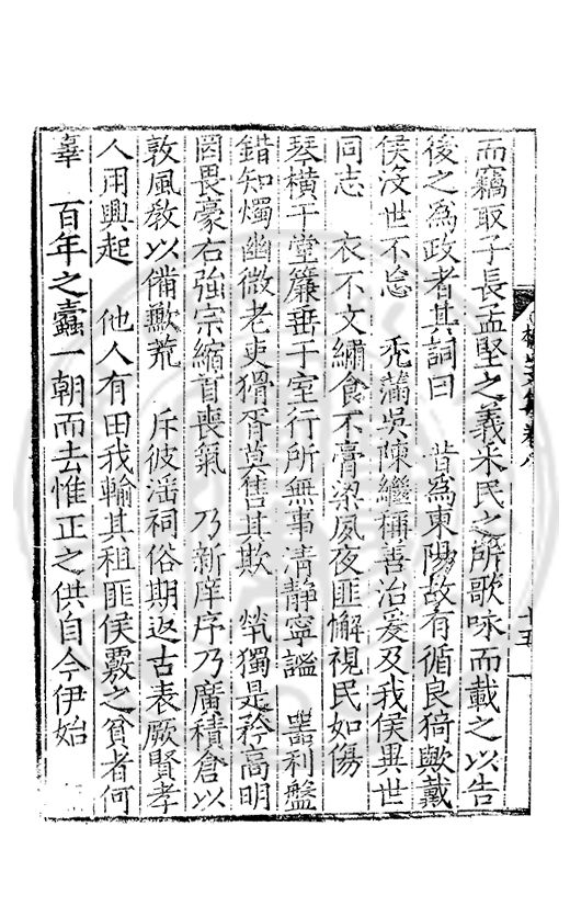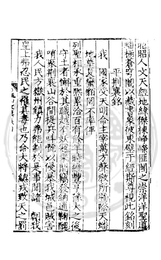 蚤以才猷奮身從事初筮枳棲遂躋錦製斬披草棘創新官署轉危而安易亂而治遺愛在民烝甞弗替