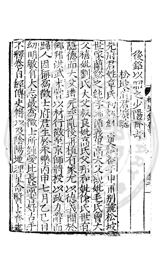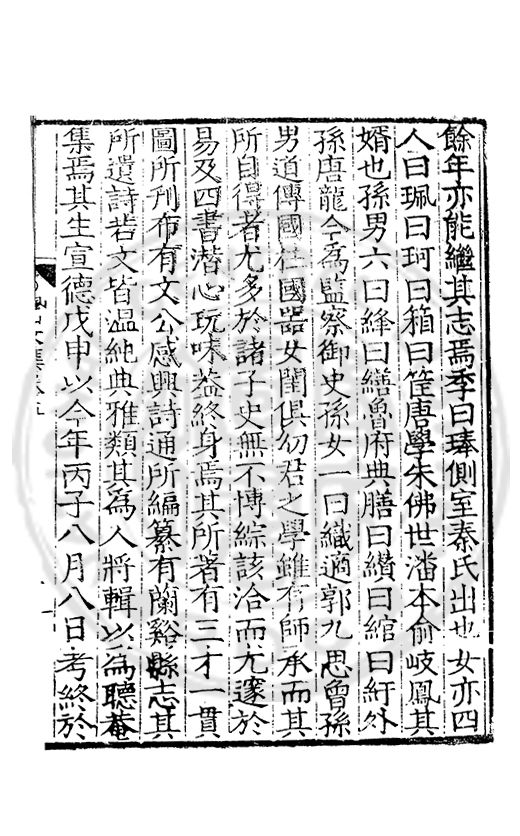 有婉其容有肅其儀醉經飽史尤邃於詩志充所養將大厥施采芹泮水擢桂鄉闈和鑾始鳴忽繫金柅玉成器而遽毀苖就實而忽萎起良朋之永嘆貽後嗣之遐悲